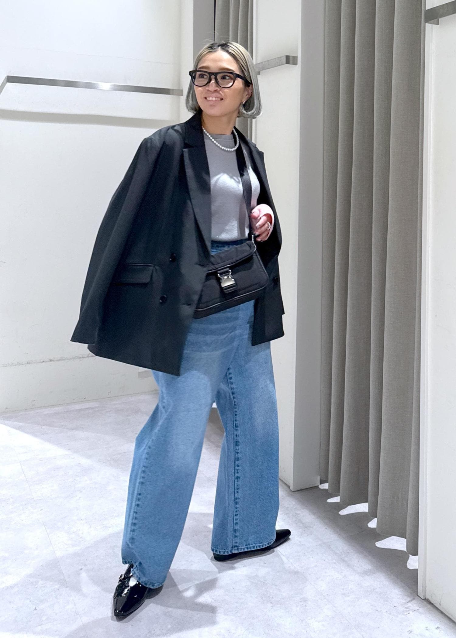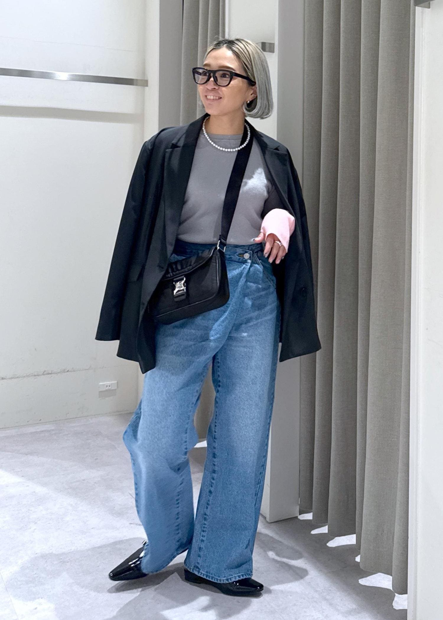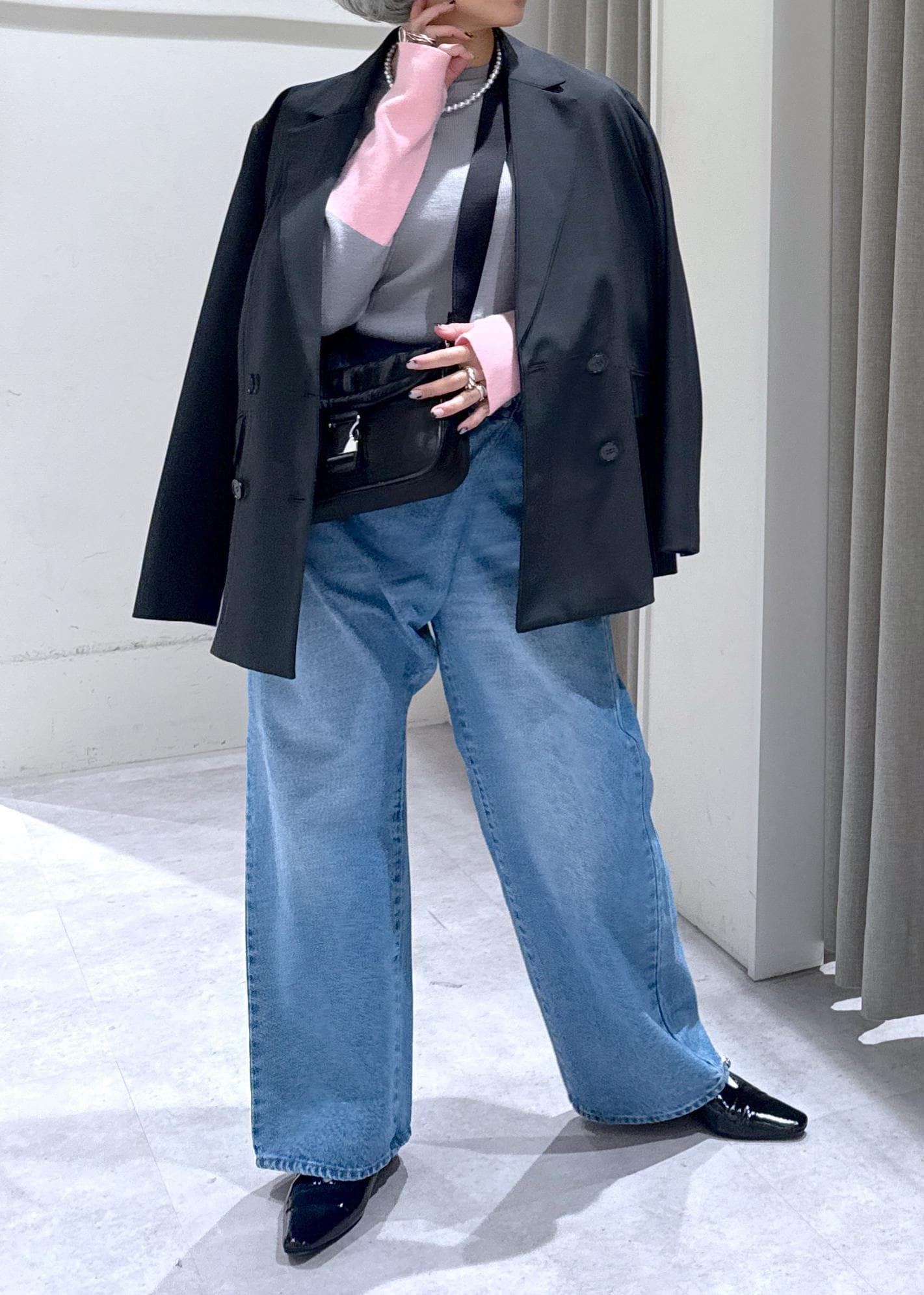 袖のピンクが羽織ってもアクセントになって、ラメで顔映えもいいのでいい感じにマッチしています♪
