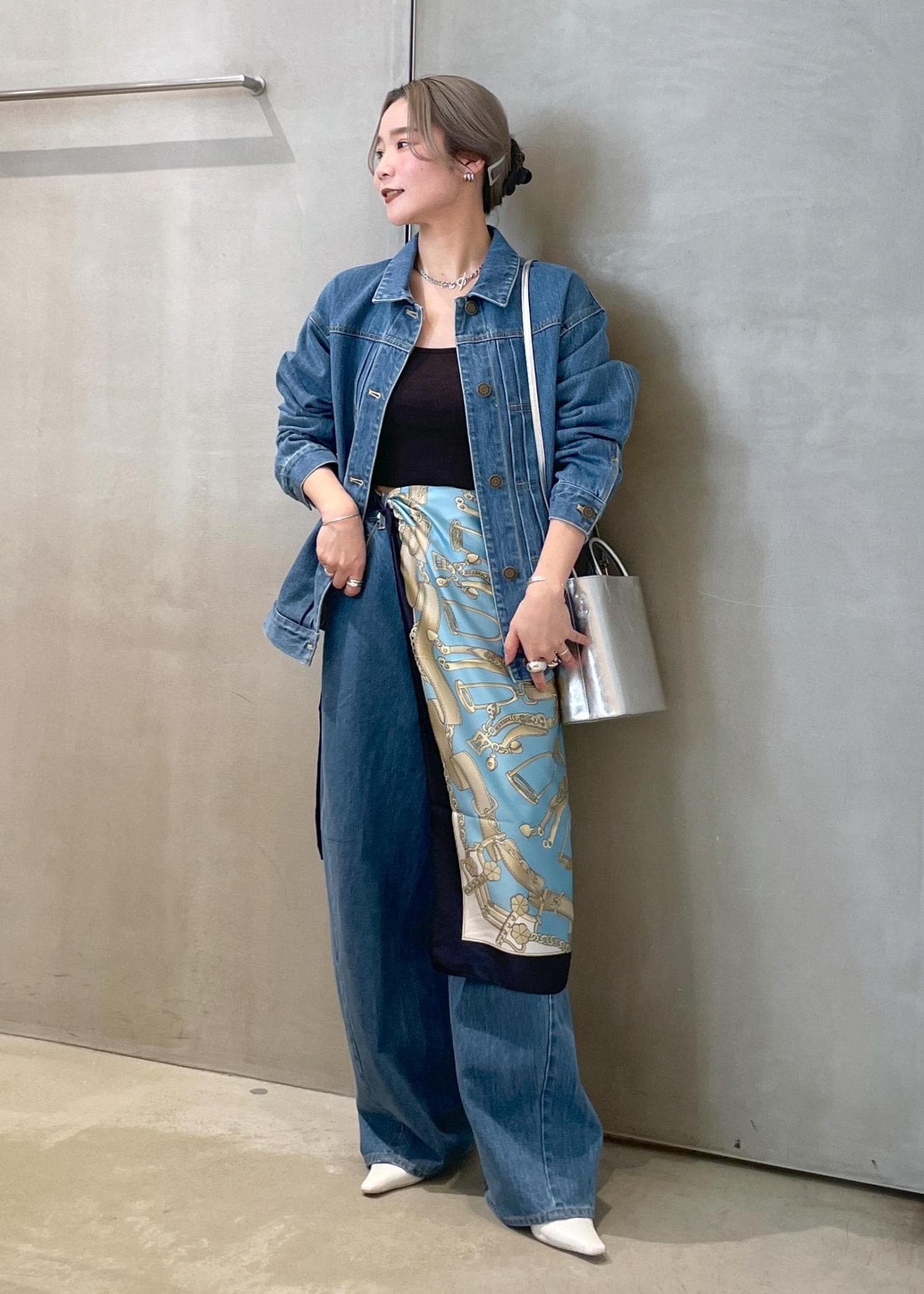 デニムととっても相性がよい色合いなので、MTORのビジューデニムにレイヤードしてみました。