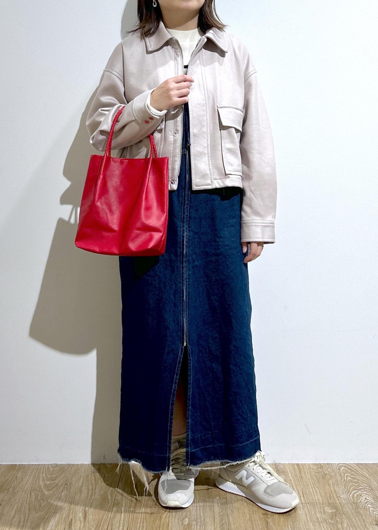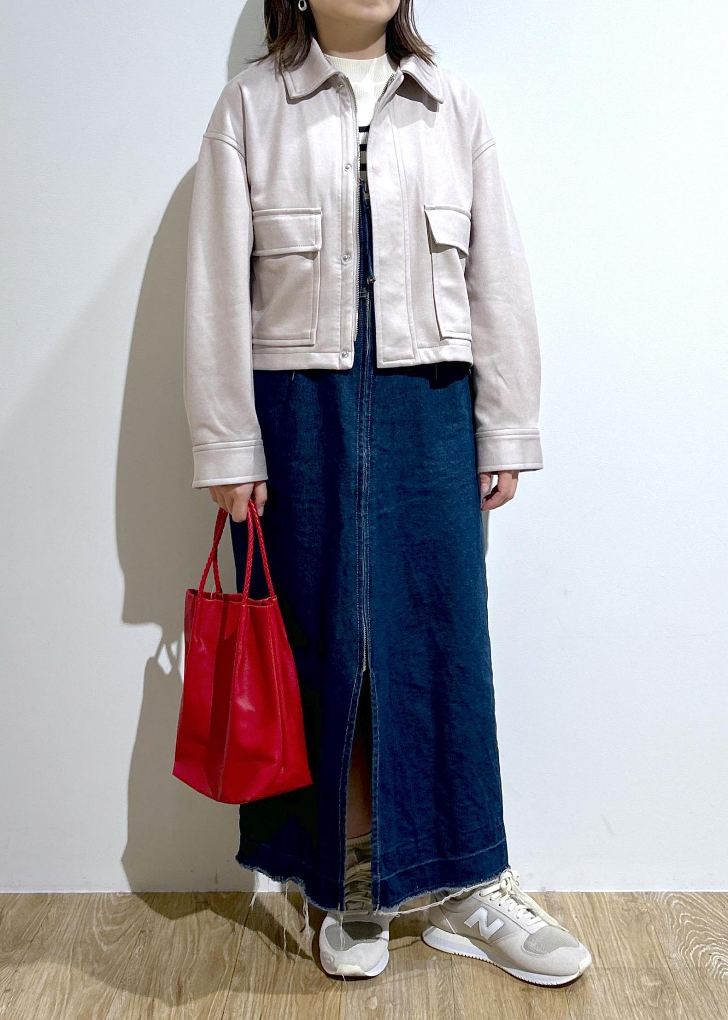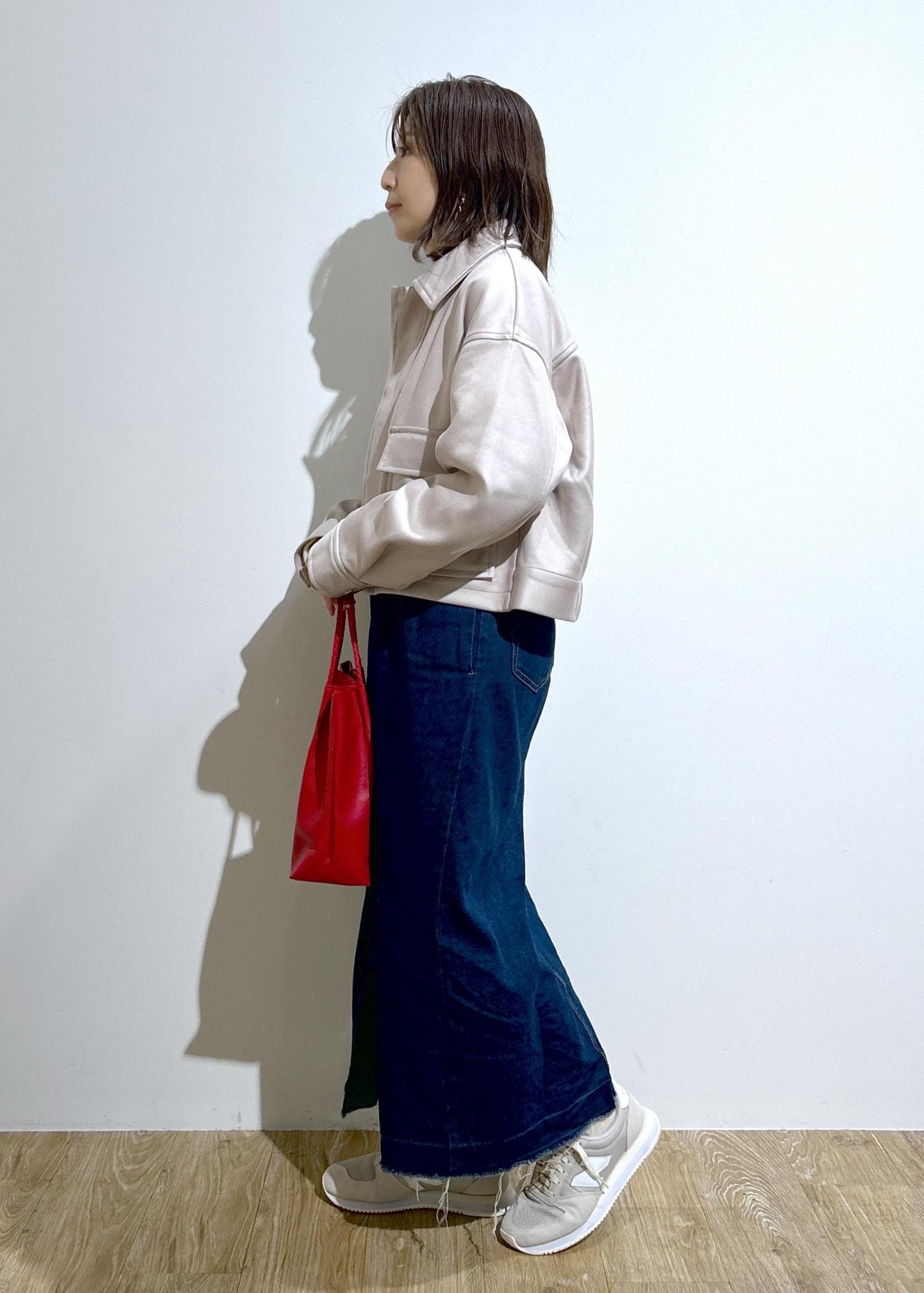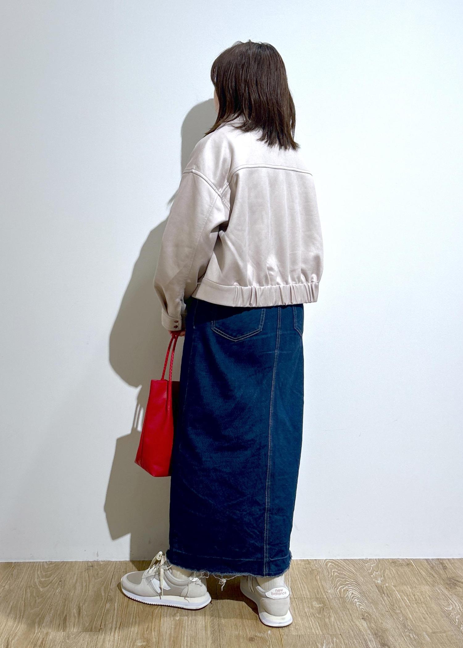 フロントファスナーがおしゃれで、スリットが深くチラッと見える足元が大人っぽいデザイン♩