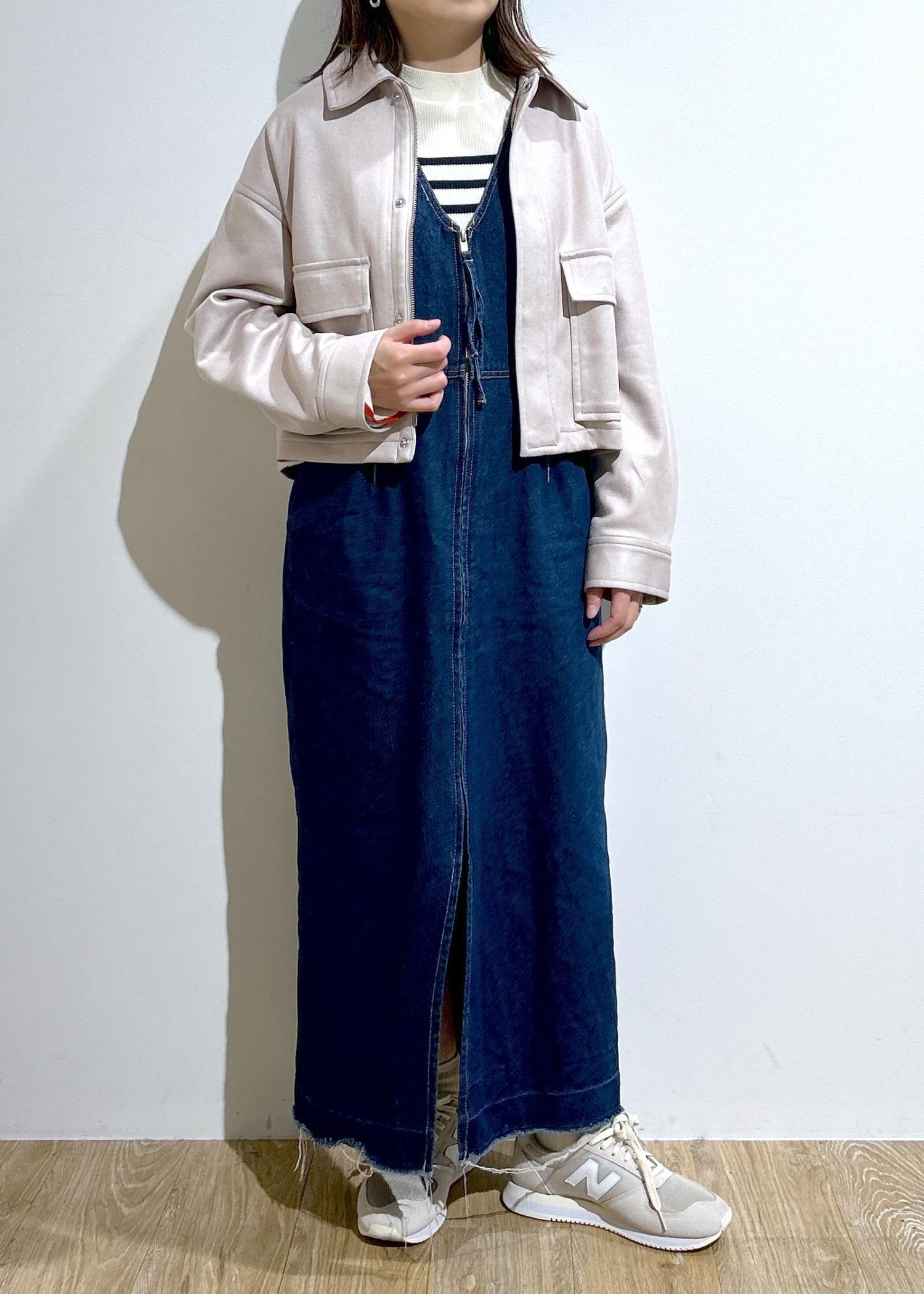 シーズンレスで着用できるデニムジャンスカワンピース。