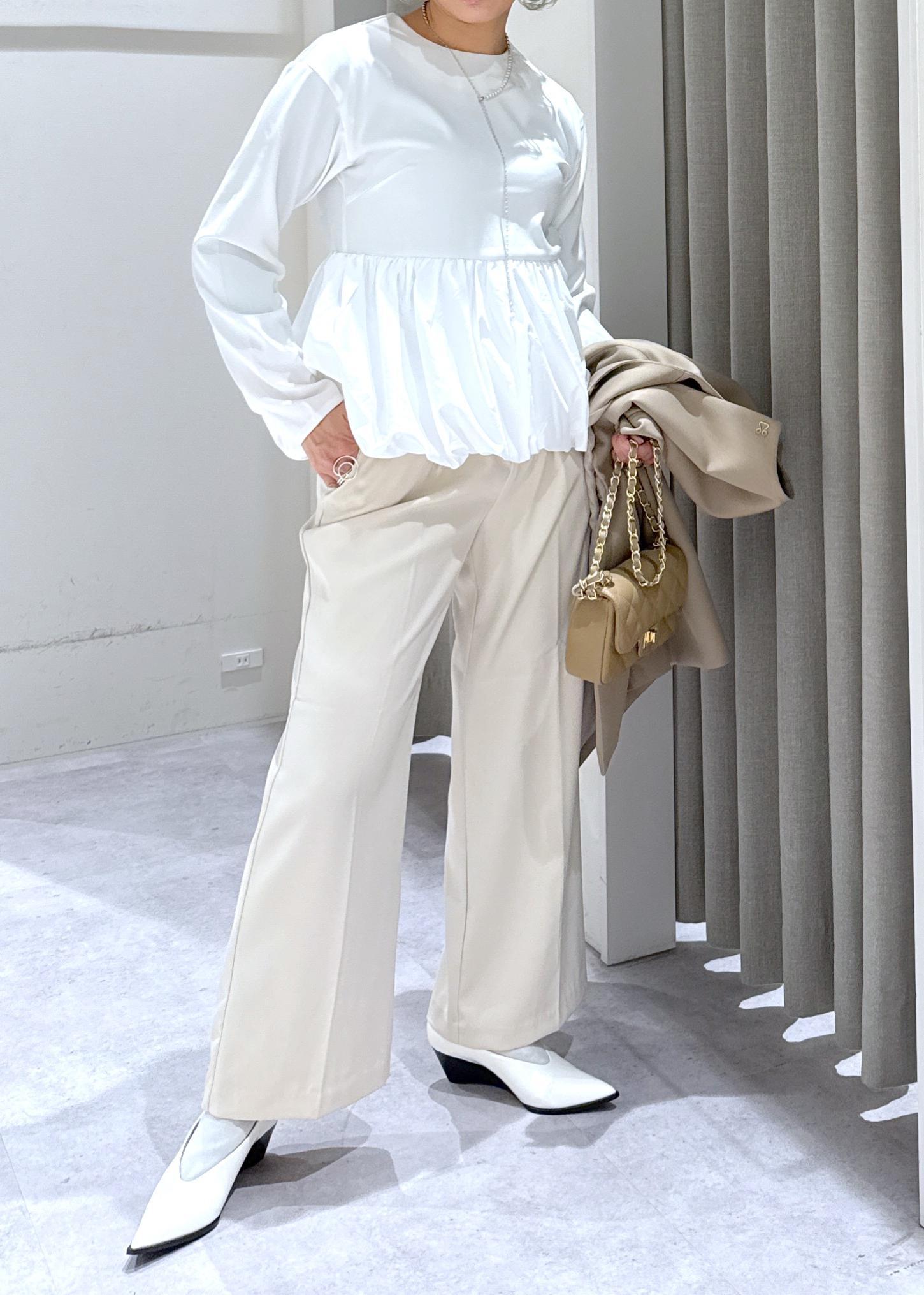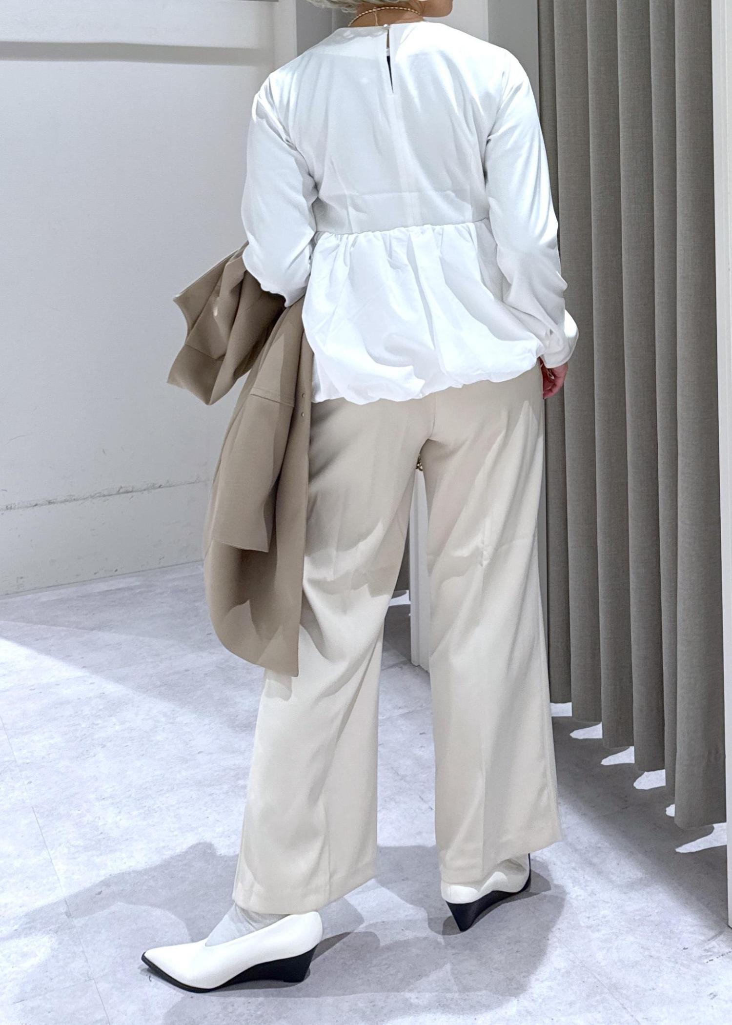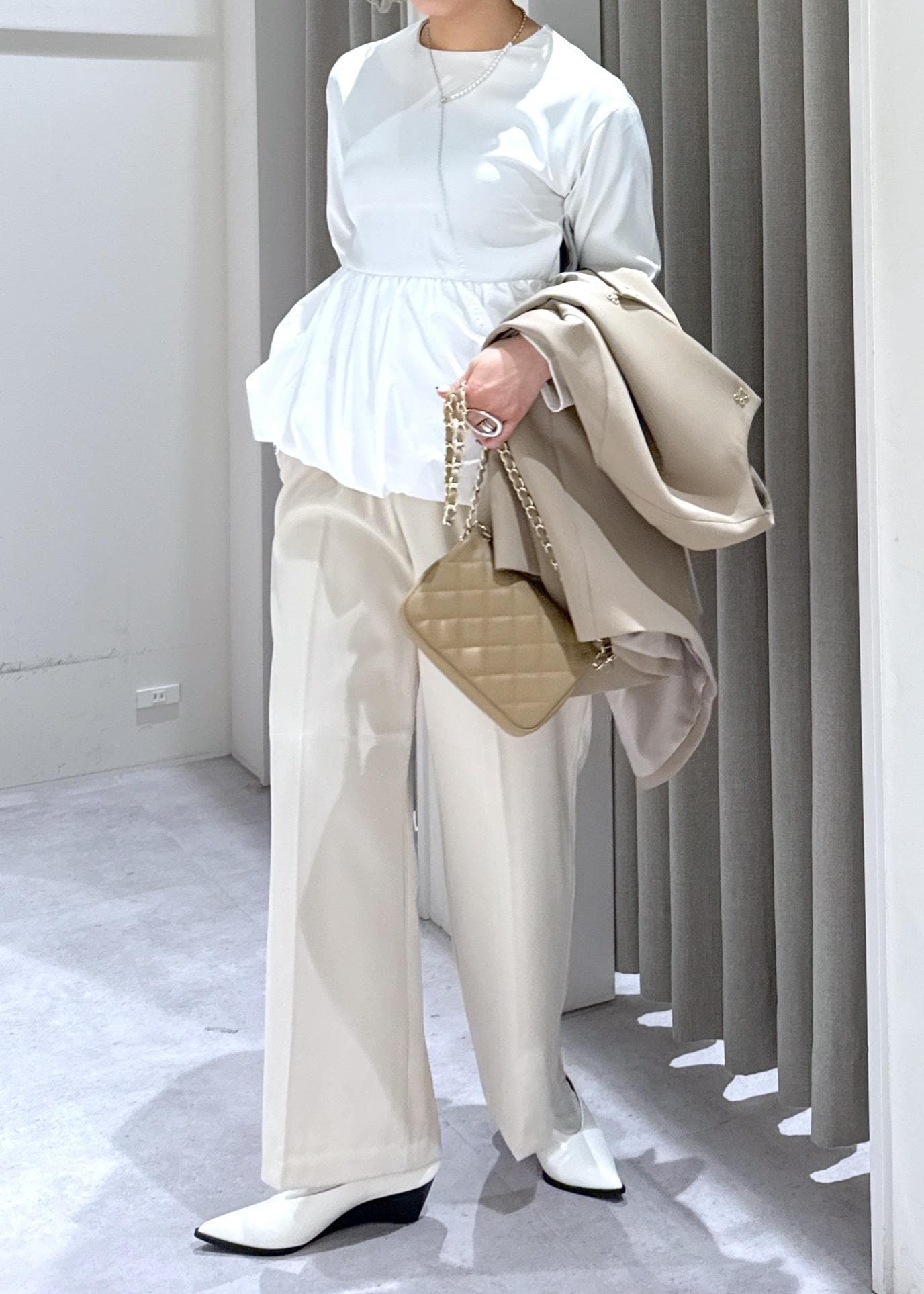 セットアップ対応しており、ペプラムのトップスとあわせるとセレモニーや、お仕事用にも対応できます!