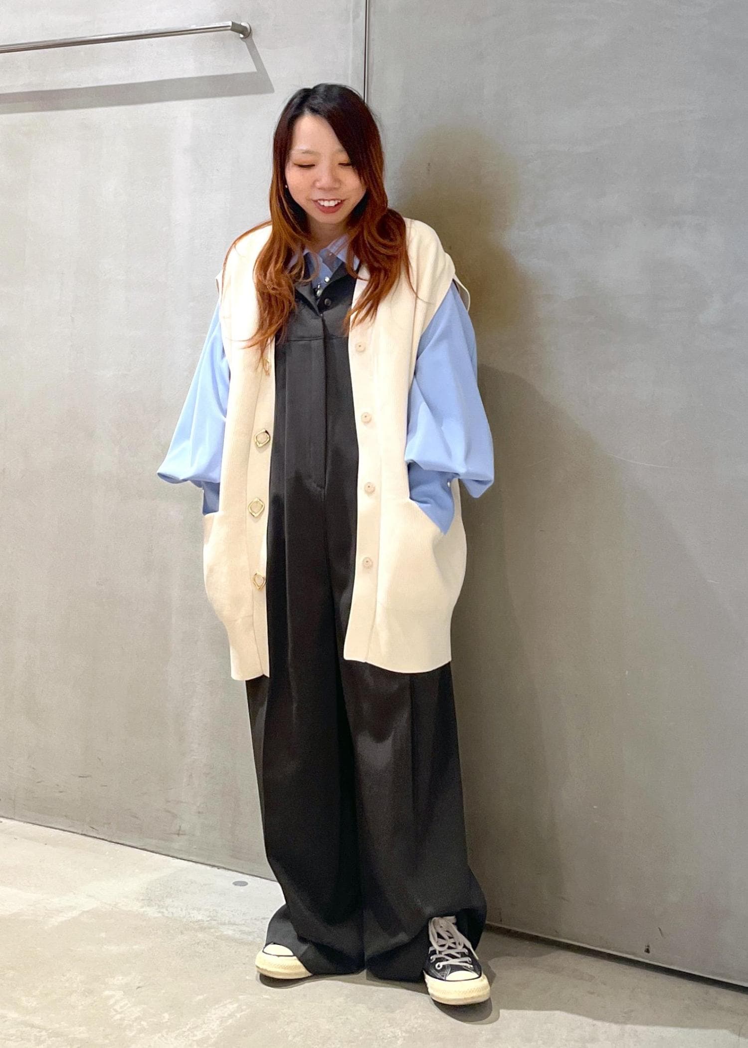 今回はシンプルなセットアップのスカートと合わせて、キレイ目なスタイリングにしました。
