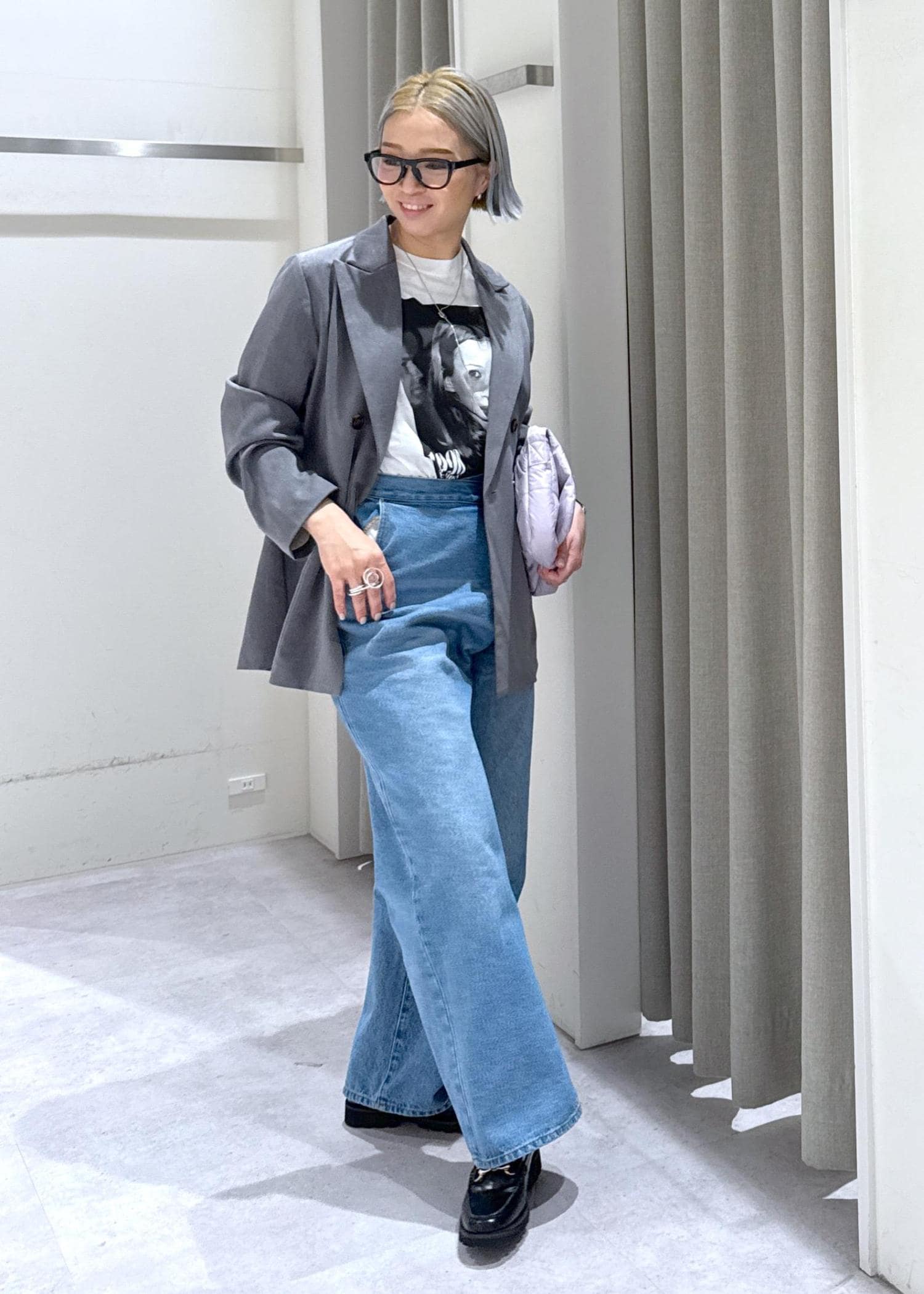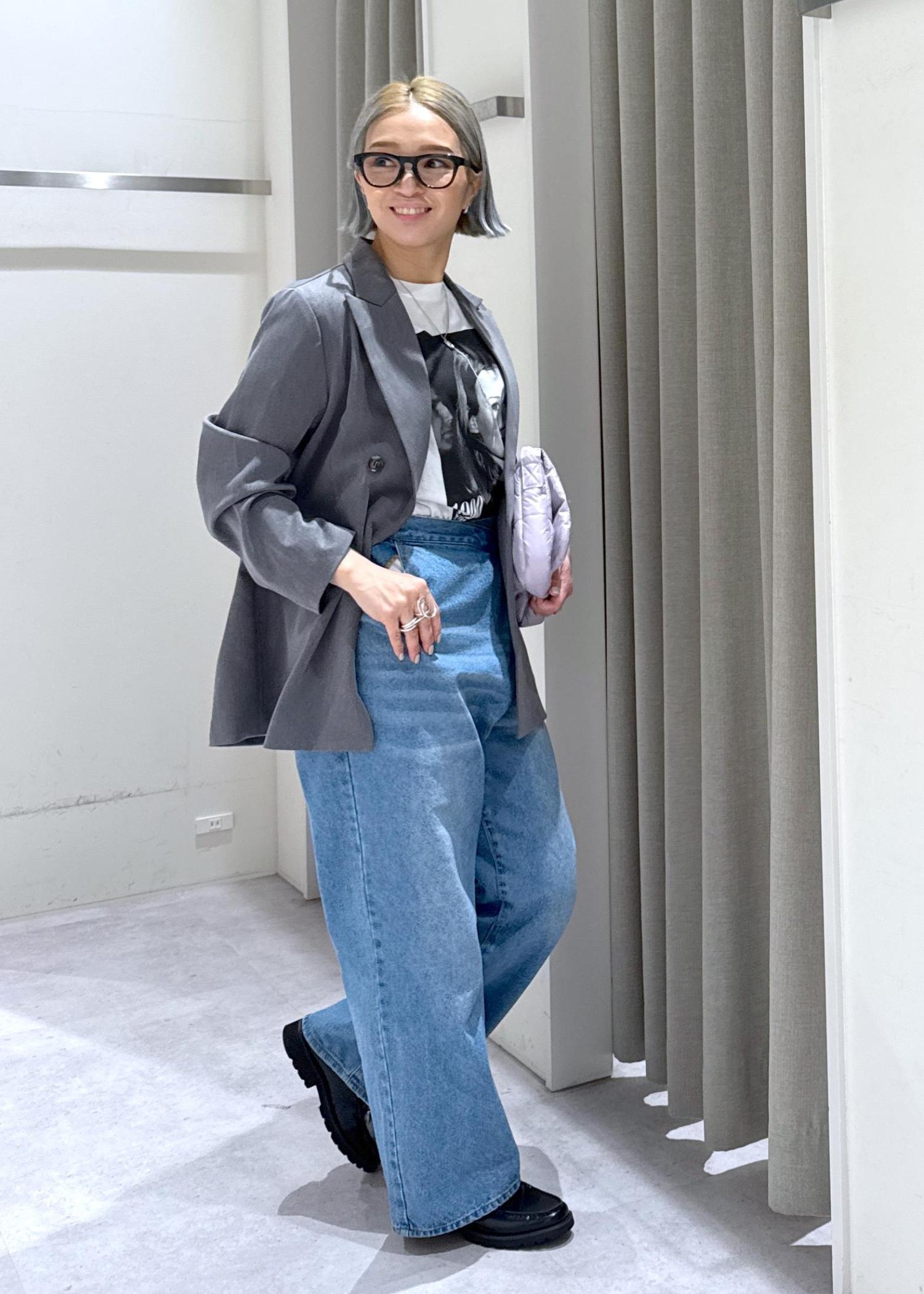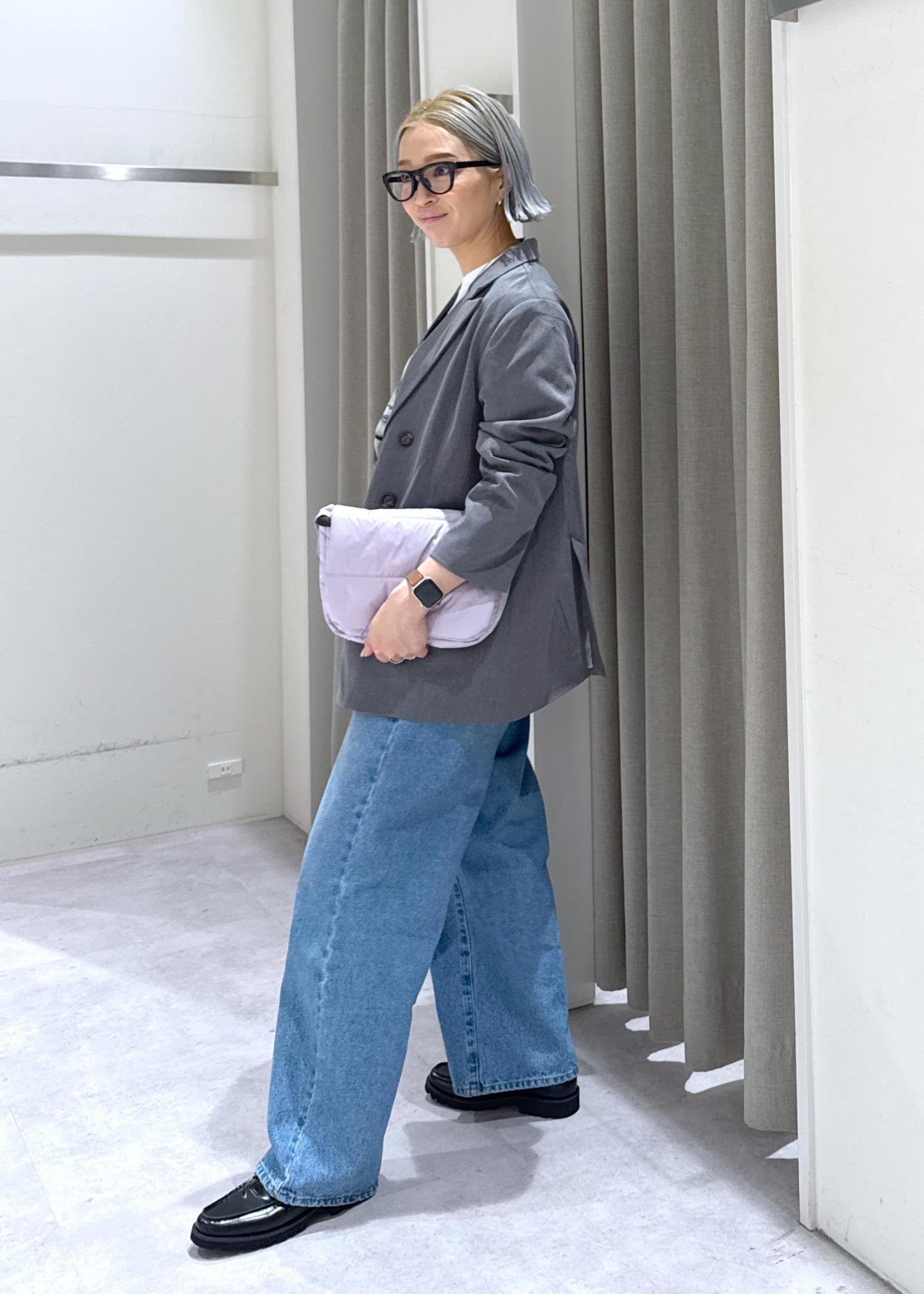 シャツで王道に合わせても、スウェットも着られる緩いサイズ感なので、いろんなインナーを楽しみたいと思います♪