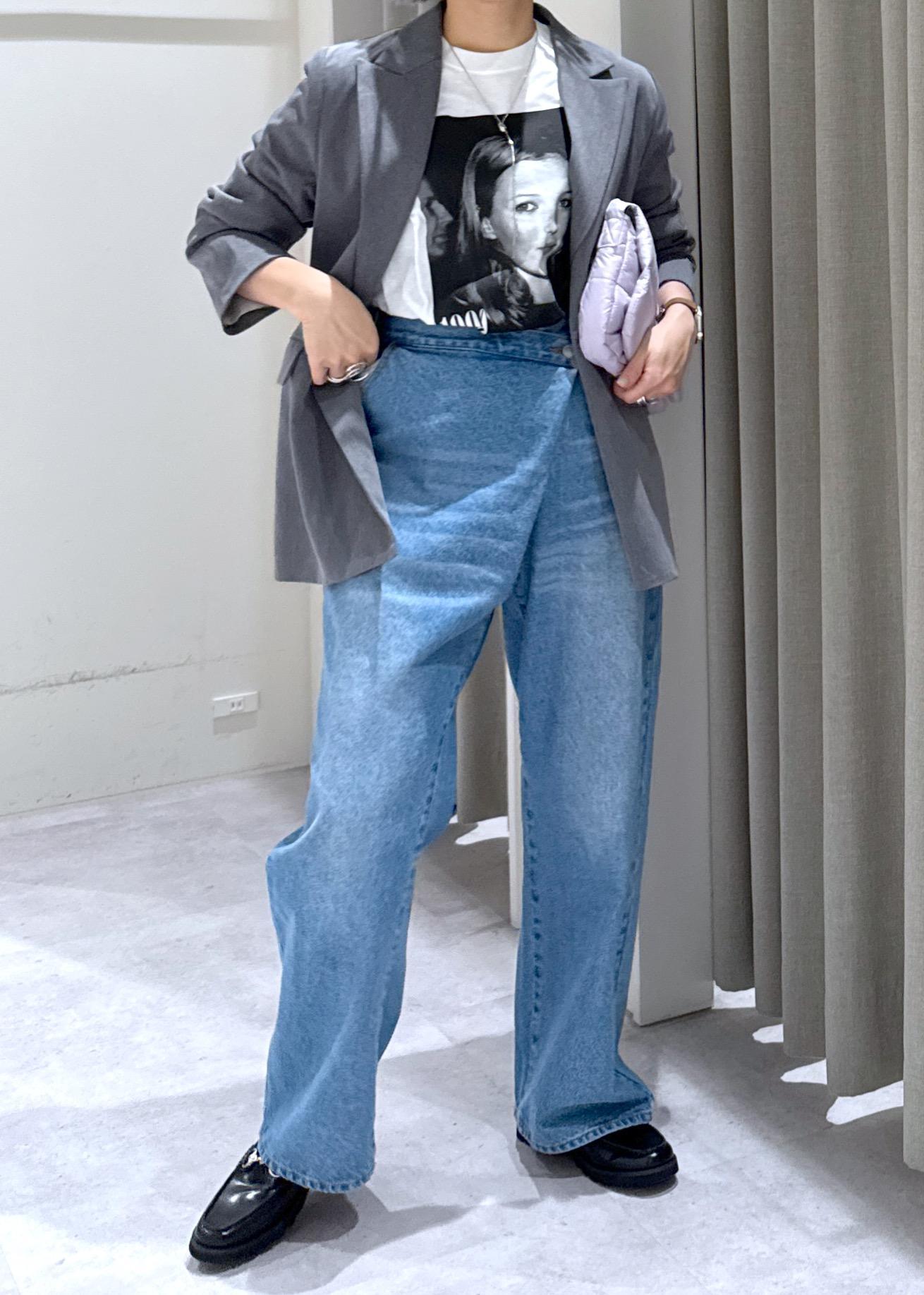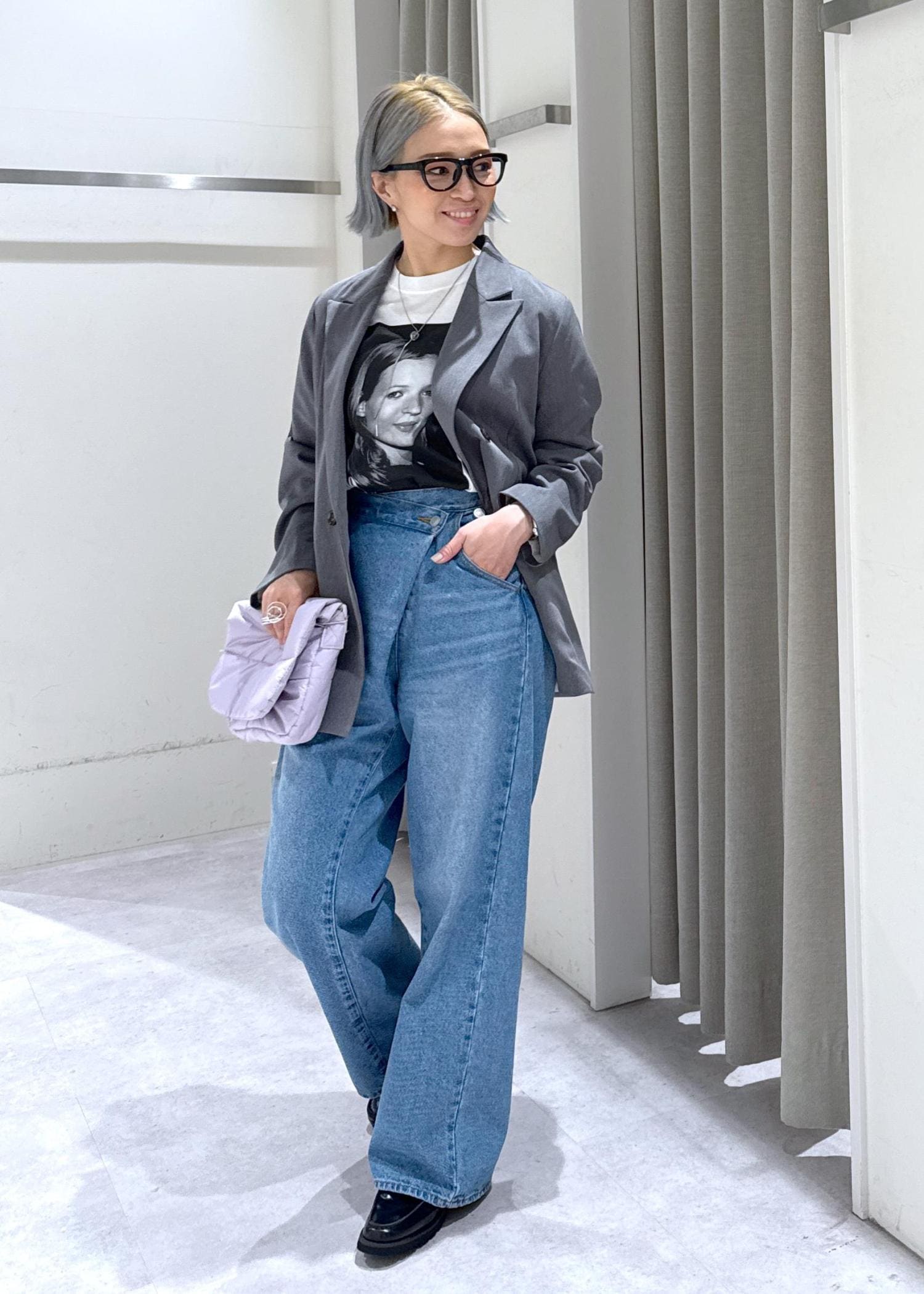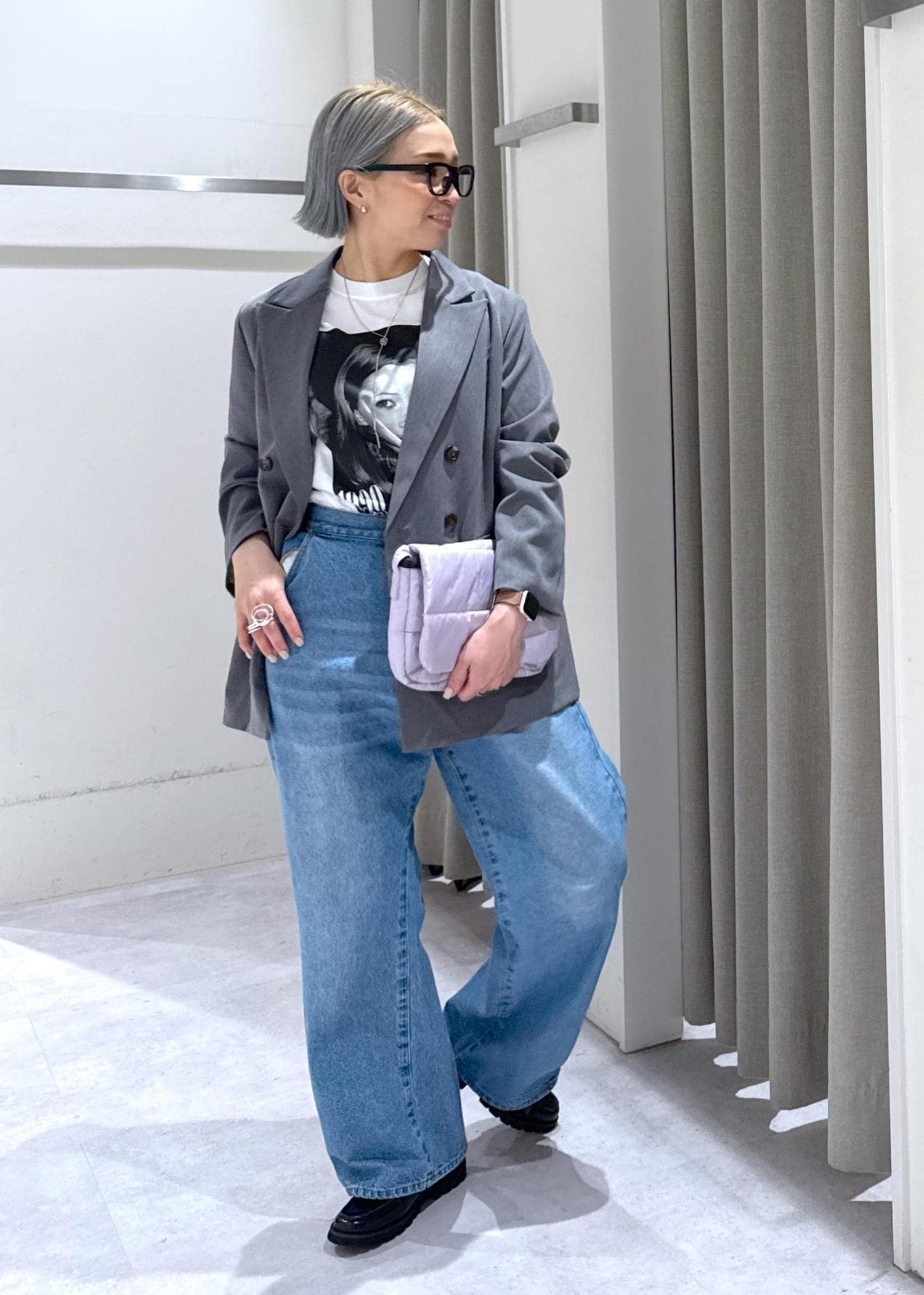 シャツで王道に合わせても、スウェットも着られる緩いサイズ感なので、いろんなインナーを楽しみたいと思います♪