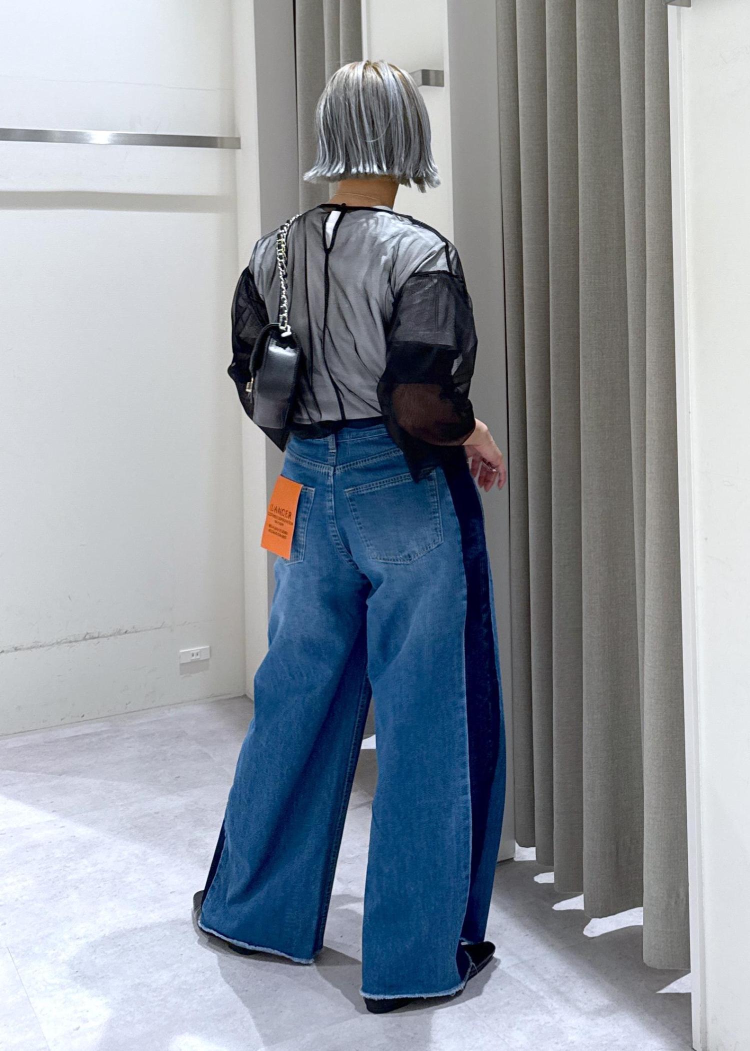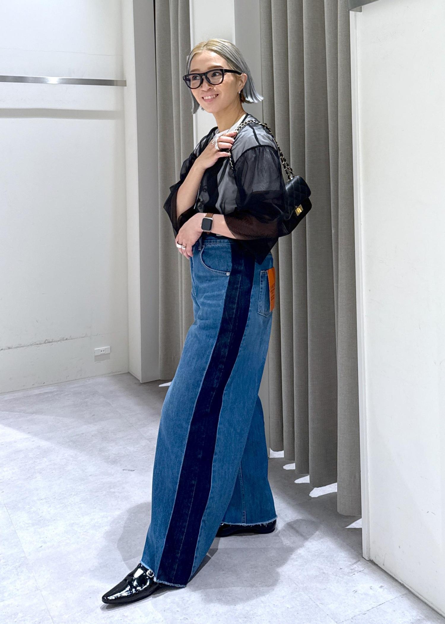 肘あたりまで捲り上げて、スリーブにボリュームを出しています。
