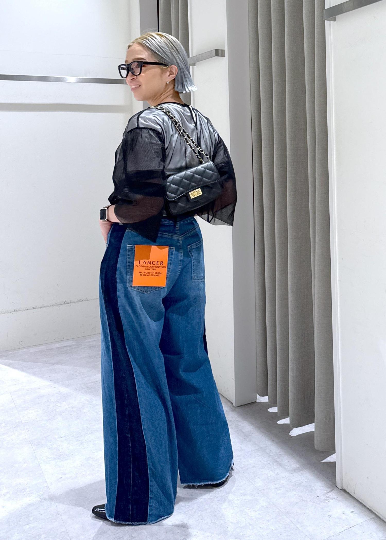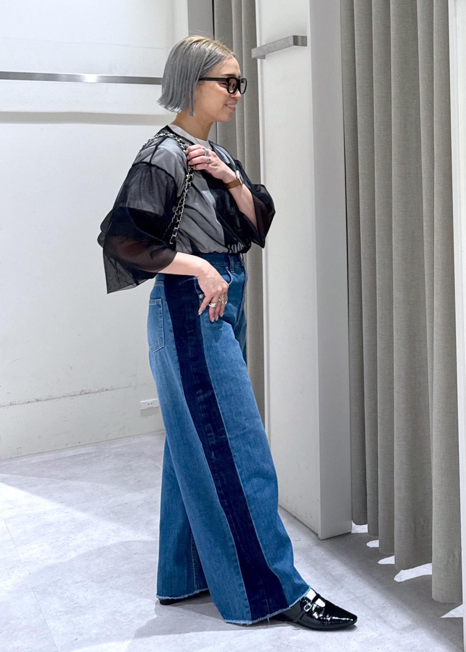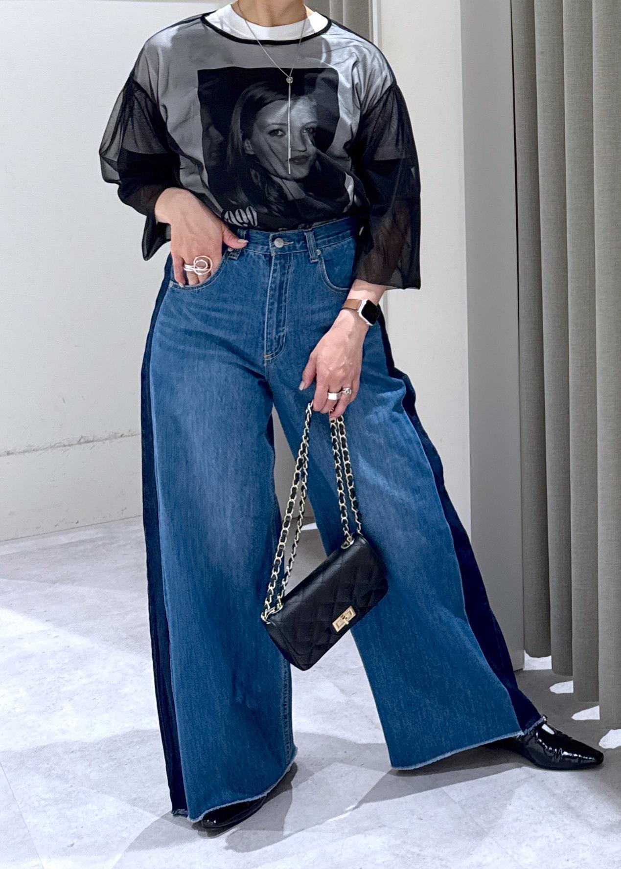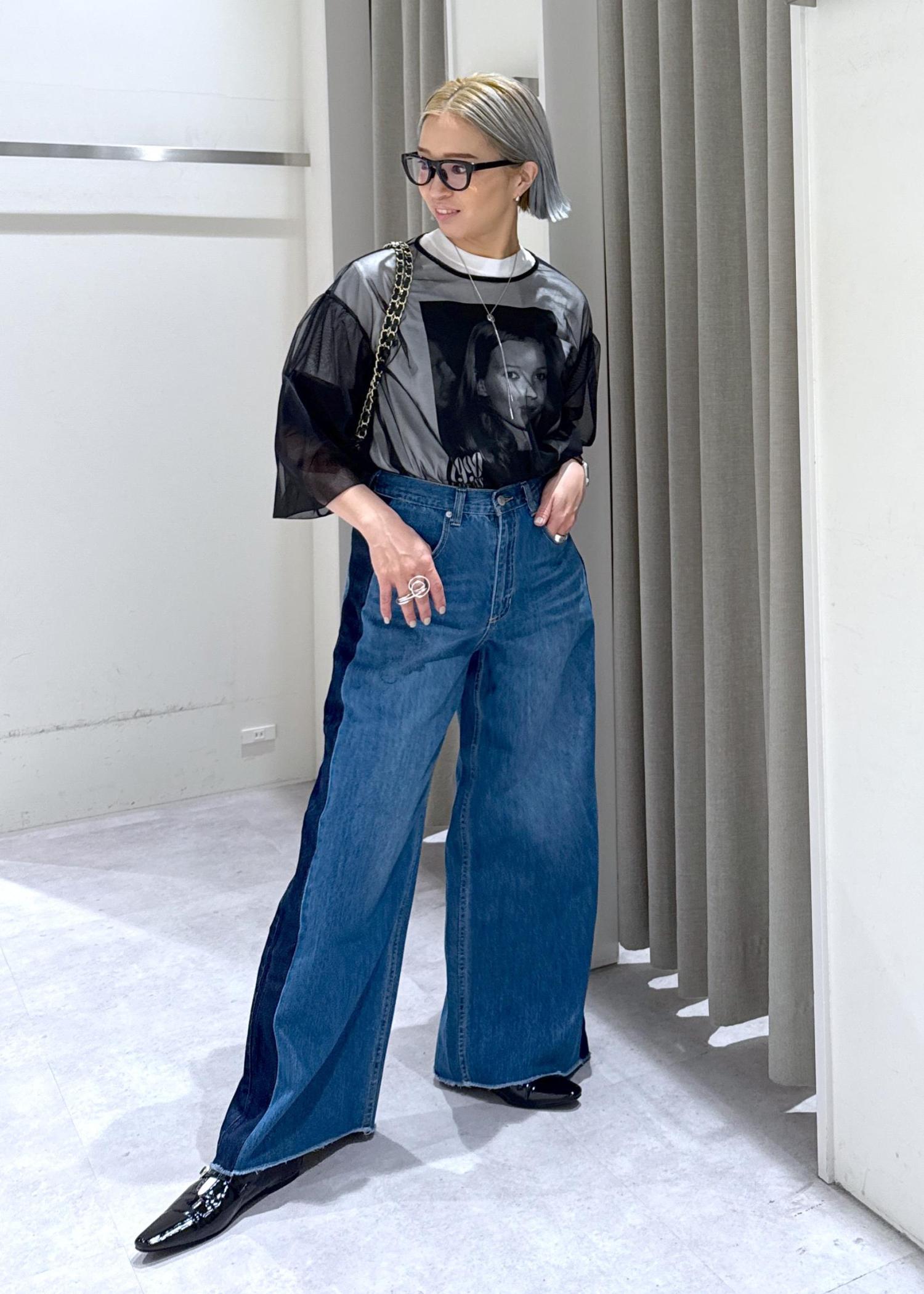 シアーの透け感を活かして、インパクトのあるグラフィックTシャツを重ね着してみました。