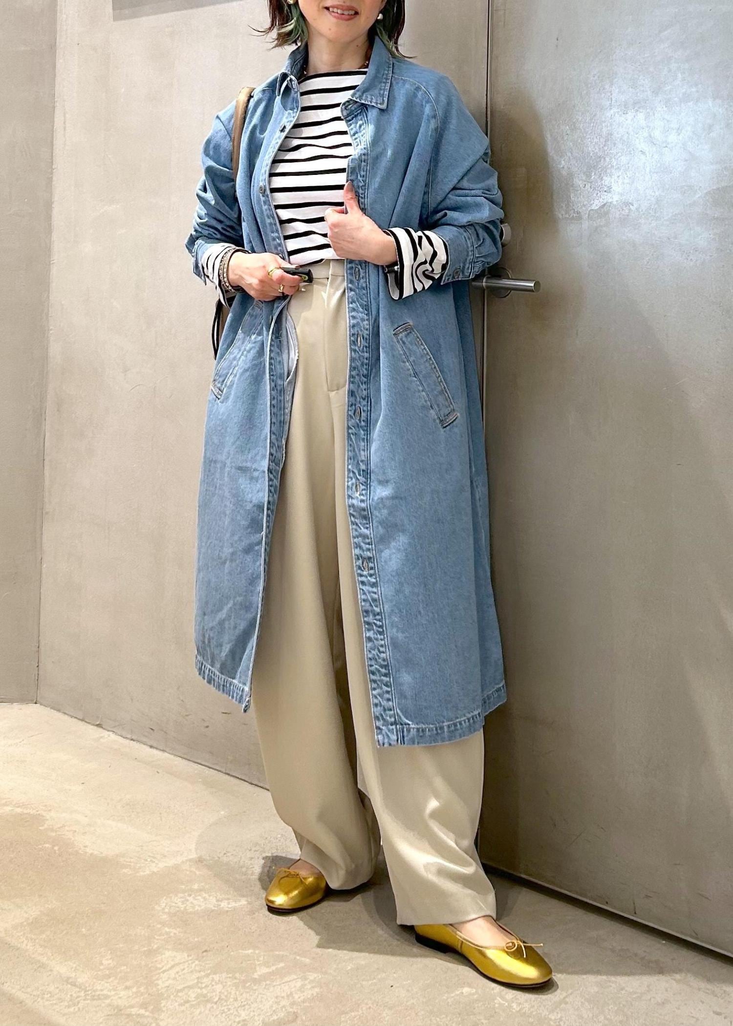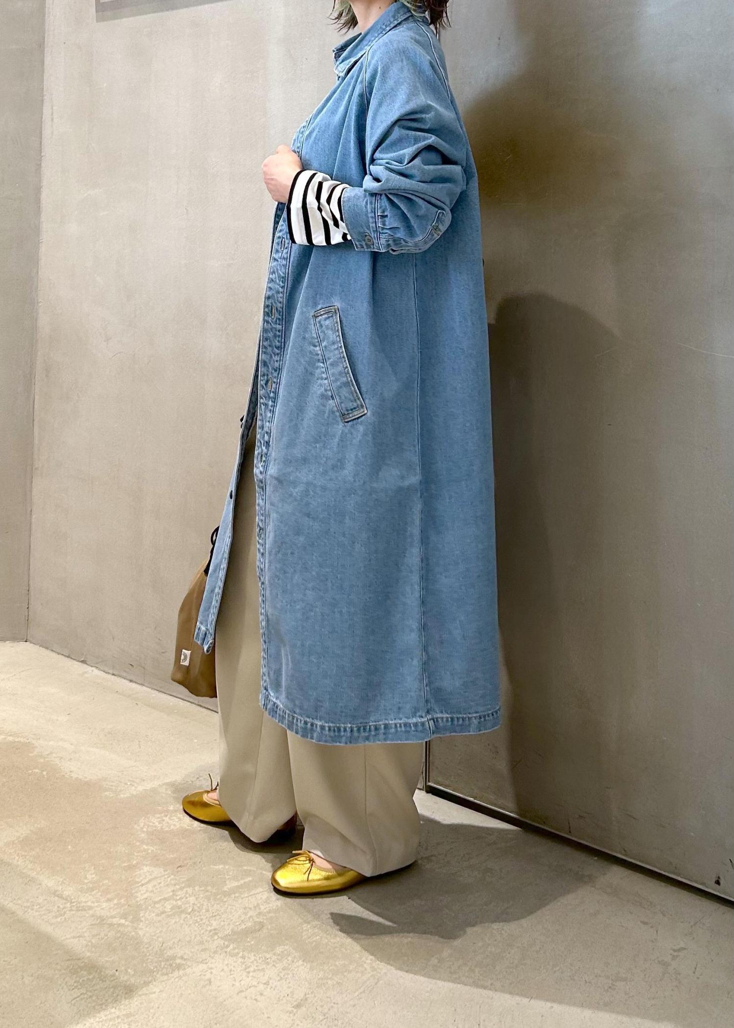 LE CERCLE par ropé【LANCER/ランサー】デニムシングルコートブルー系 / M¥21,780レビューデニム生地の重たさは感じませんでした。コットン100%で張りがあるので、ぱさっと羽織るだけできまります。