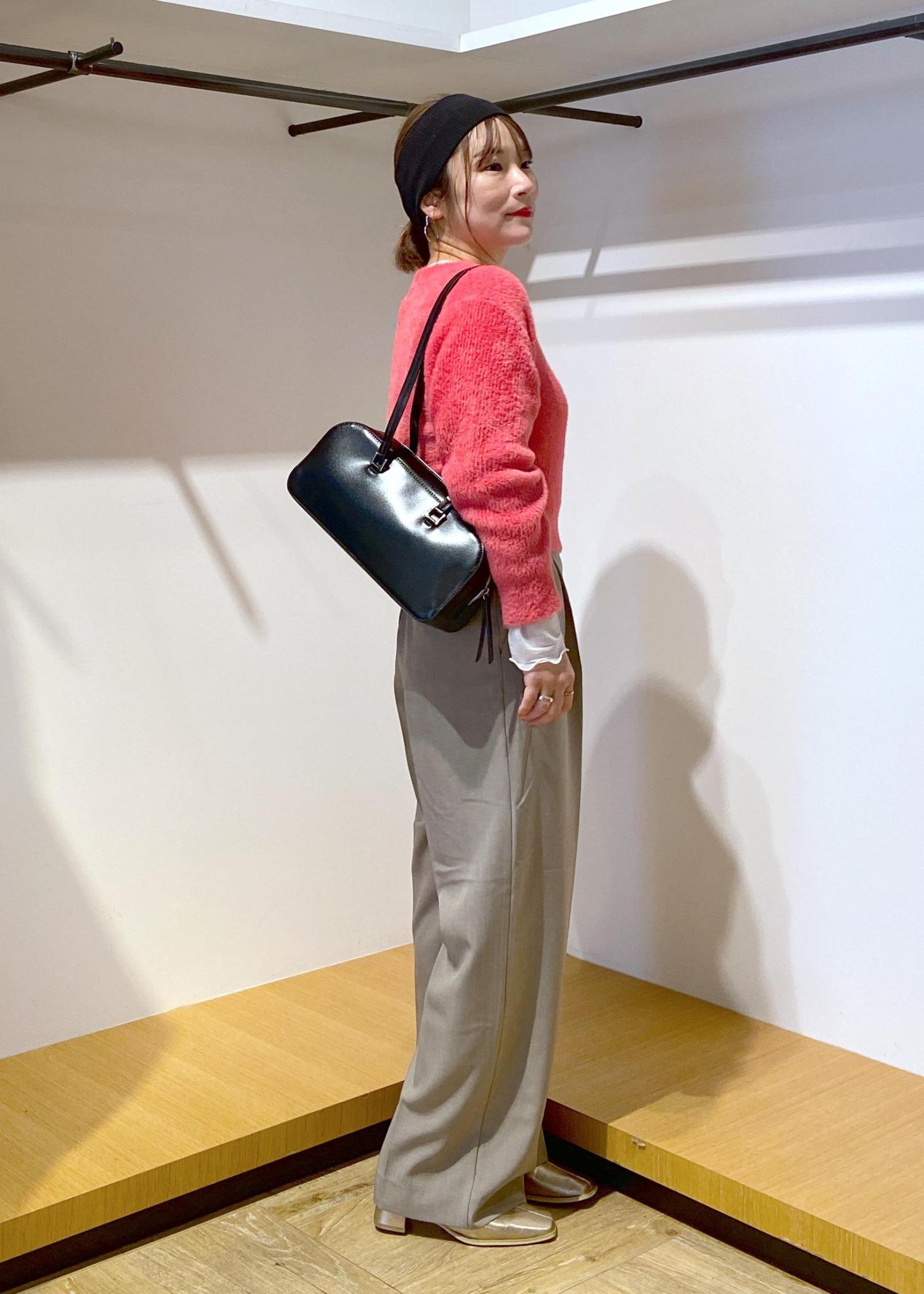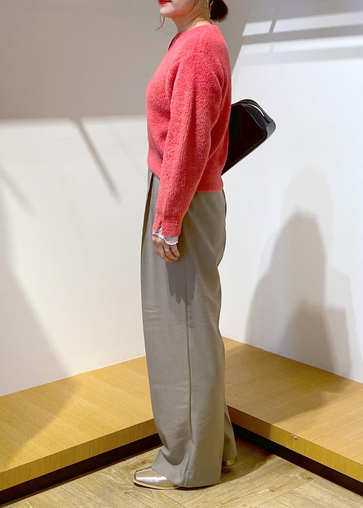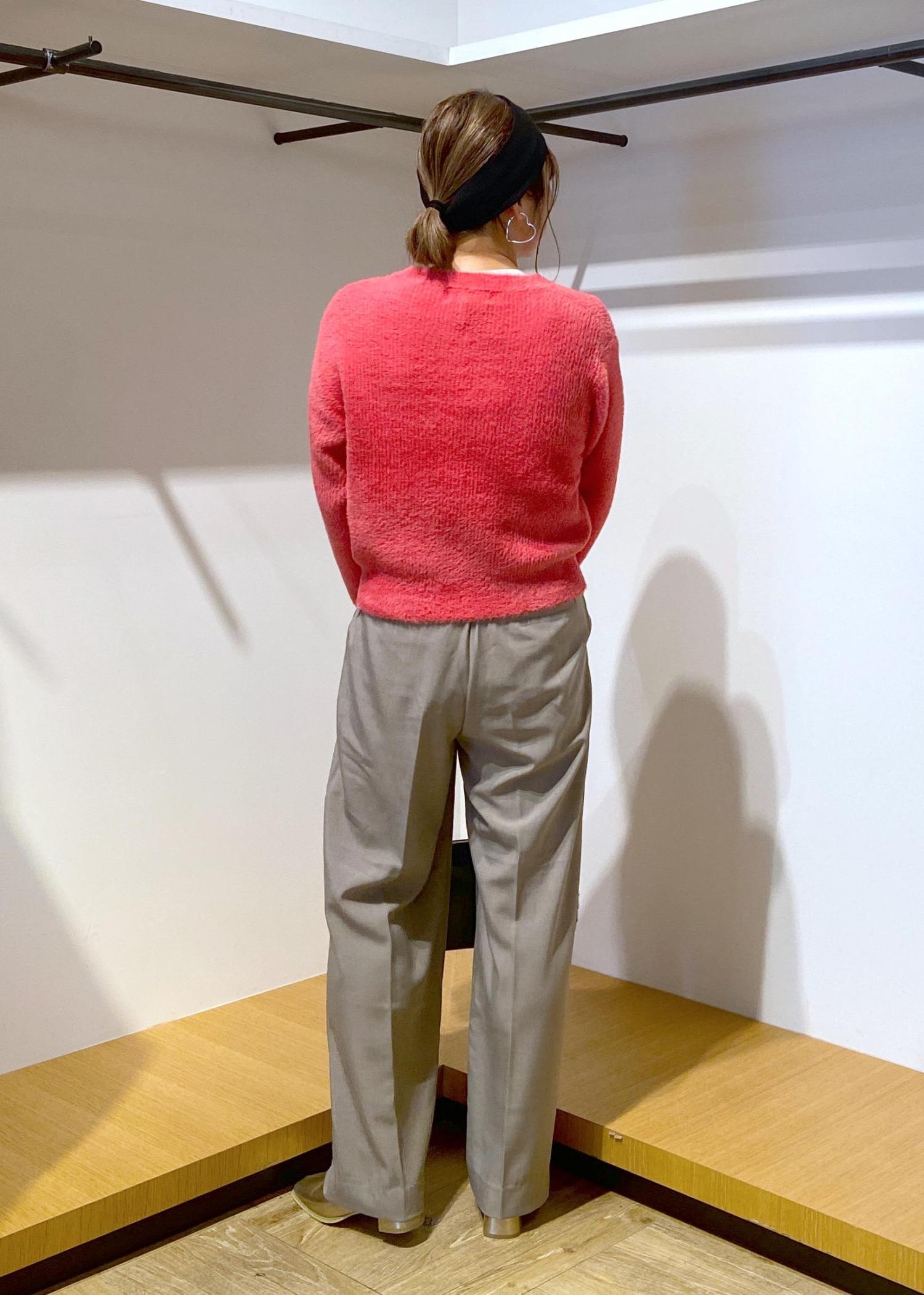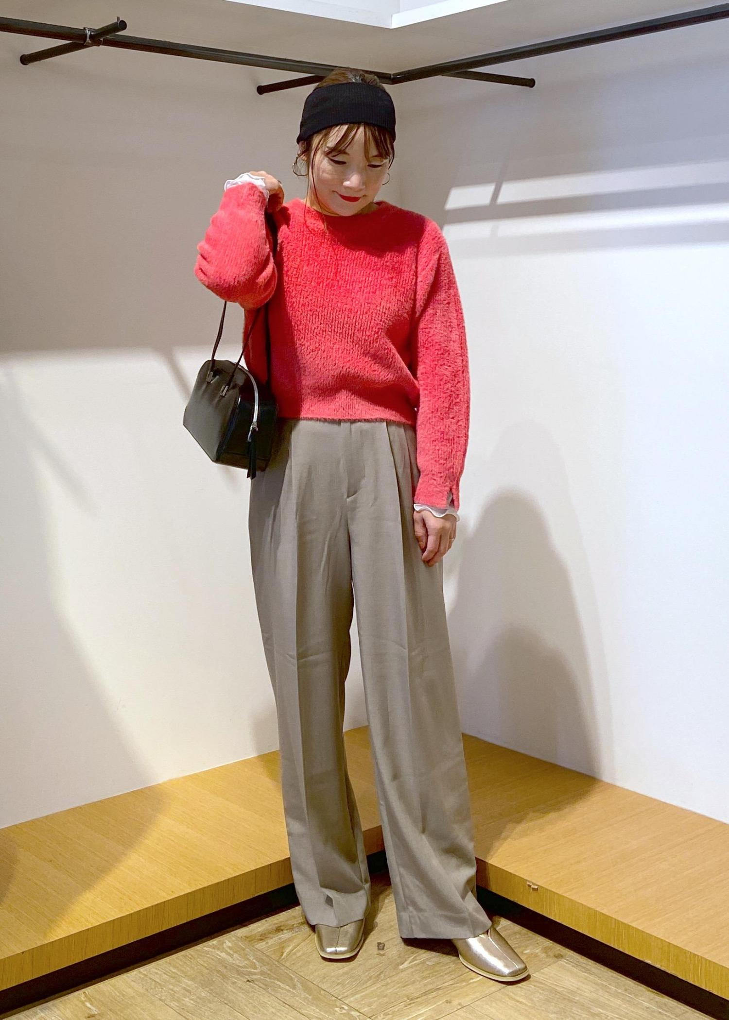 人気のフラッフィーニットのピンクをベーシックなパンツと合わせてスタイリングしました☆