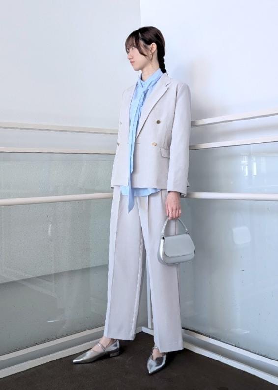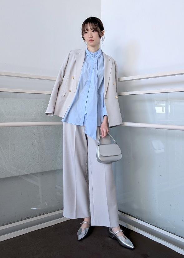 大きめのボウタイに合わせてジャケットとパンツも40を選び、オーバーサイズに着てみました。