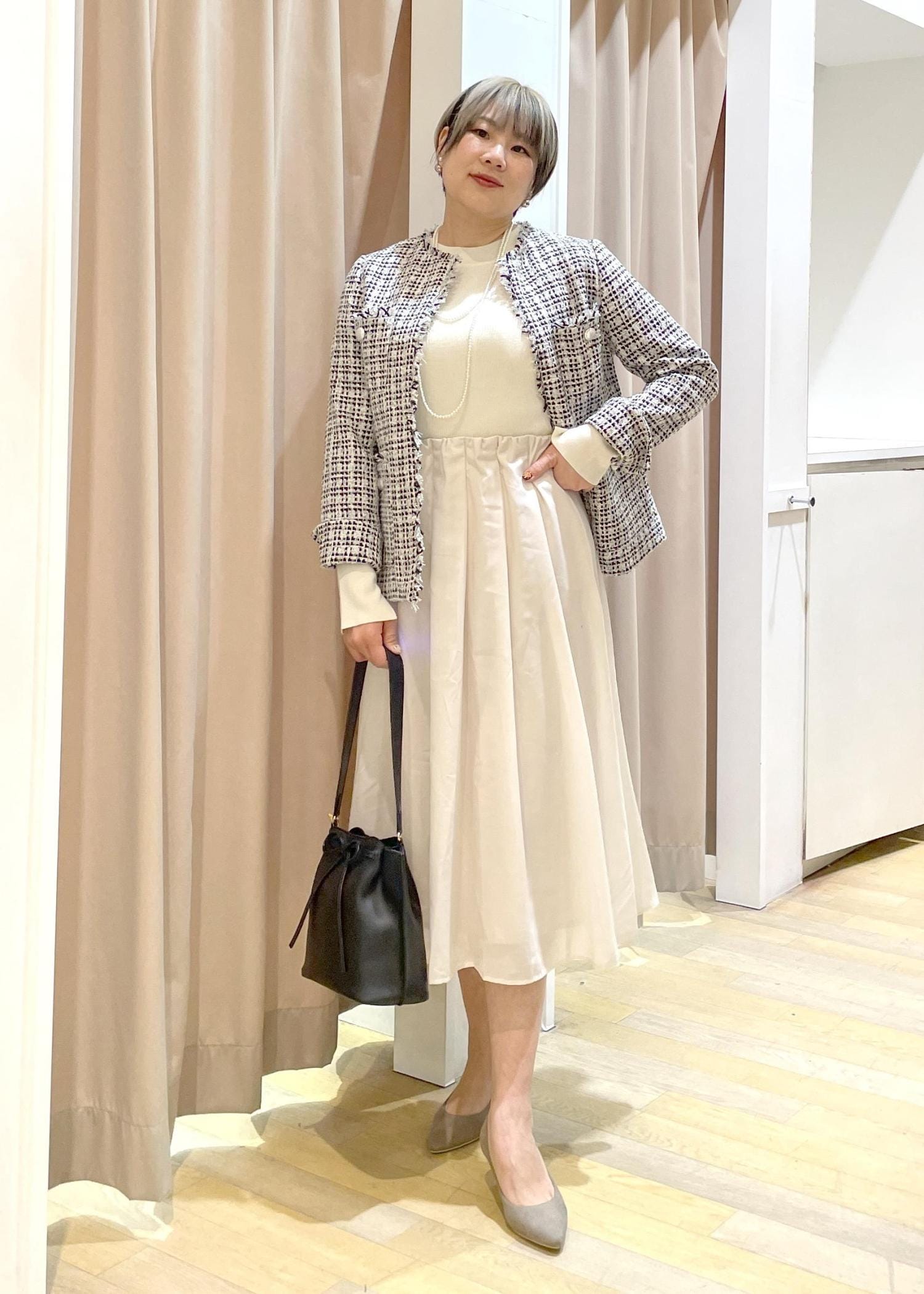 ツイードジャケットのオンコーデ