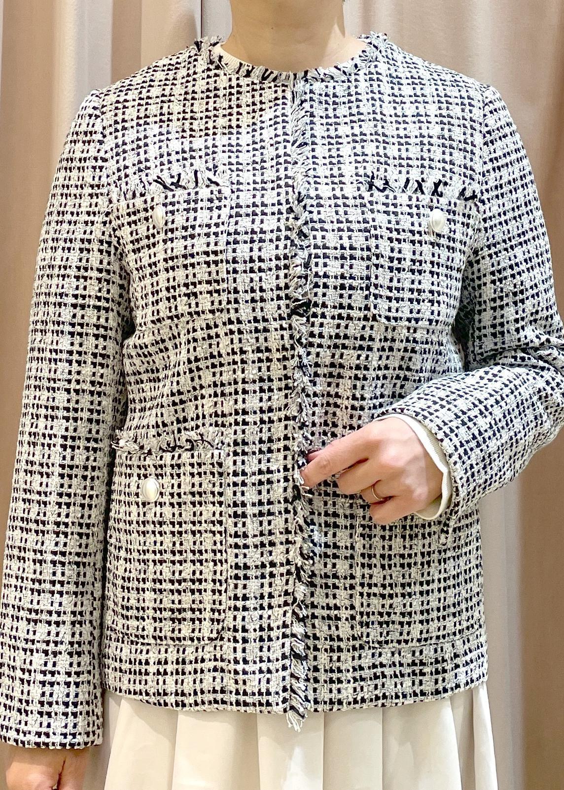 トレンドに左右されないツイードジャケットは、一枚あるとオン/オフで使い回しができるので、オススメ◎