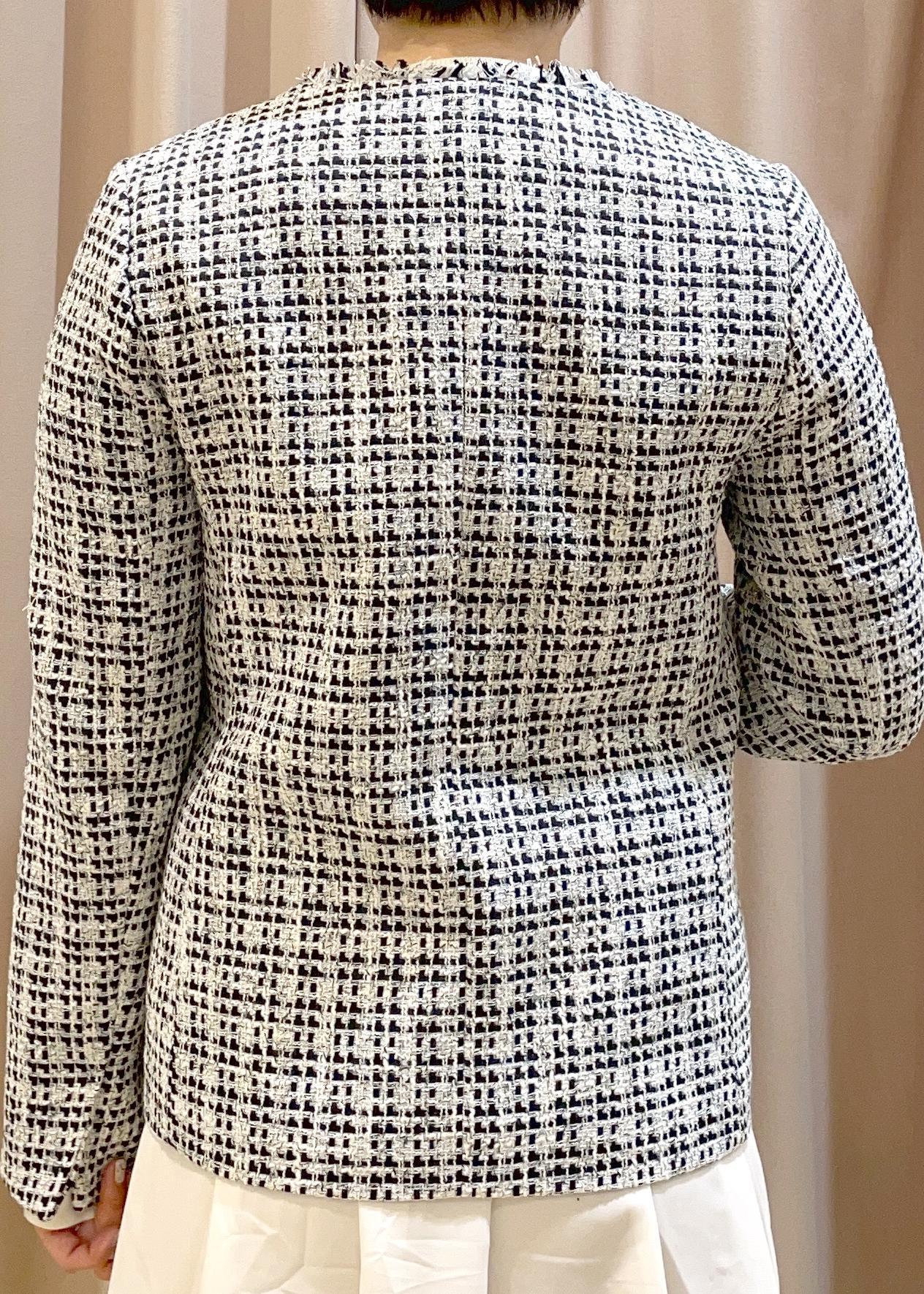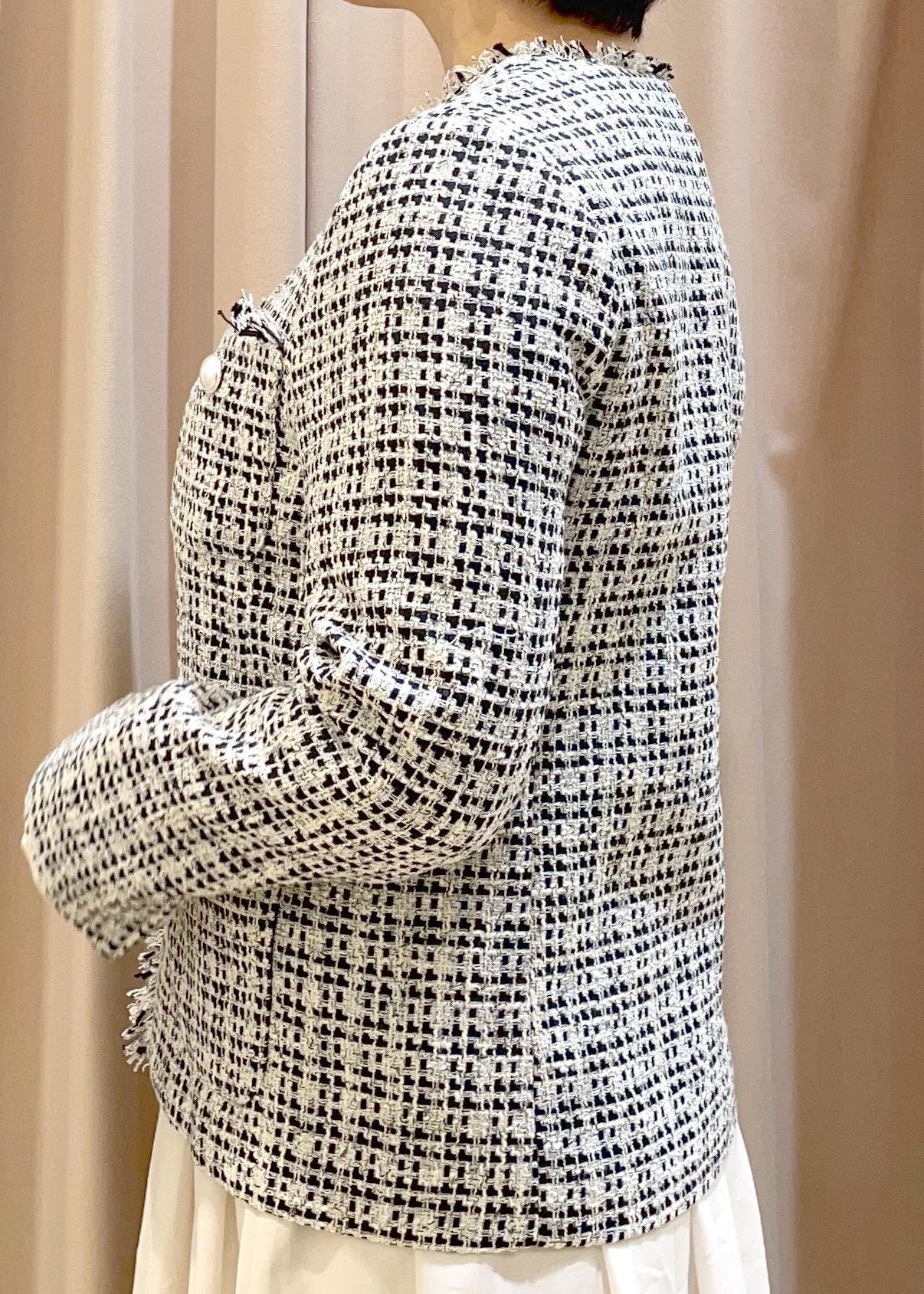 スタンダードなツイードジャケットに比べ、着丈も長くゆったりとしたサイズ感で、体型カバーにも◎