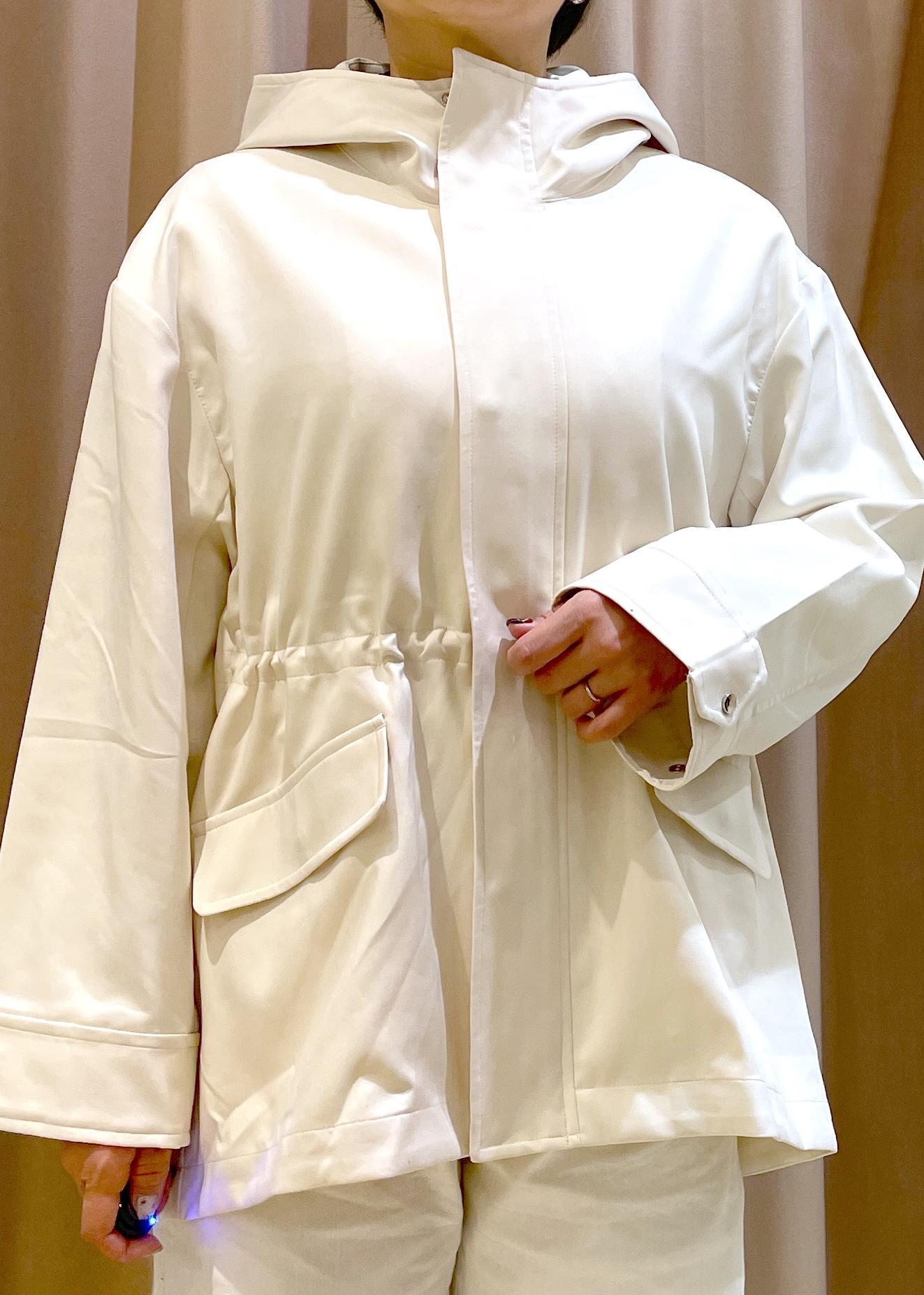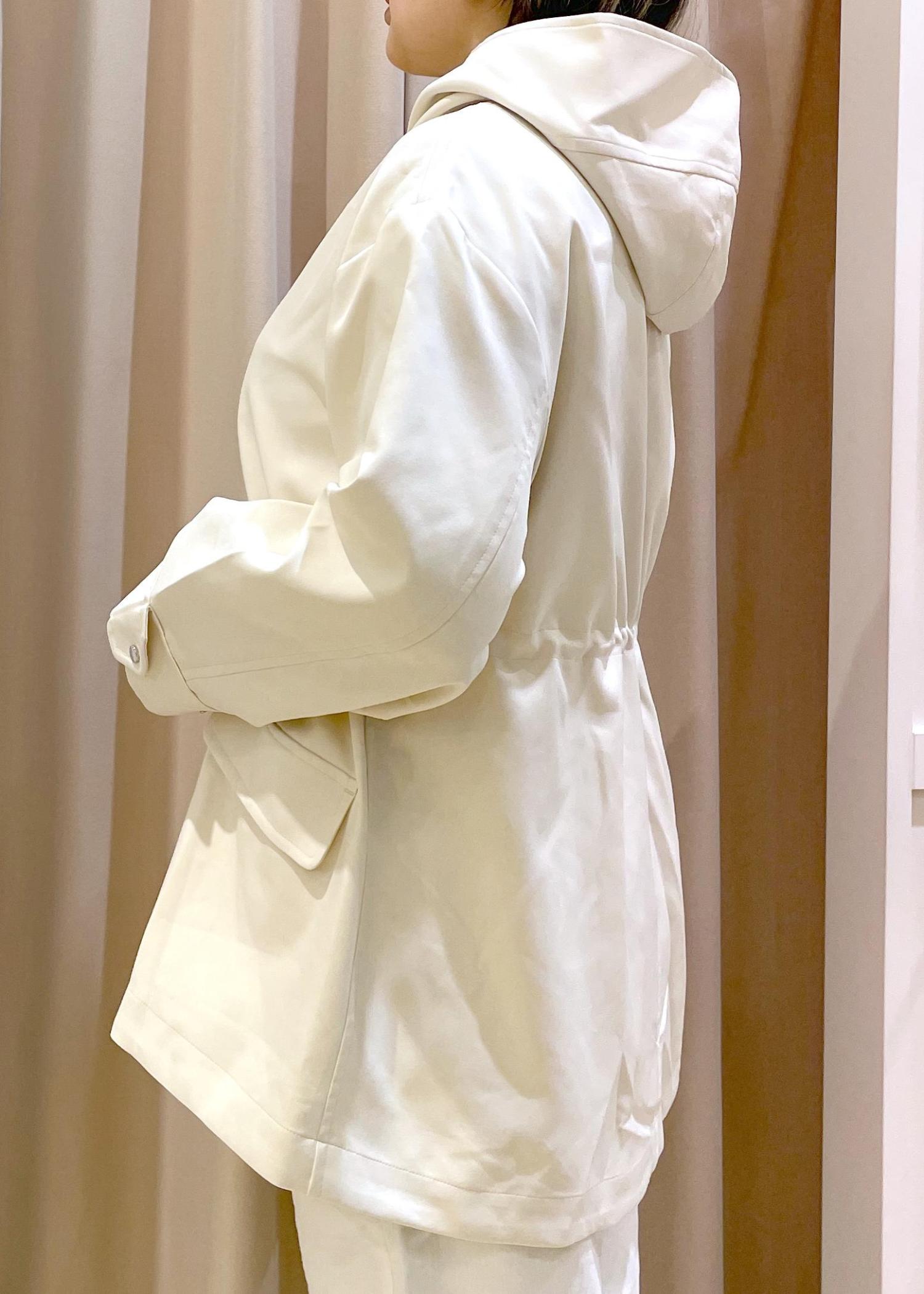 春に嬉しい【花粉ガード・撥水加工】付きの、ミドル丈マウンテンパーカーは、ウエストのドロストコードでスタイルチェンジが可能!