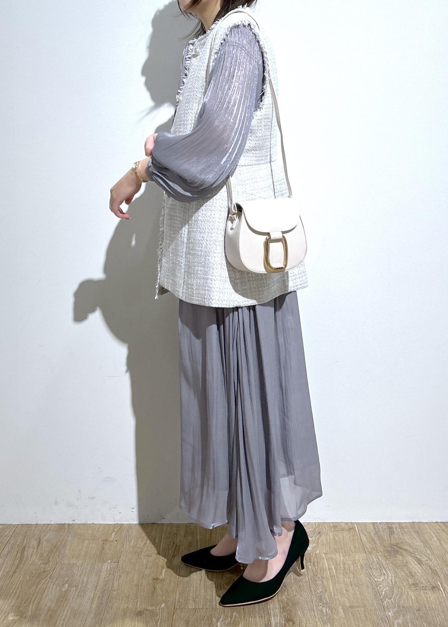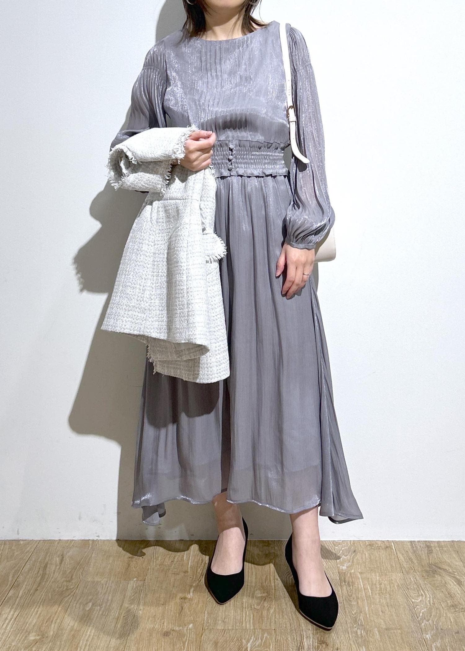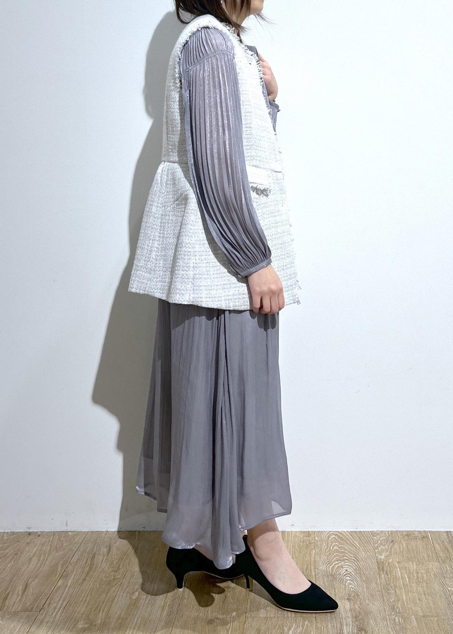 フロントとスリーブ部分がプリーツになっており、ぽわんとしたお袖が可愛いです。