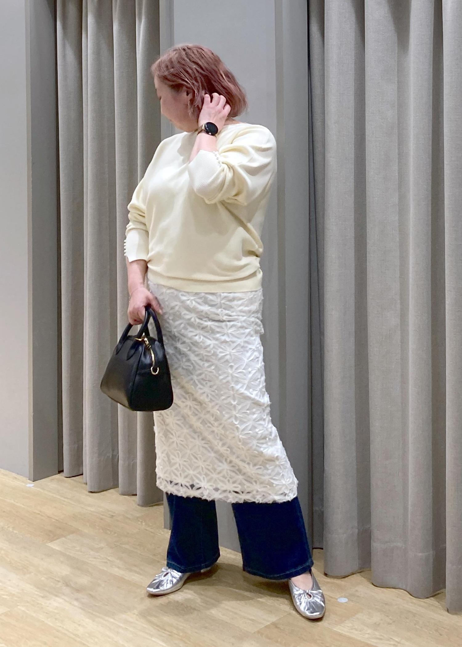 体型カバーしながら、トレンド見えレイヤードスタイリング