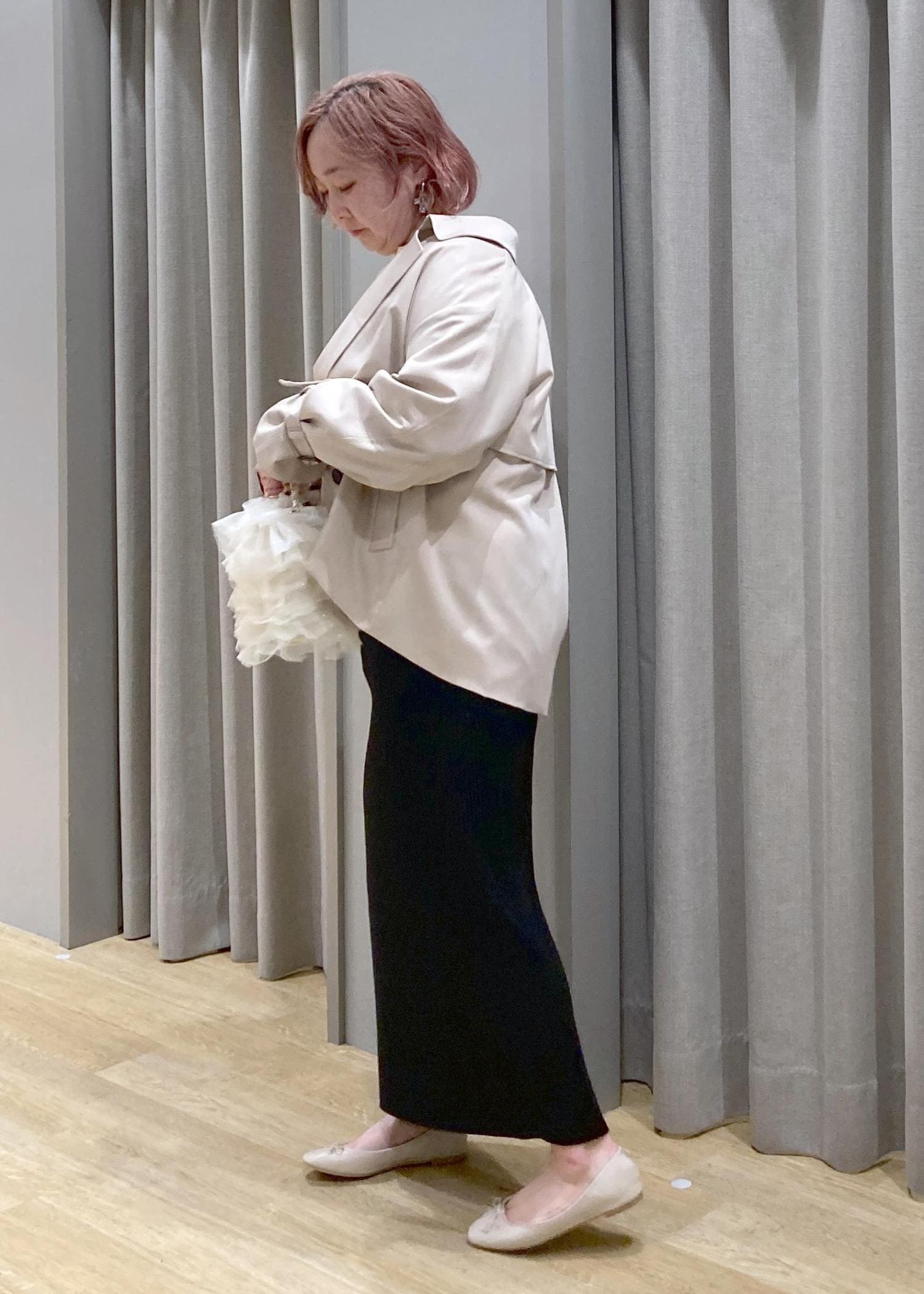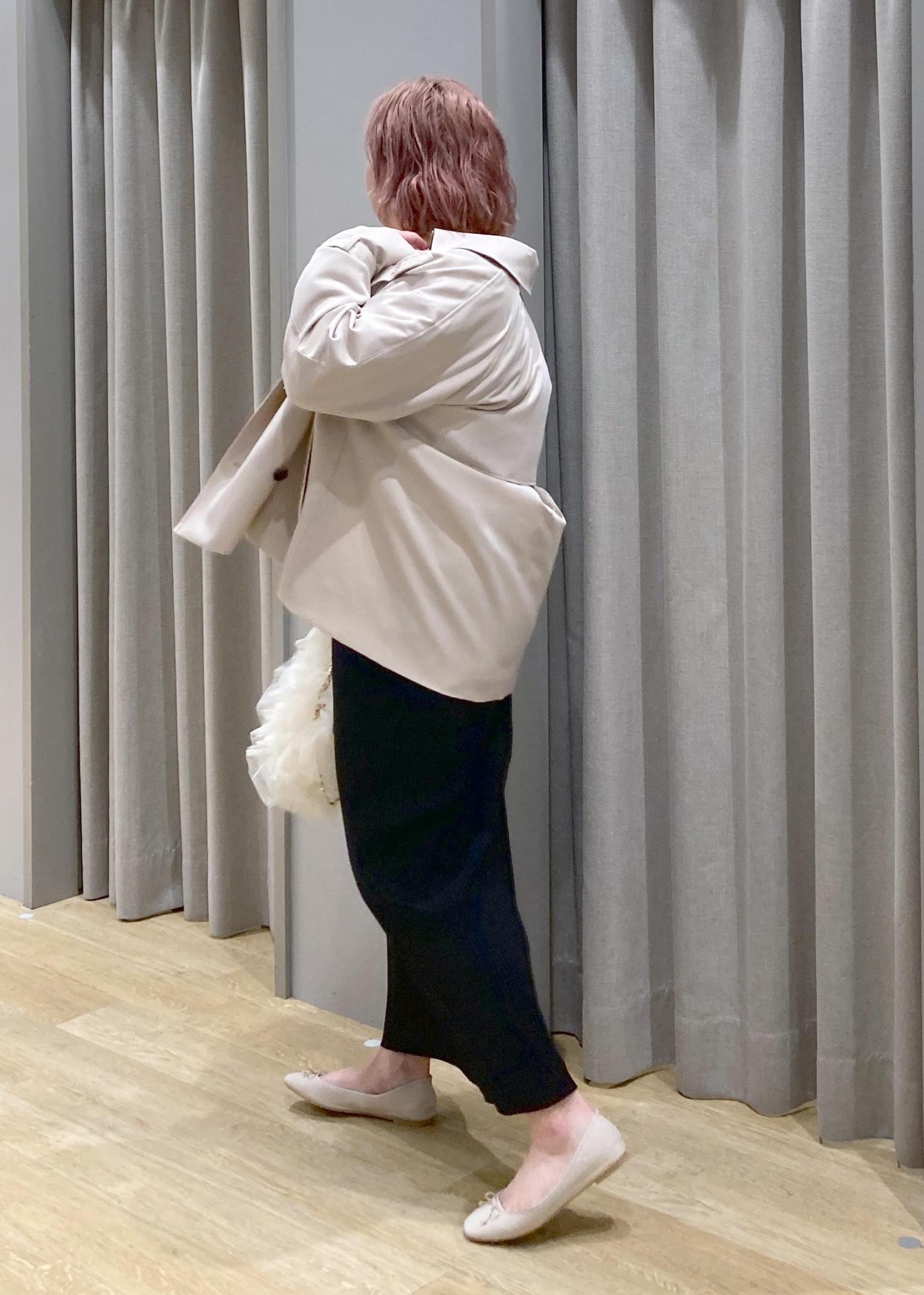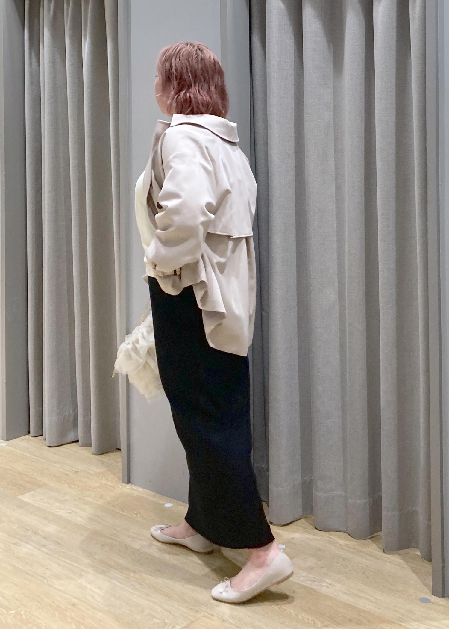 この季節になると羽織物何着ようかな〜と悩んでしまいますが、このトレンチコートはお尻周りなど気になるところをカバーしてくれるけど、前は少し短く脚長効果も期待できます。