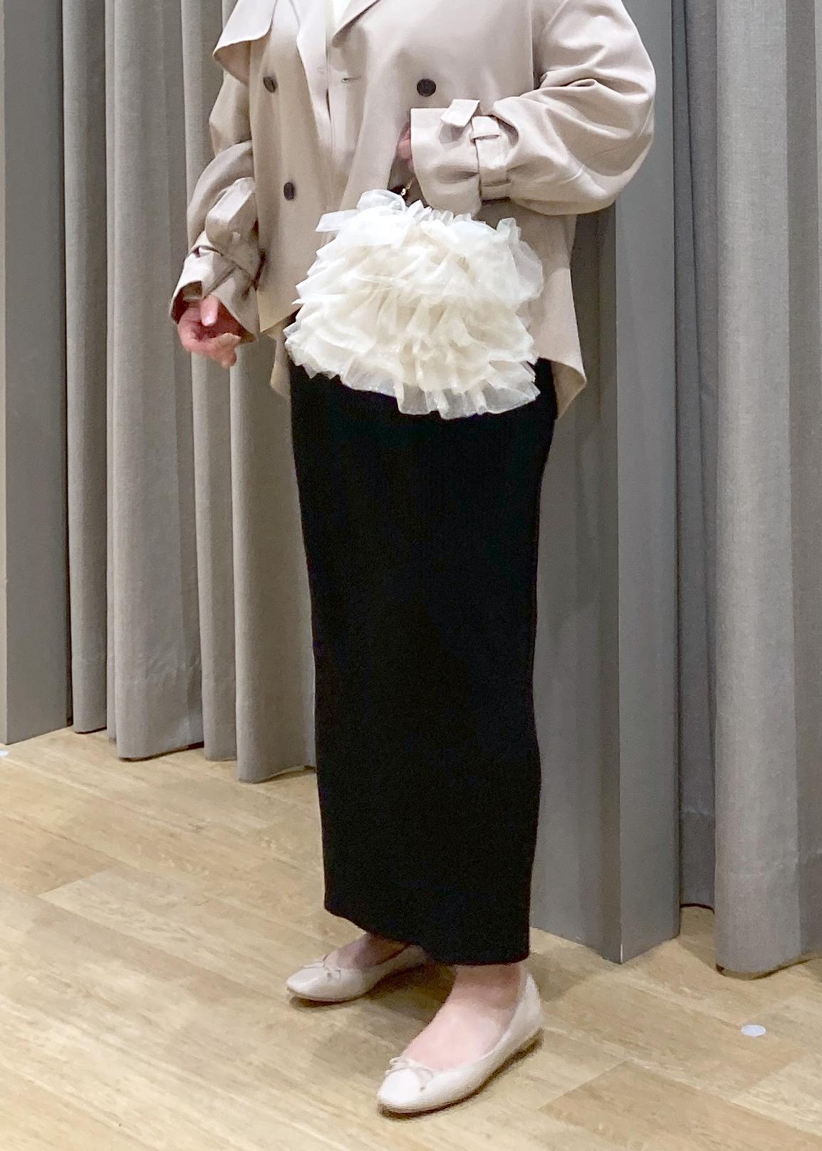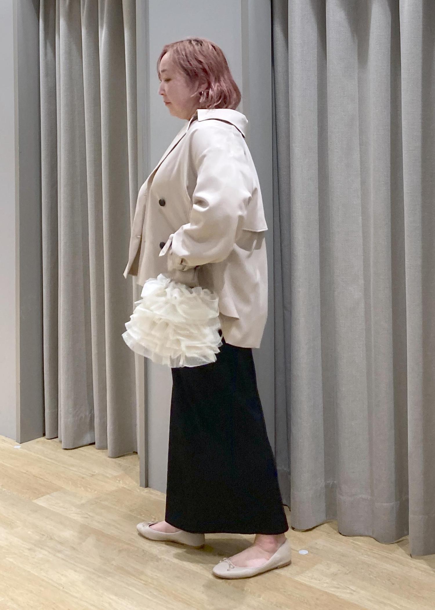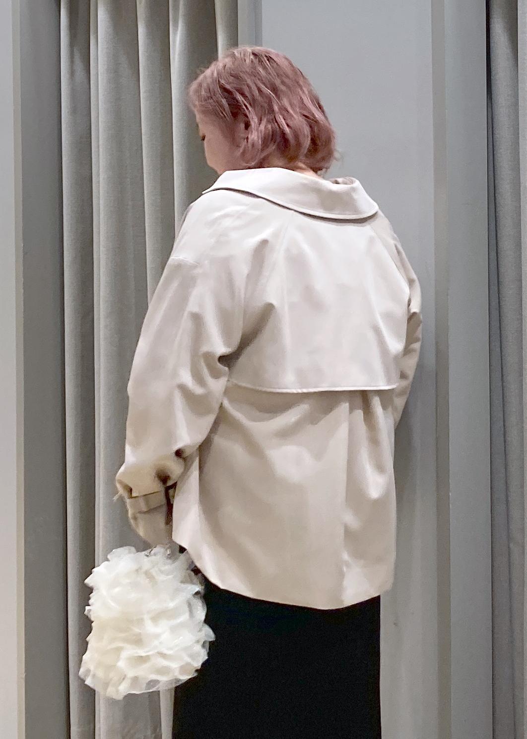 この季節になると羽織物何着ようかな〜と悩んでしまいますが、このトレンチコートはお尻周りなど気になるところをカバーしてくれるけど、前は少し短く脚長効果も期待できます。