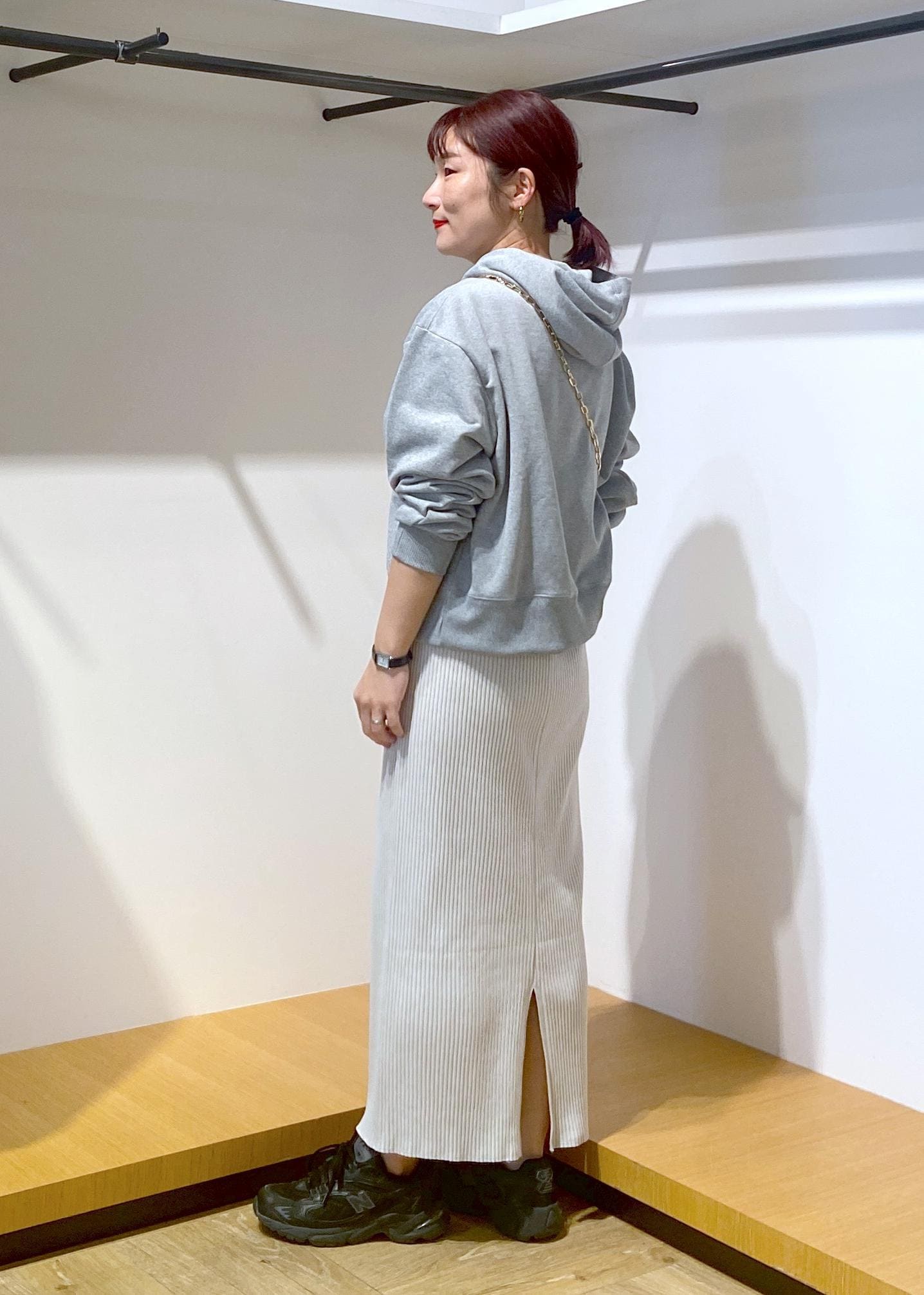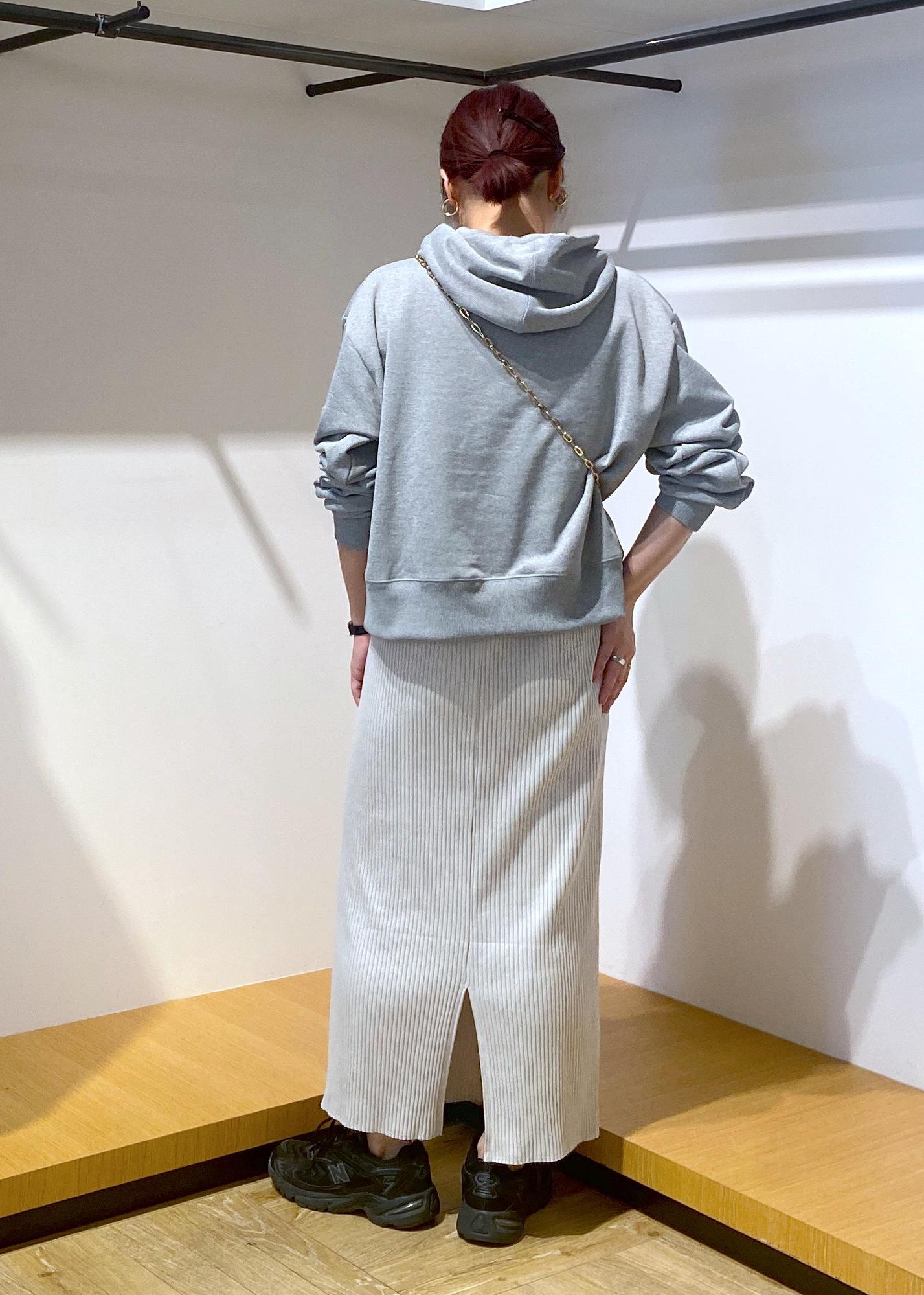 スリットを後ろで着用していますが、横にずらして履いていただくことも可能です!