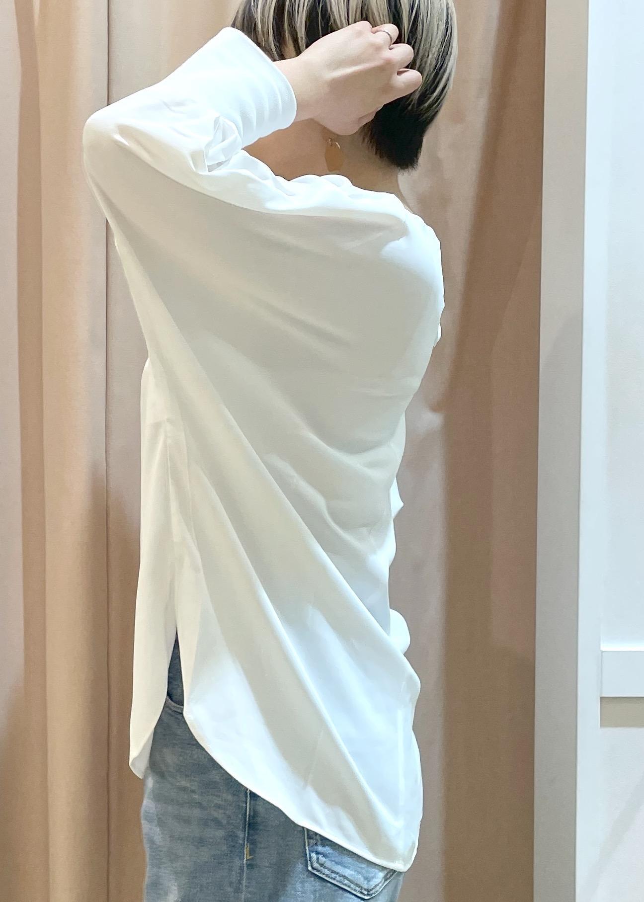 ゆったりとしたシルエットで、やや着丈が短めなので、バランスがとりやすいです。