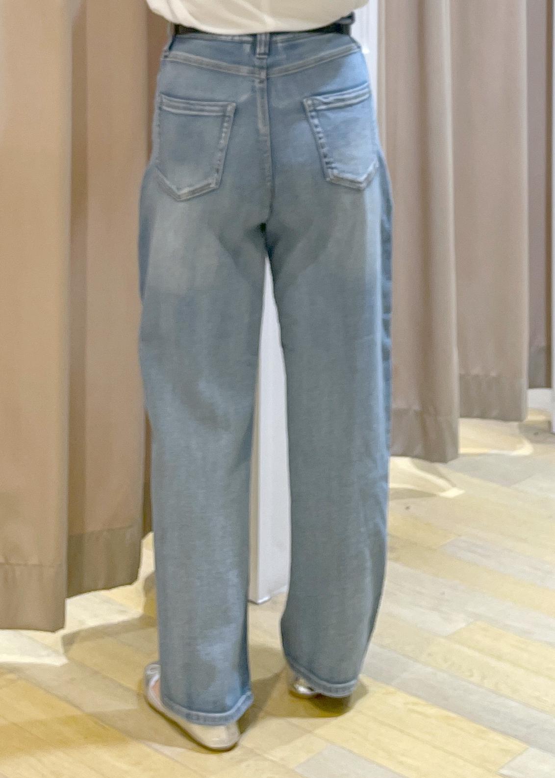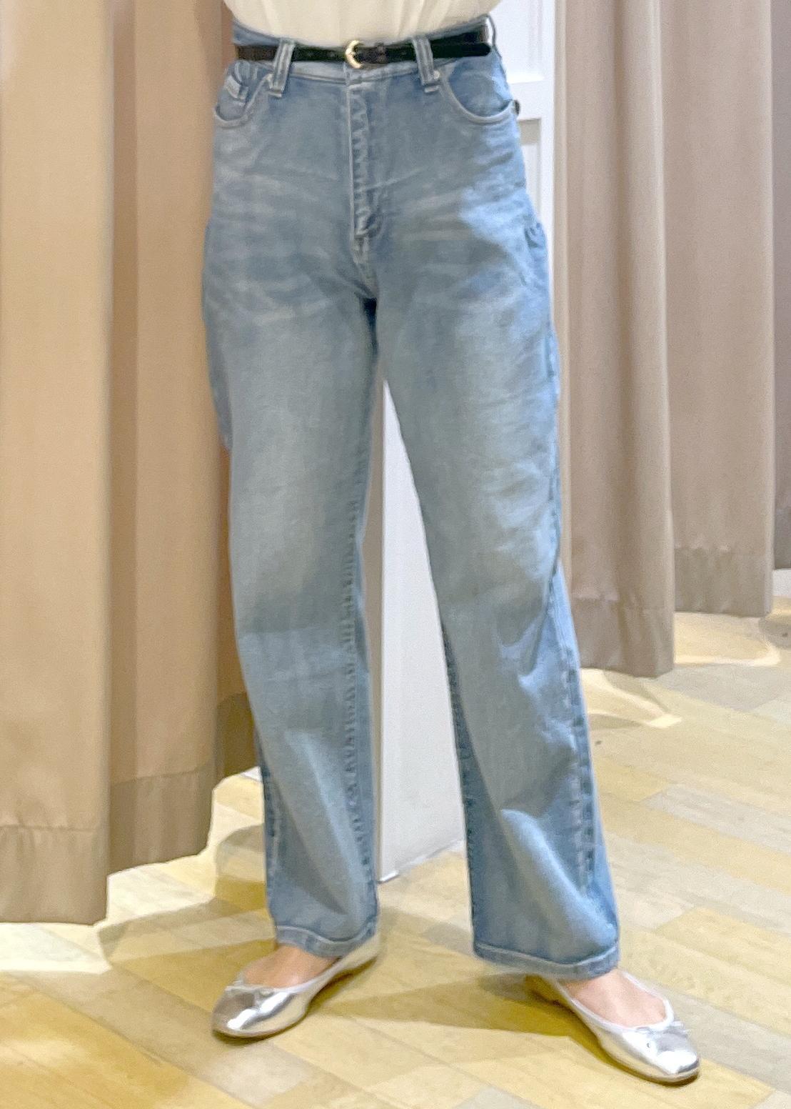 ウエストの内側にゴムを入れることで、気になる下腹を着圧し細く見せてくれる、革命デニムです◎