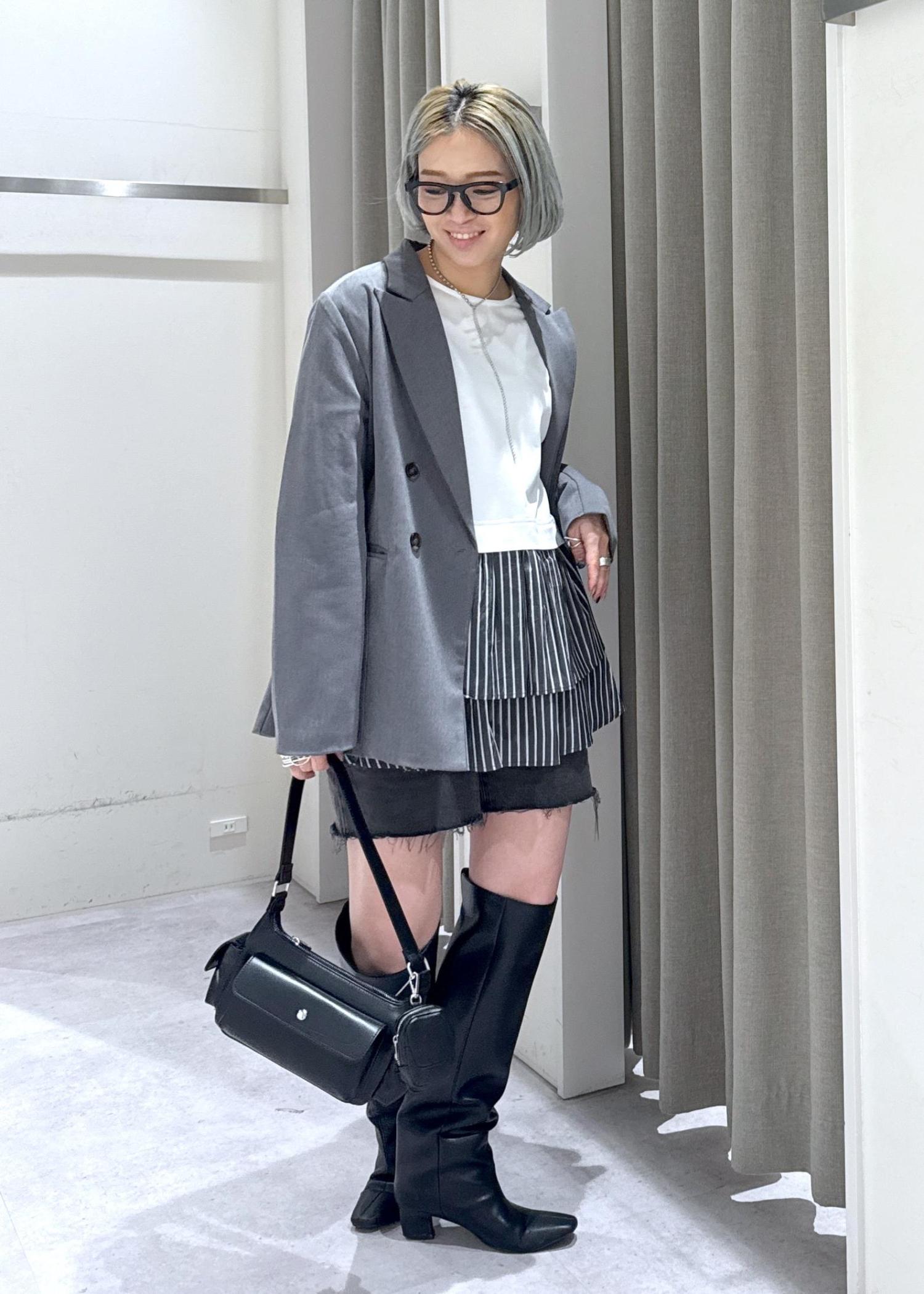 春らしくハーフパンツをあわせたのですが、まだ少し肌寒いので、靴はブーツで!