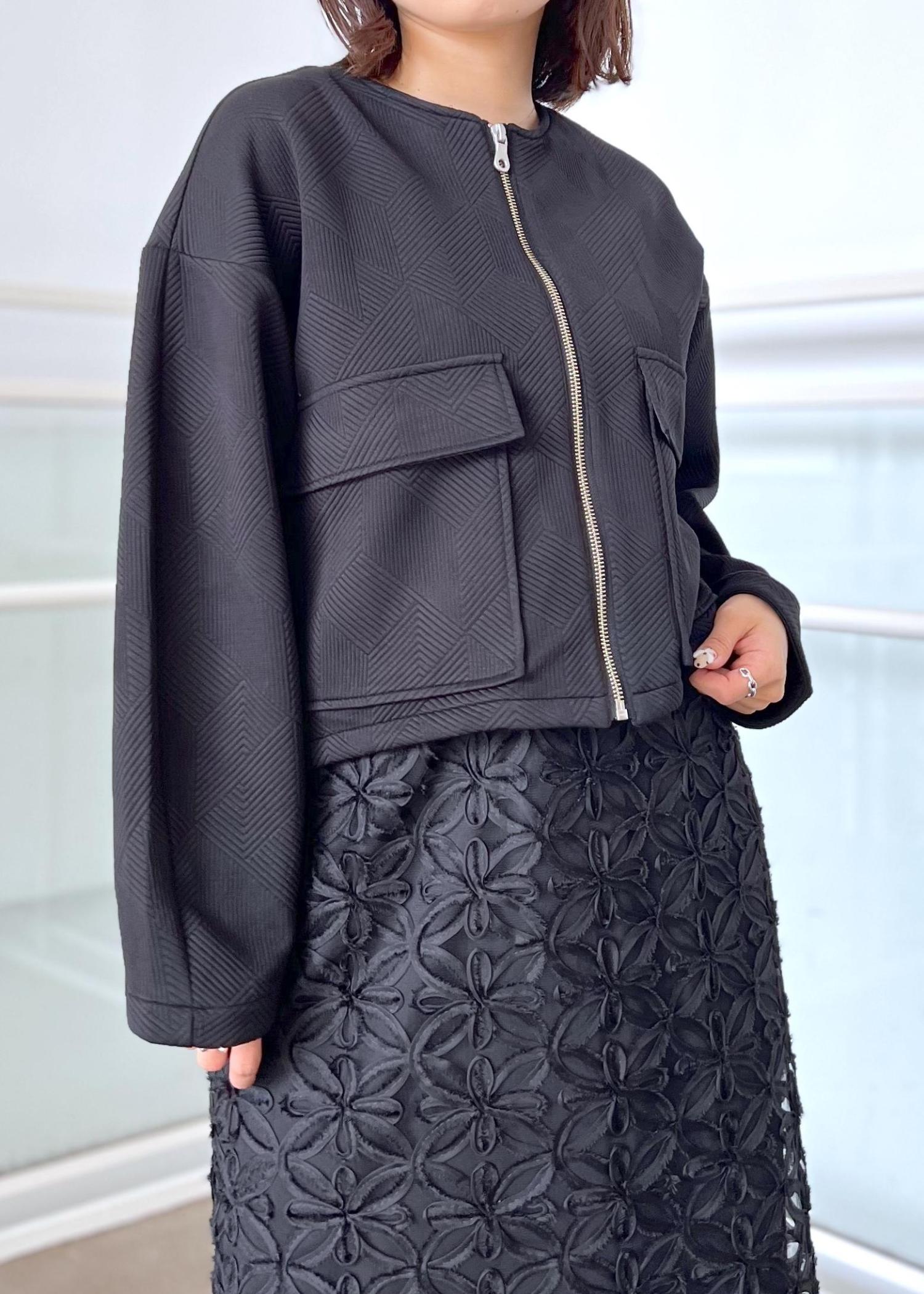 ROPÉ PICNIC幾何柄ジャガードショート丈ブルゾンブラック / 38¥8,492レビュー着心地がとても柔らかいです。身幅はゆったりしているためインナーを選ばず着用出来ます。