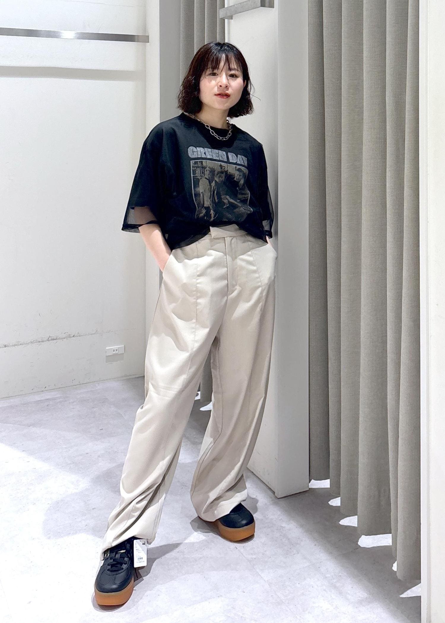今回はロックなTシャツをカジュアルになりすぎないように組み合わせてみました!