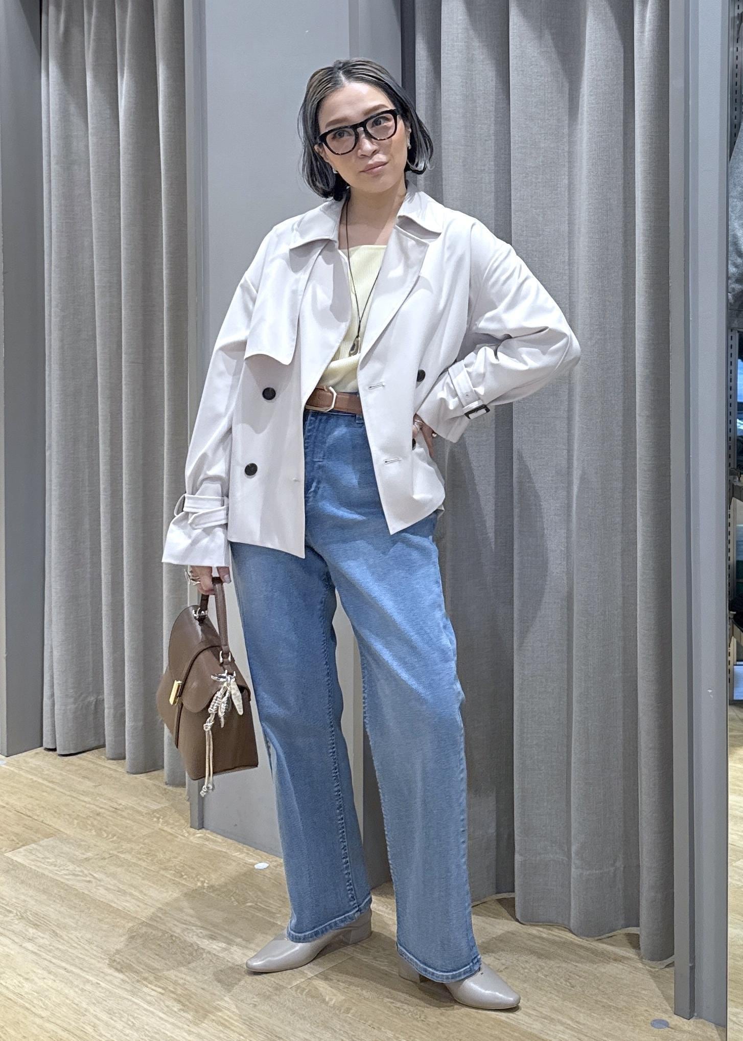 Mサイズはウエストに余裕があって、着丈は少し長めです。ヒールと合わせてもしっかり長さが出ます