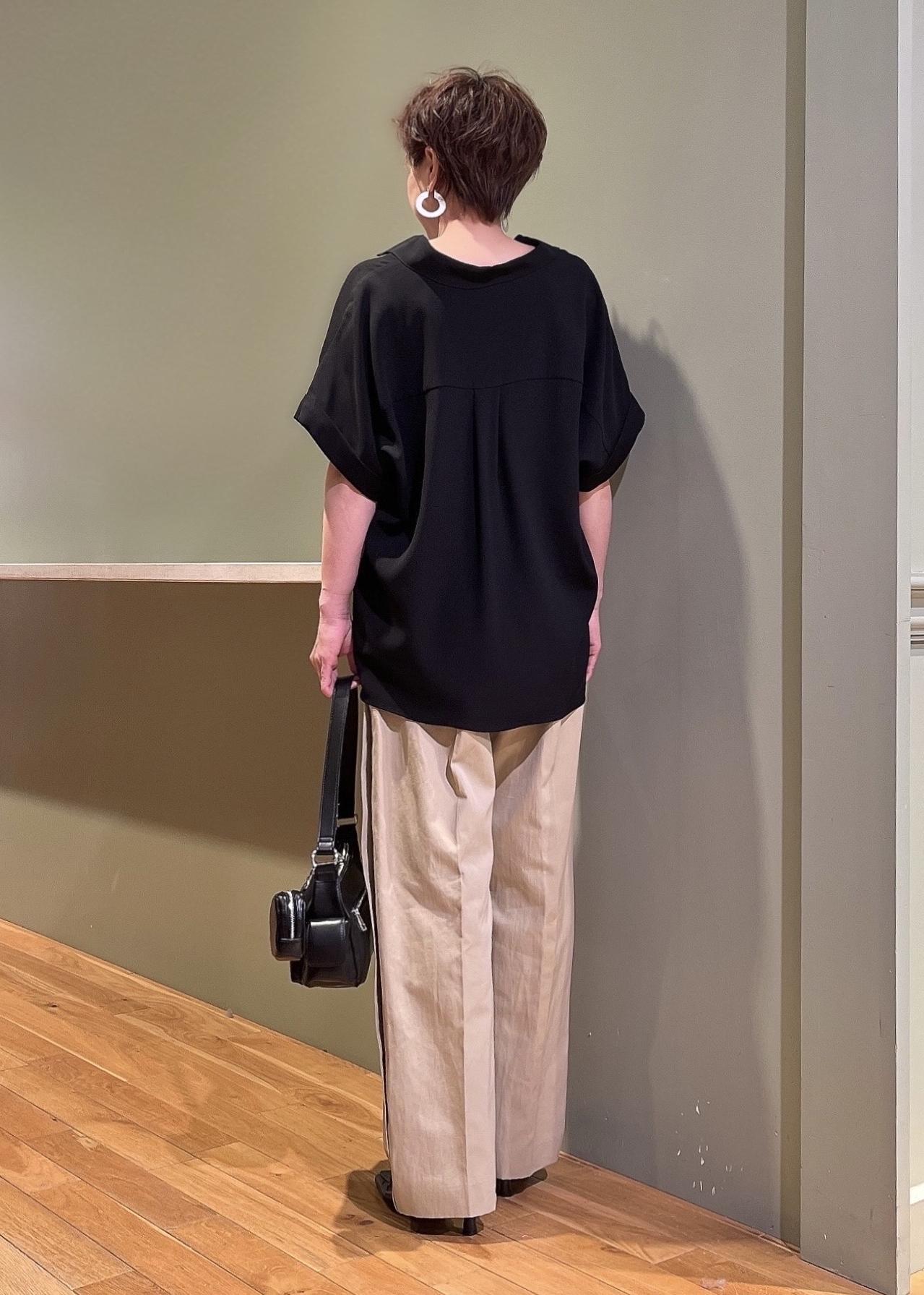 ボトムにインすればきっちり感もあり、背抜きで着て頂くとカジュアル感が出ます!夏の羽織りとしても活躍して頂けます!シワになりにくいのも嬉しいポイントです♪ -