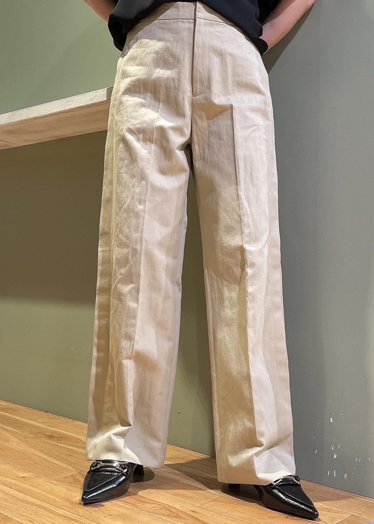 アウトレットROPÉサイドタックストレートパンツ【メディア掲載】ベージュ / 36¥7,590レビューハリ感のあるパンツでオンオフ活躍できます!