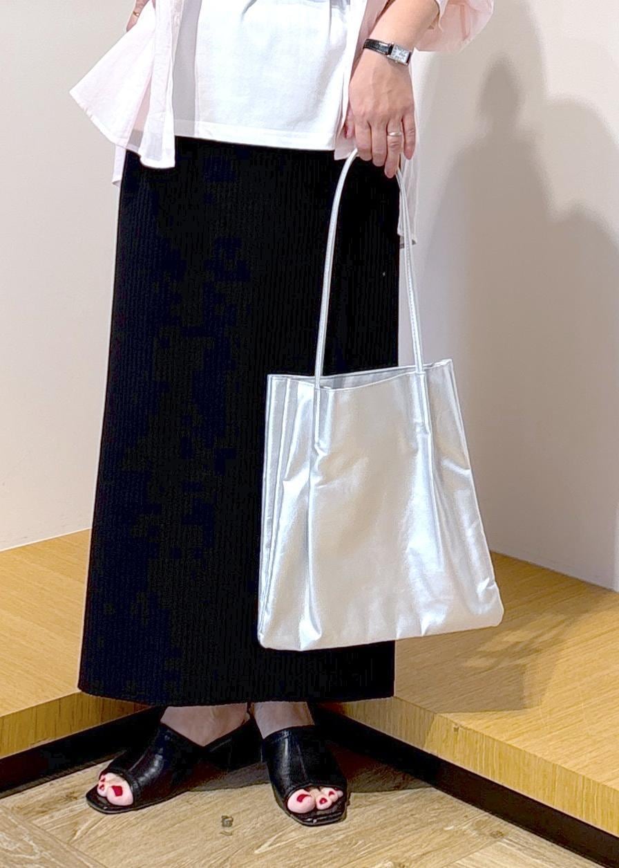 スリットを後ろで着用していますが、横にずらして履いていただくことも可能です!