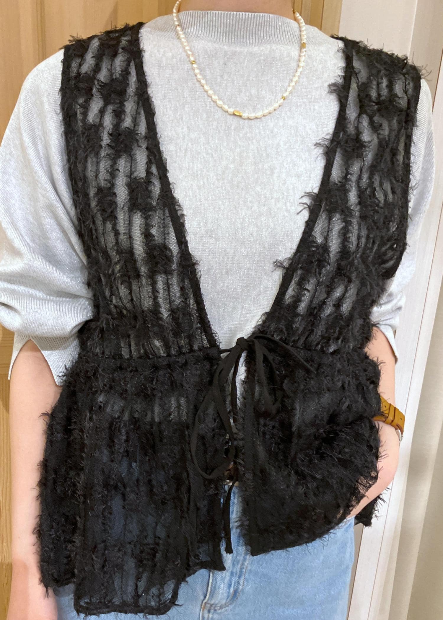 アウトレットROPÉ PICNICフリンジチュールジレブラック / 38¥3,496レビュー前を開けても閉めても使えるチュール素材のジレ。