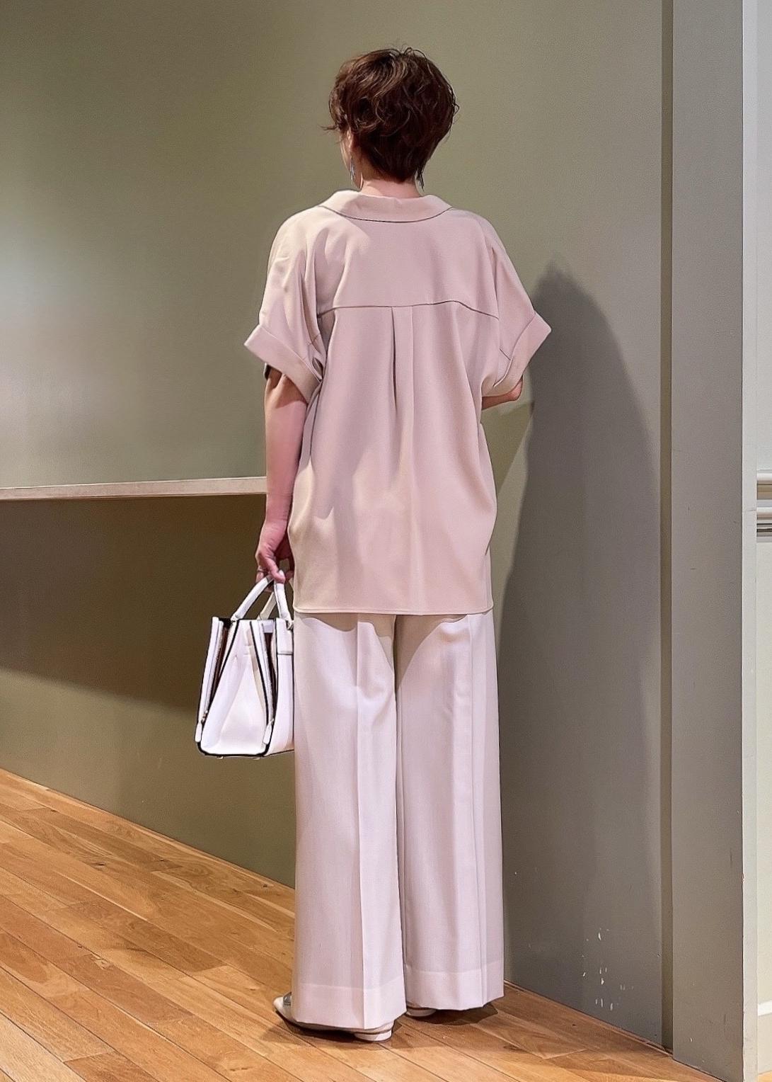 ボトムにインすればきっちり感もあり、背抜きで着て頂くとカジュアル感が出ます!夏の羽織りとしても活躍して頂けます!シワになりにくいのも嬉しいポイントです♪ -
