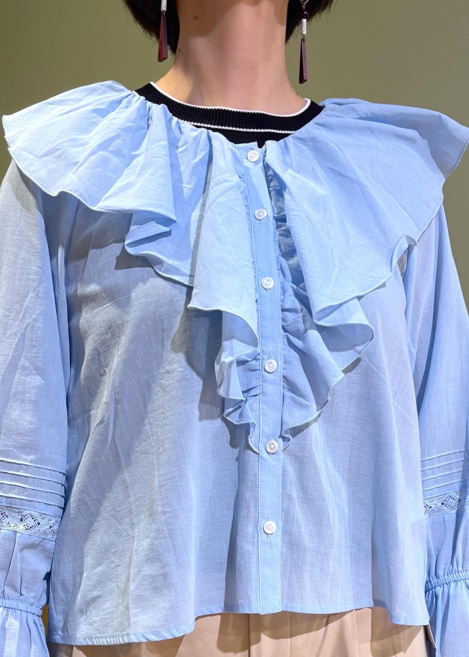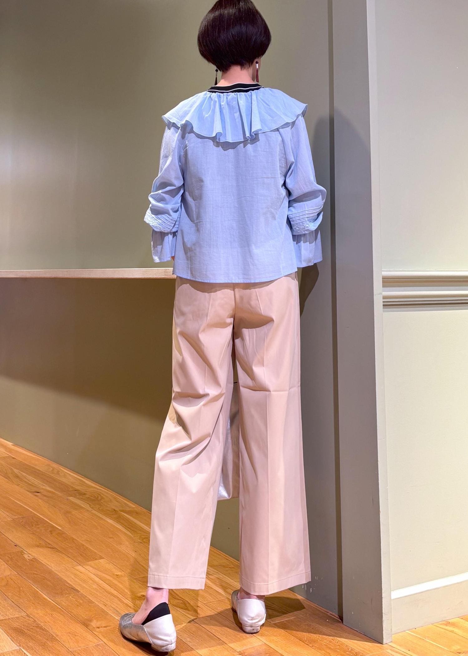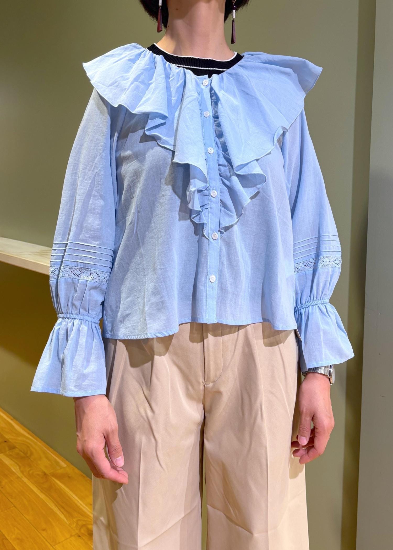 アウトレットROPÉ PICNIC【接触冷感・通気性】お着軽シャツシリーズ/綿ボイルフリルブラウスサックス / 38¥4,391レビューひんやりとした肌触りの接触冷感で、軽やかで快適な着心地のブラウスです。フロントにかけてたっぷりとあしらわれたラッフル襟が特徴で、ギャザーを入れたキャンディスリーブも可愛いです。ボタンを開けて羽織りで来てもお洒落です。