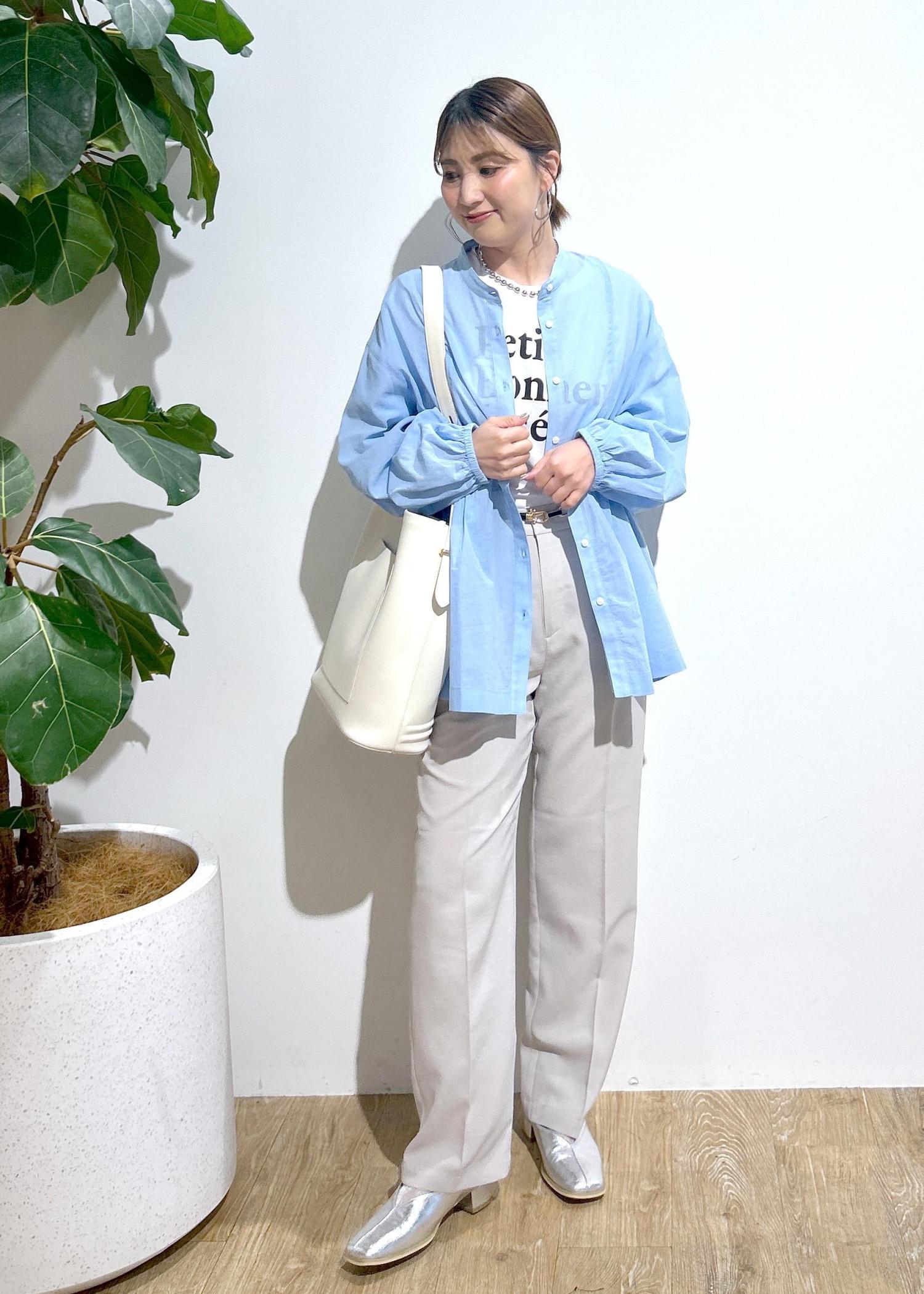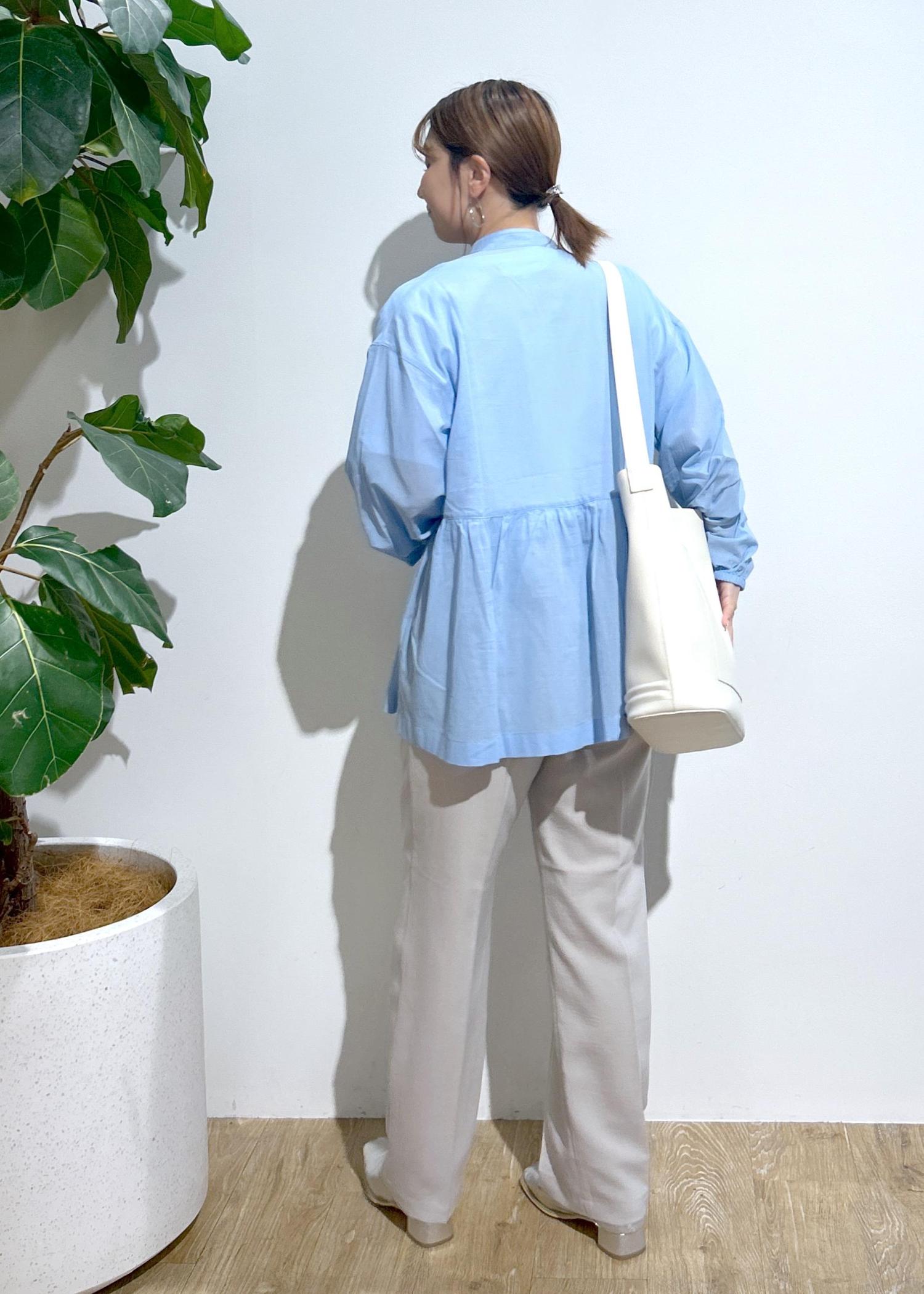 爽やかなブルーのブラウスはふわっと柔らかく、自然な風合いが魅力なシャツです。通気性も良く、サラッと羽織れて暑い夏にも嬉しいです。ウエスト切り替えのフレアデザインでお腹周りや気になるヒップもカバーしてくれます。