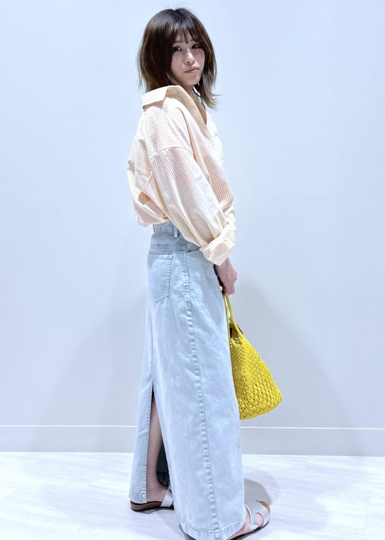 大活躍のシャツと、定番のデニムスカートコーデです☺︎