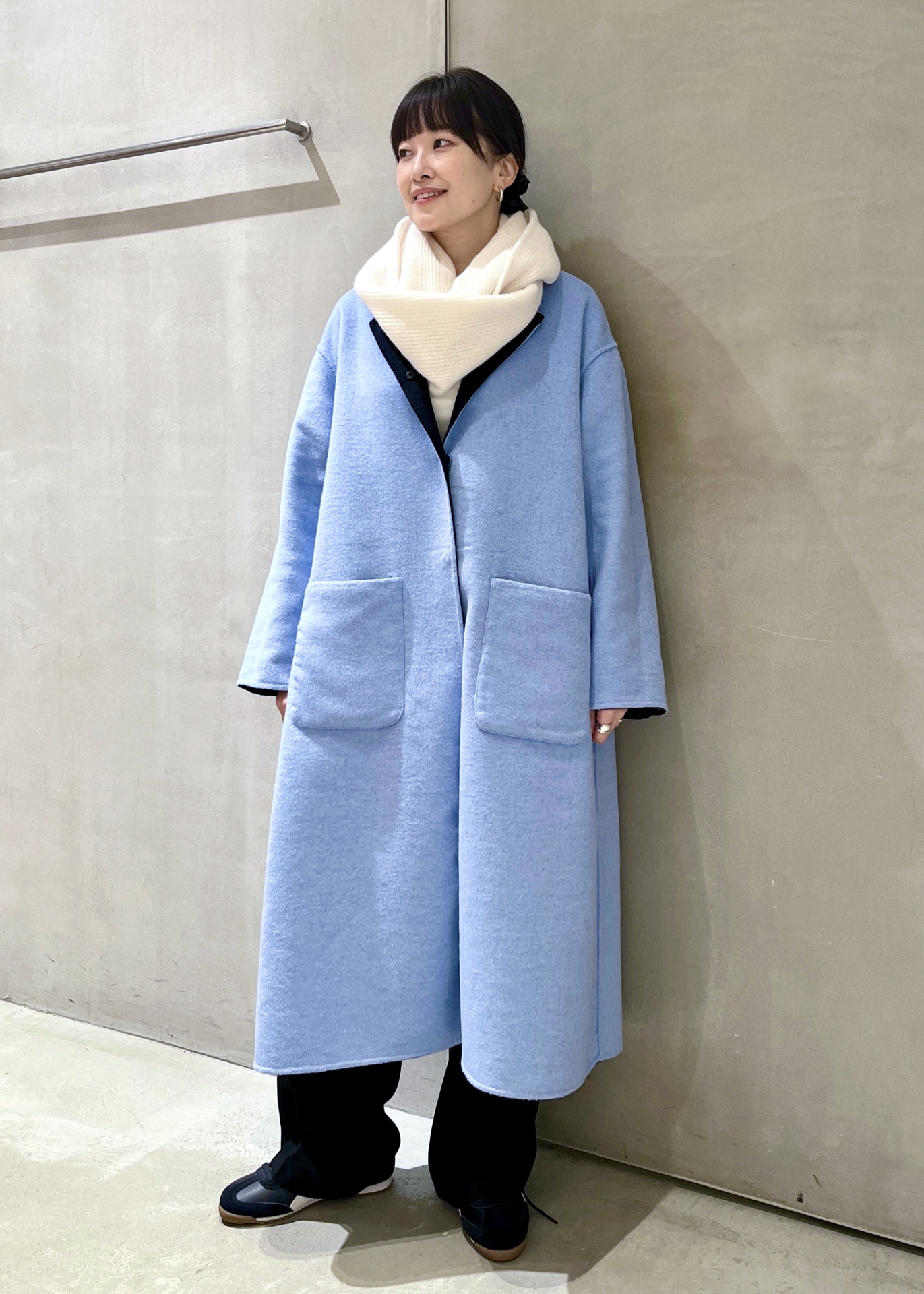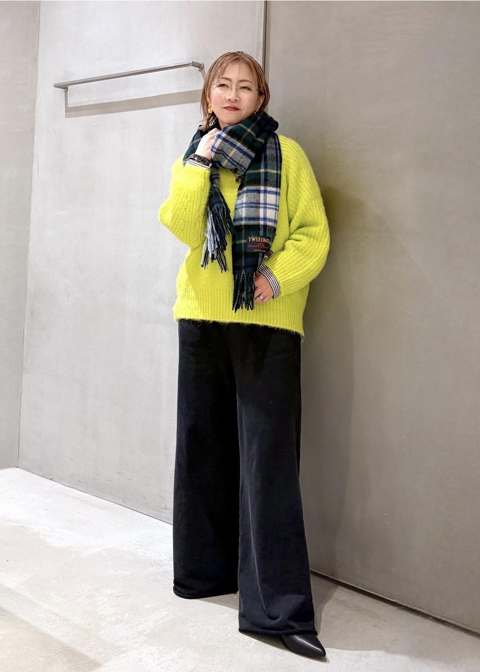 ブラックデニムに新作のシアーカーディガンを合わせて、ワントーンでまとめました。