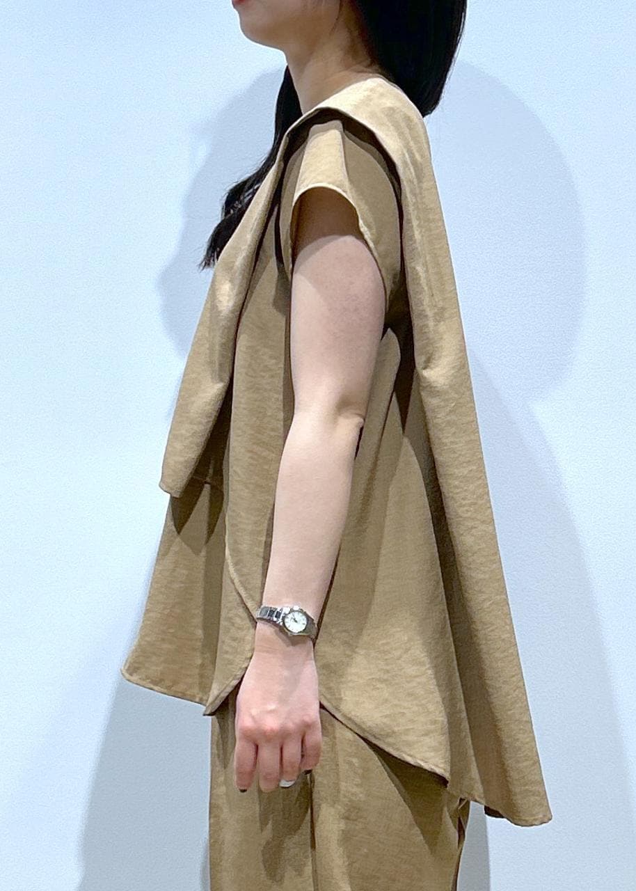 LE CERCLE par ropé【セットアップ対応】タンブラーブッチャー2WAYヘムタックブラウスキャメル / F¥8,690レビューゆったりしたサイズ感で、丈はヒップがすっぽり隠れ、袖は肩が隠れます。