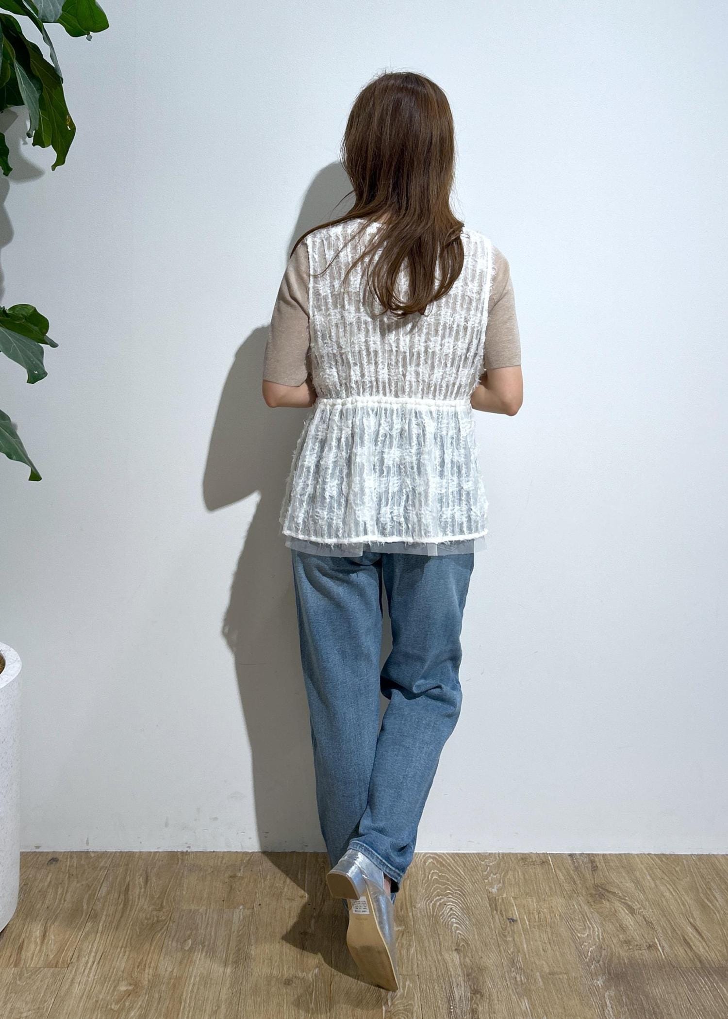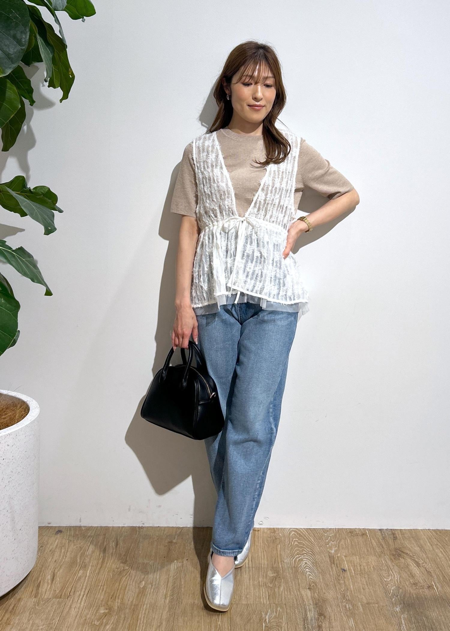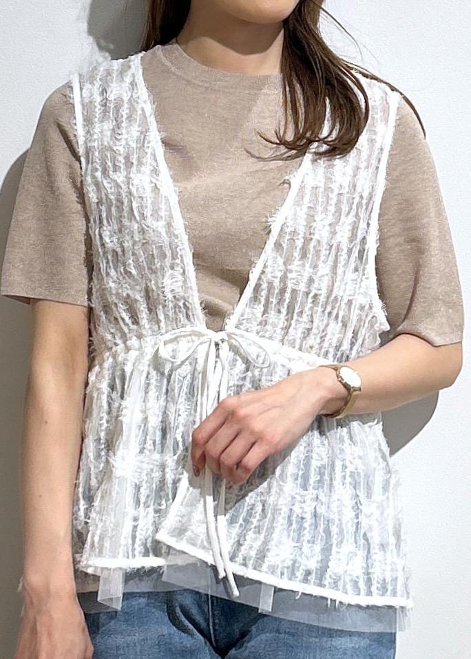 シャツやロンT、Tシャツに重ねるだけでオシャレになるチュールジレ♡