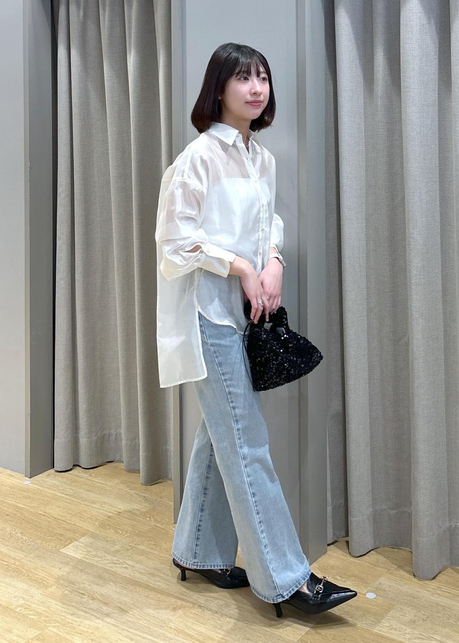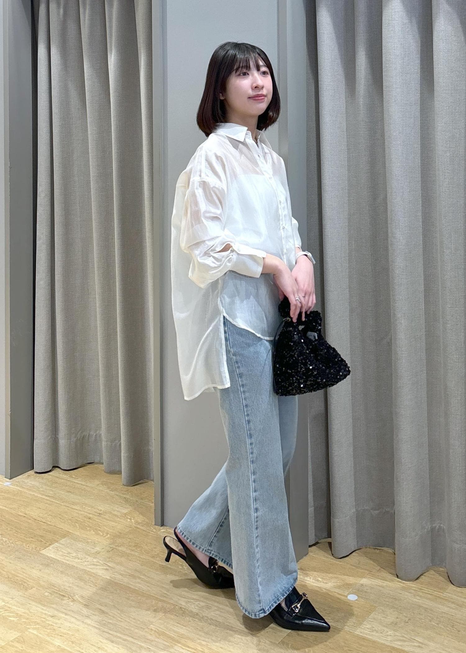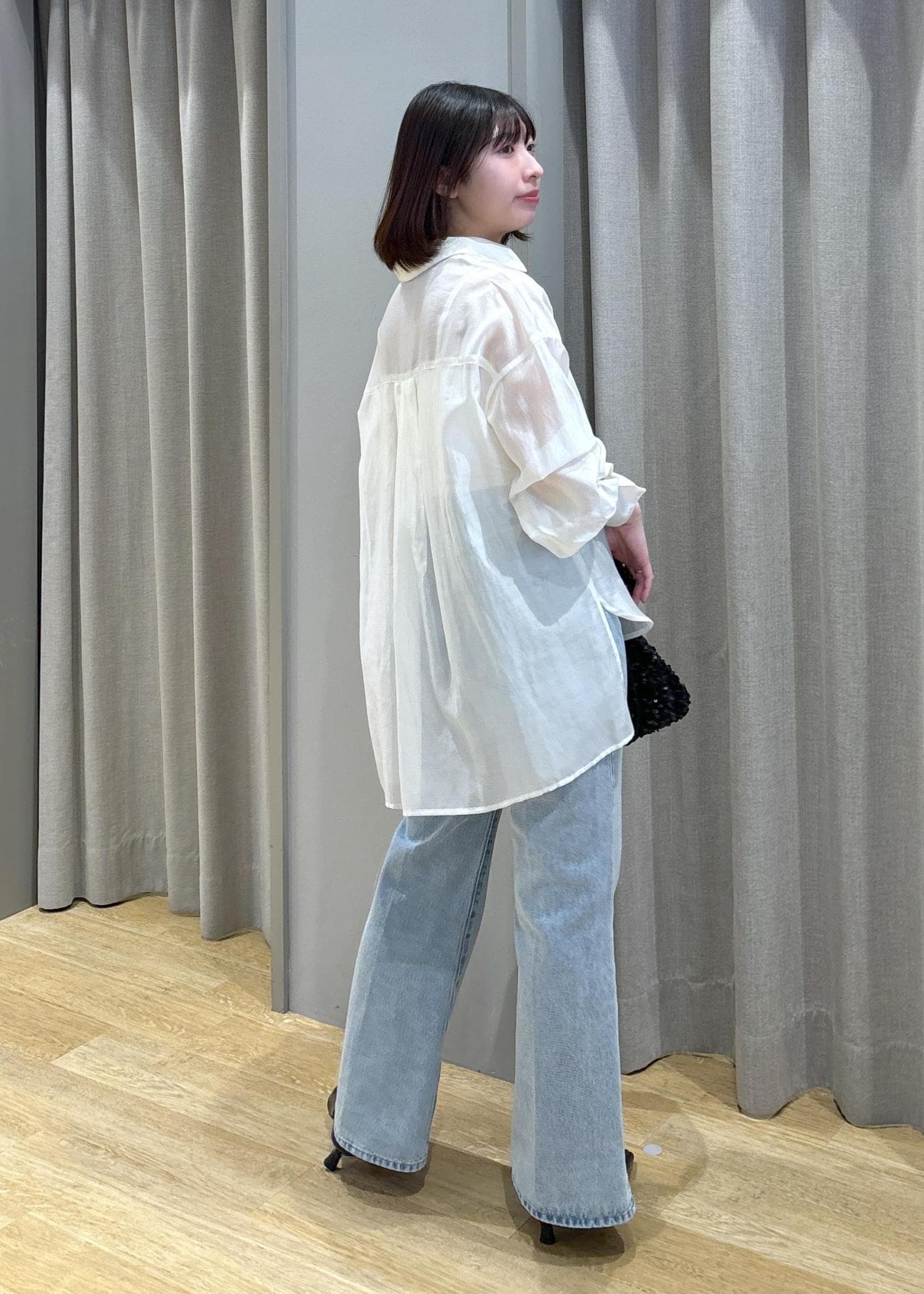 アウトレットVIS【洗える】アソートシアーシャツ(フラワー刺繍&無地)ホワイト / F¥2,745レビュー身長158cm、Fサイズ着用。