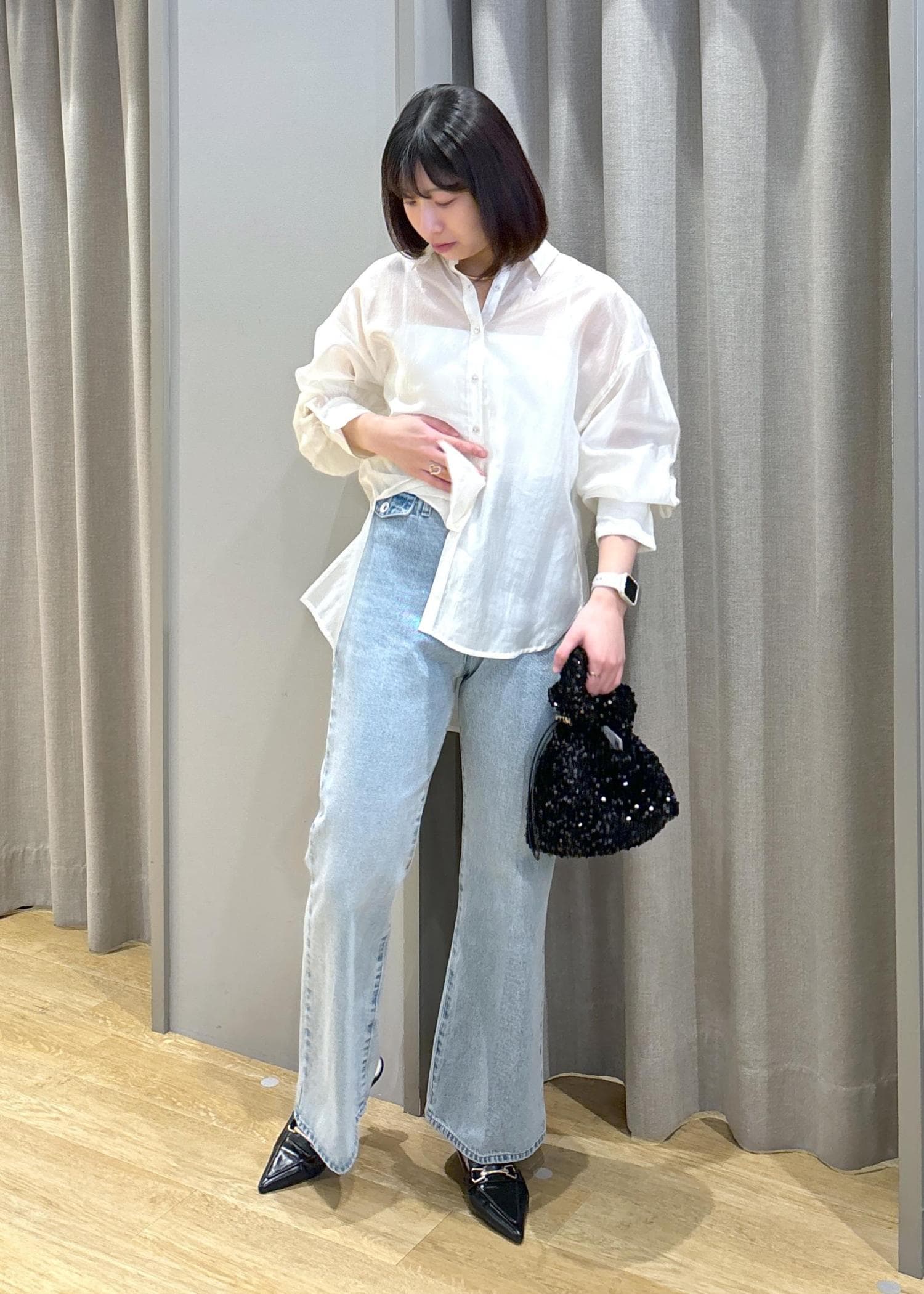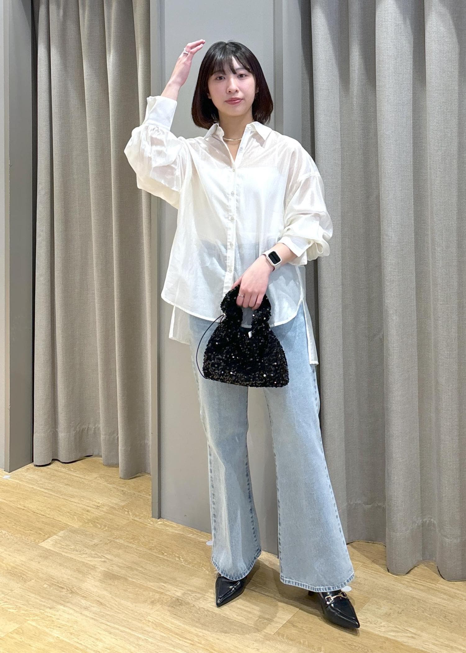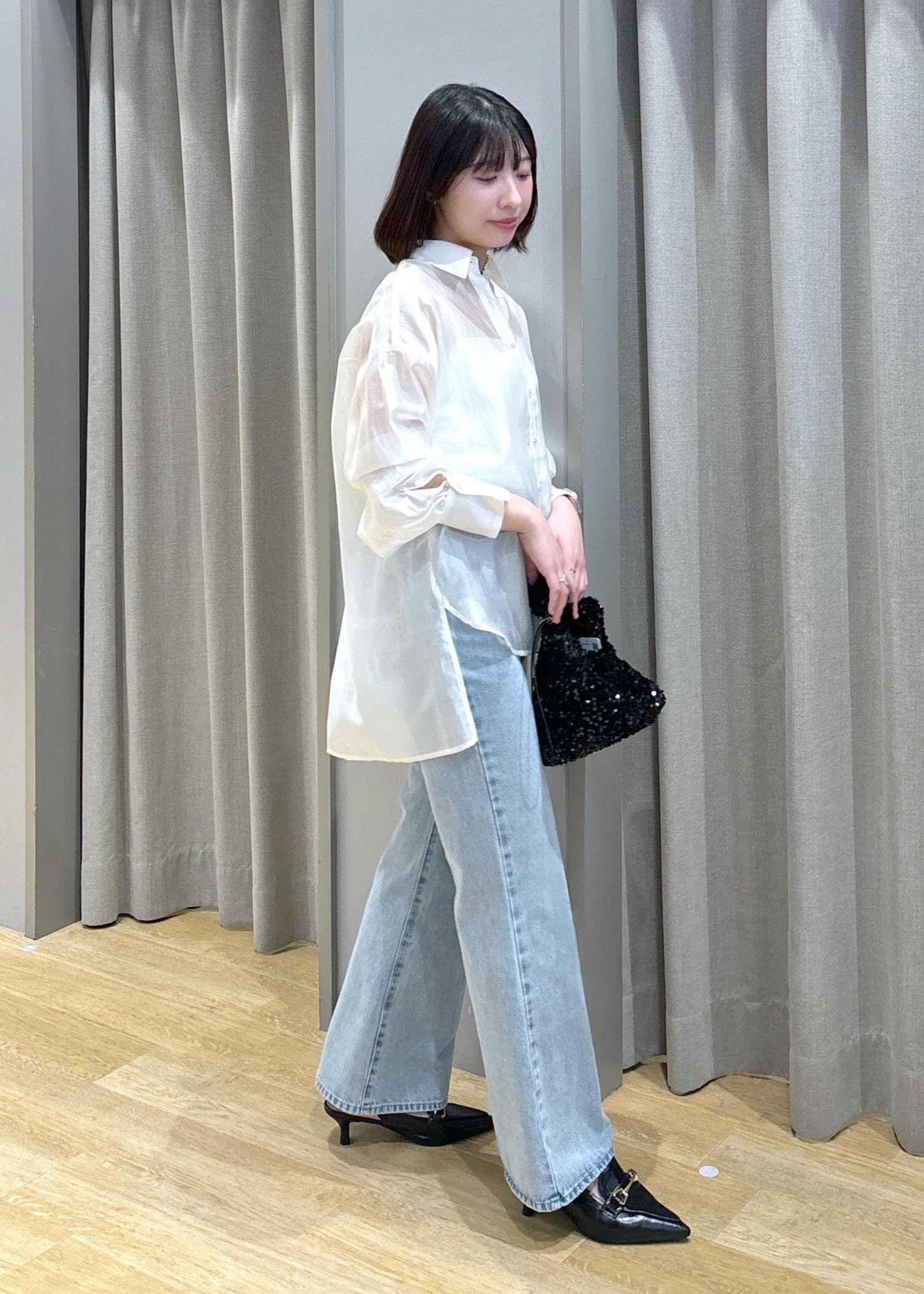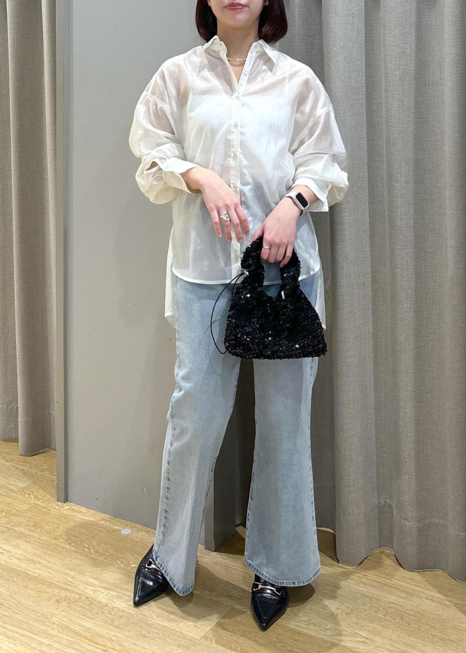 アウトレットVIS【洗える】アソートシアーシャツ(フラワー刺繍&無地)ホワイト / F¥2,745レビュー身長158cm、Fサイズ着用。