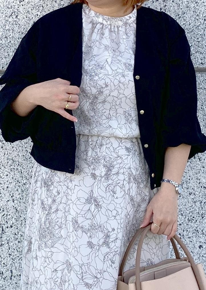 1枚でも様になりますが、羽織り物を着ると長い季節お使いいただけます。
