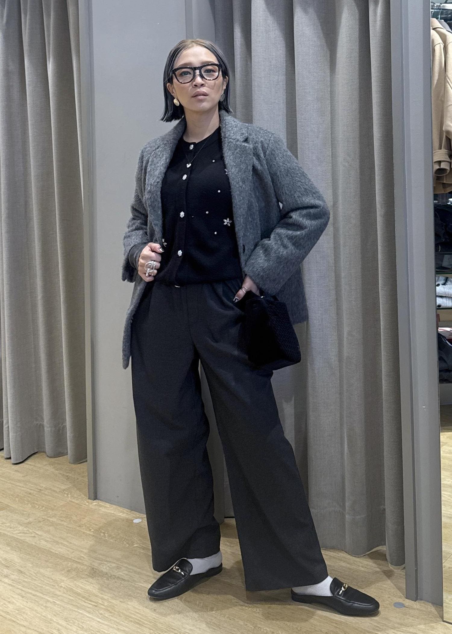 カチッとなり過ぎないように、足元はNIKEのアイラで