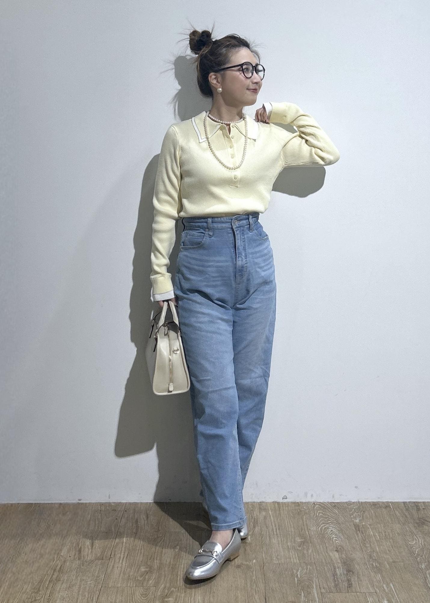 シンプルなアイテムでまとめつつ、色のバランスを合わせたコーデを組んでみました。