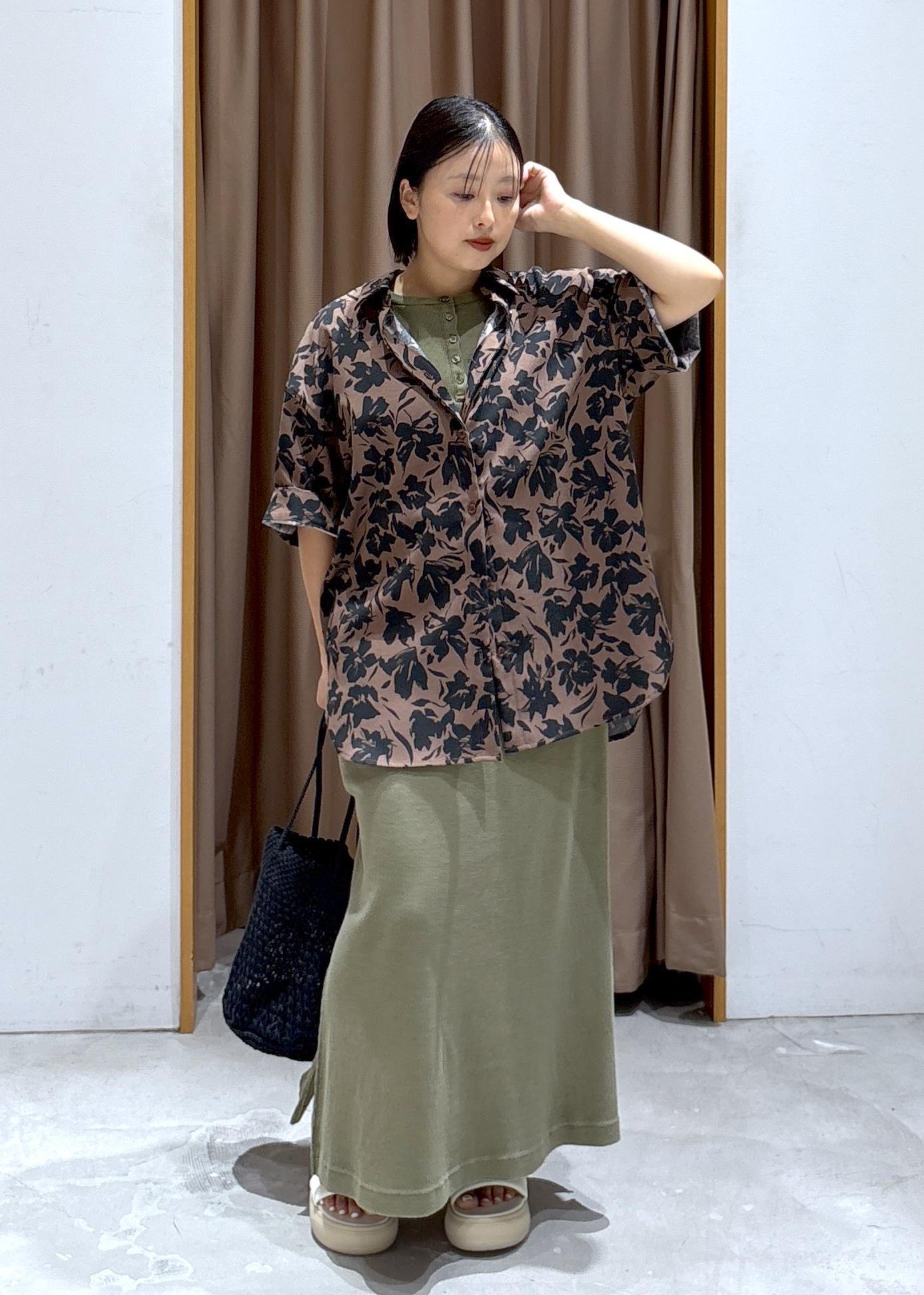 【セットアップ対応】リネンライクフラワープリント衿付きシャツ