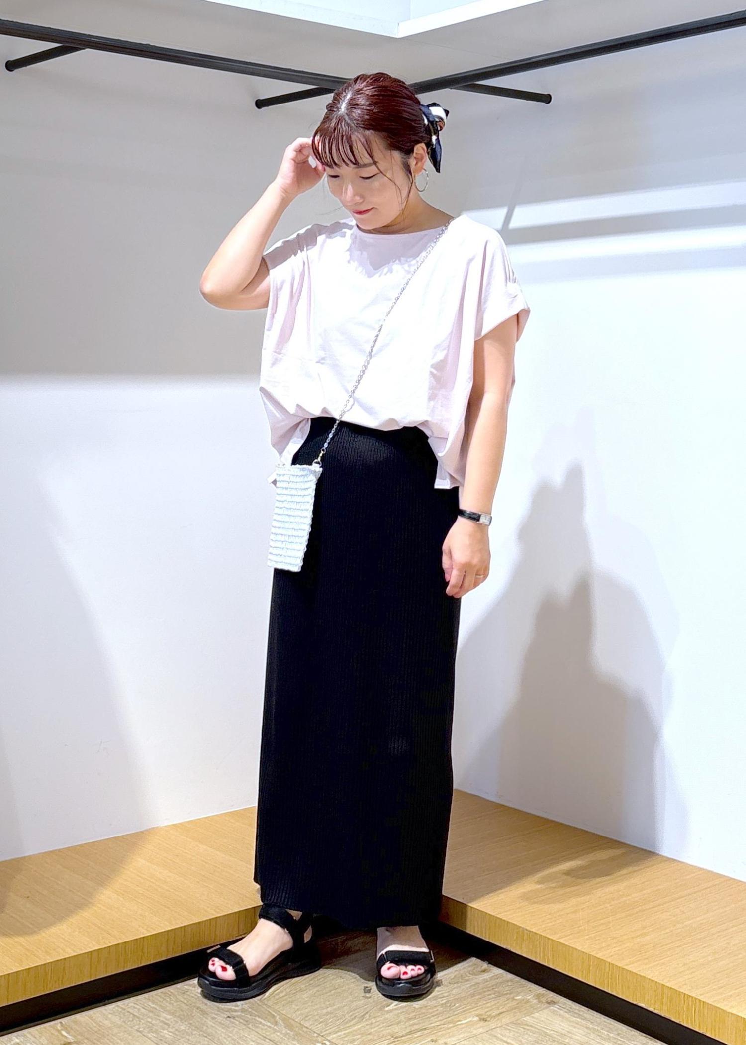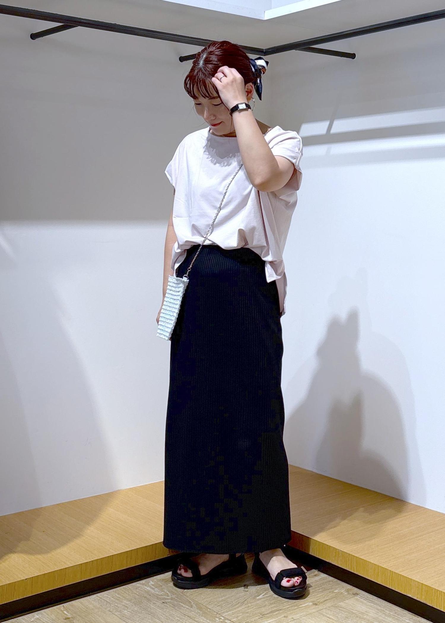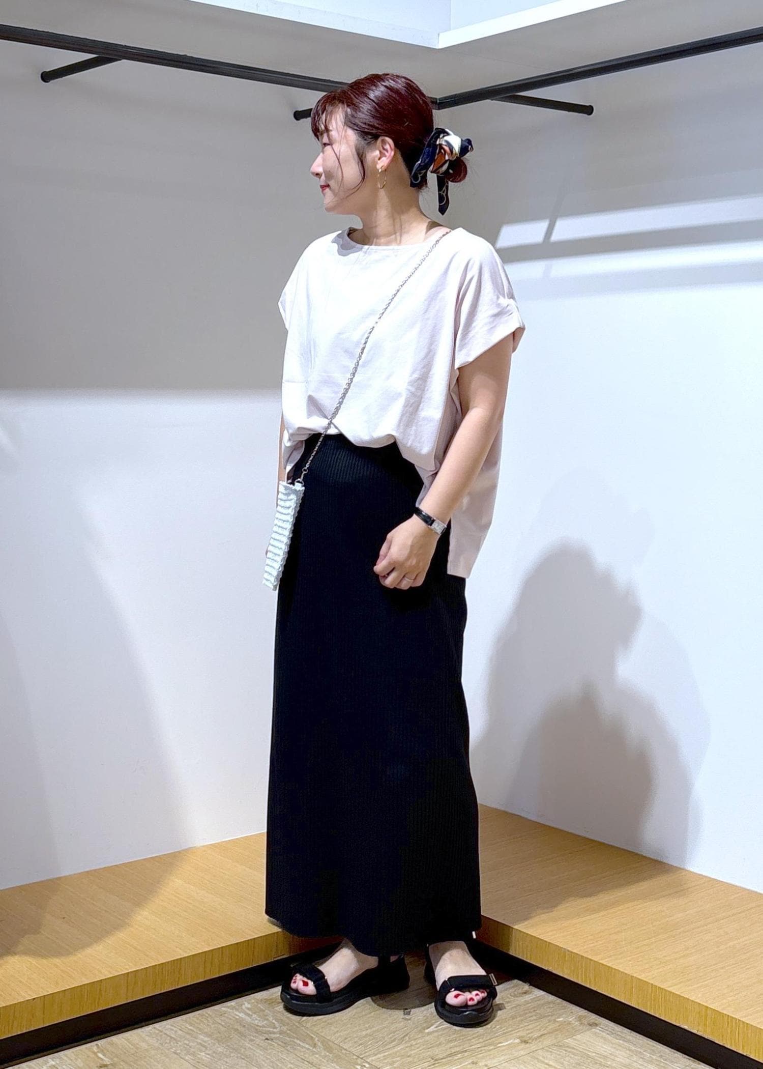 トップスは少しだけふわっとしているのでボトムスはタイトスカートですっきりシンプルにコーデしました。