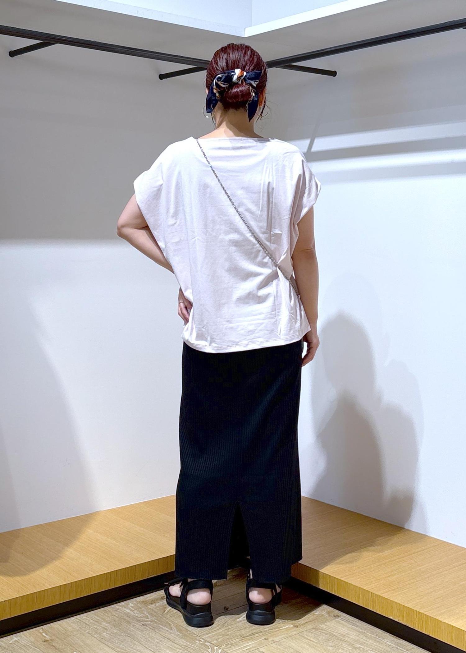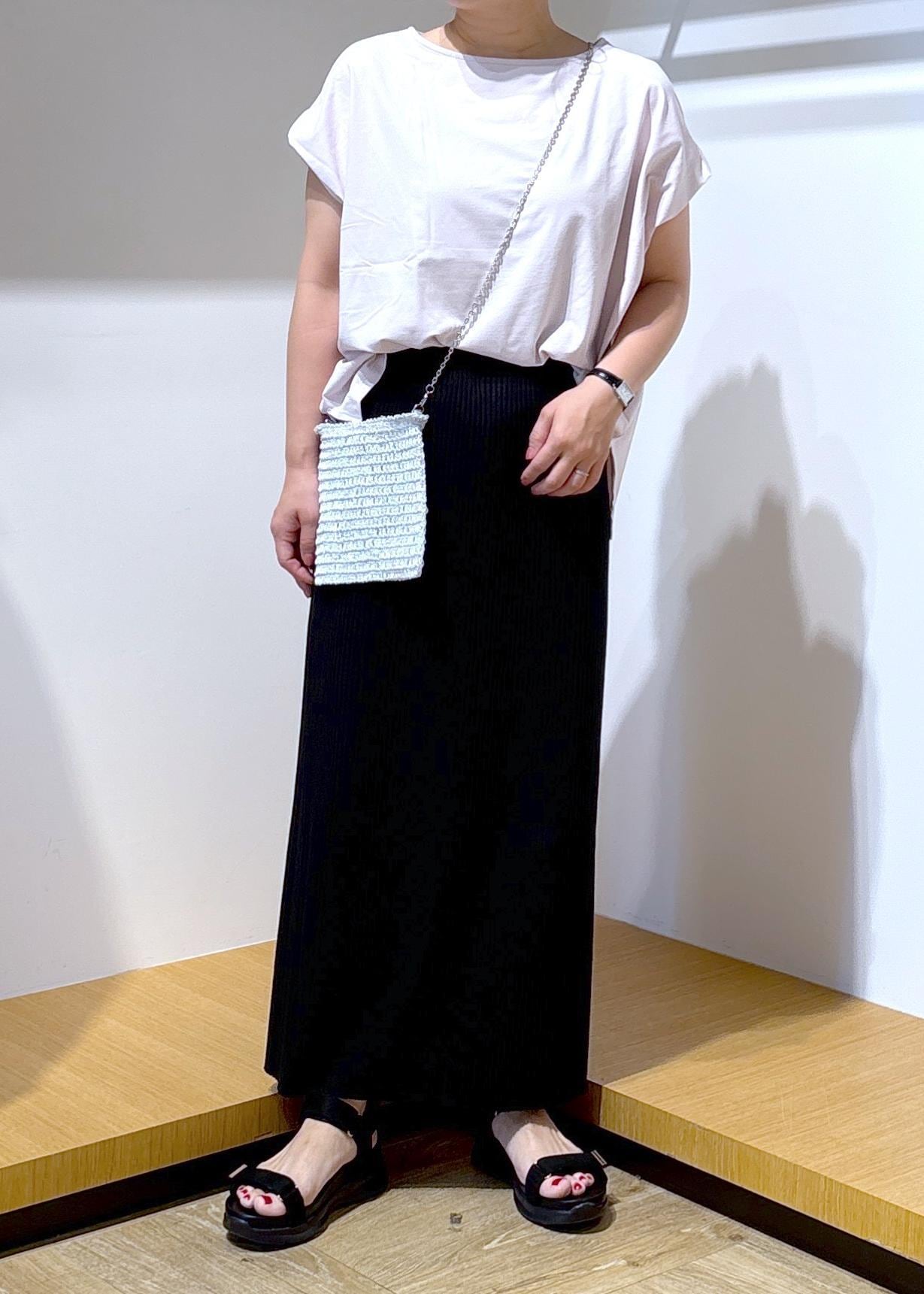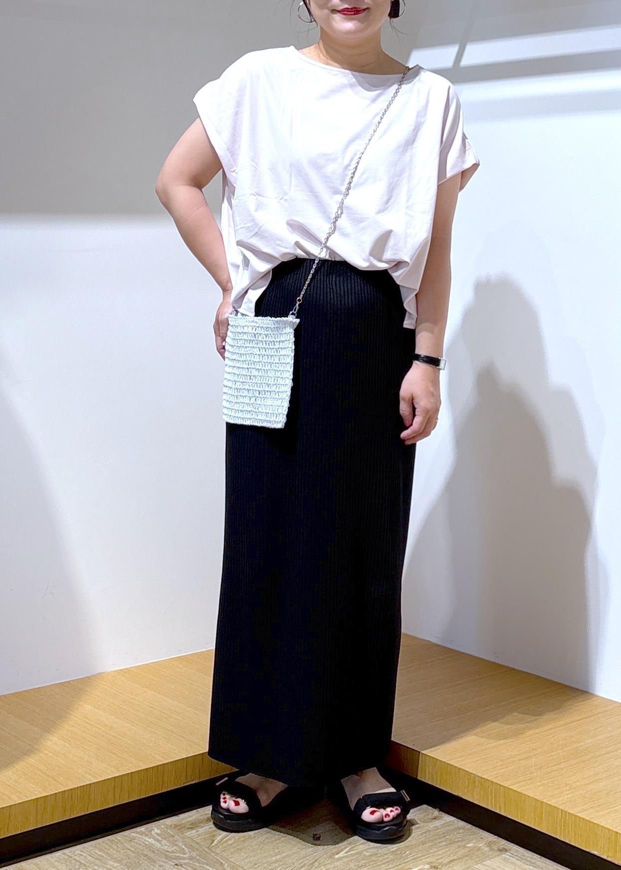 トップスは少しだけふわっとしているのでボトムスはタイトスカートですっきりシンプルにコーデしました。