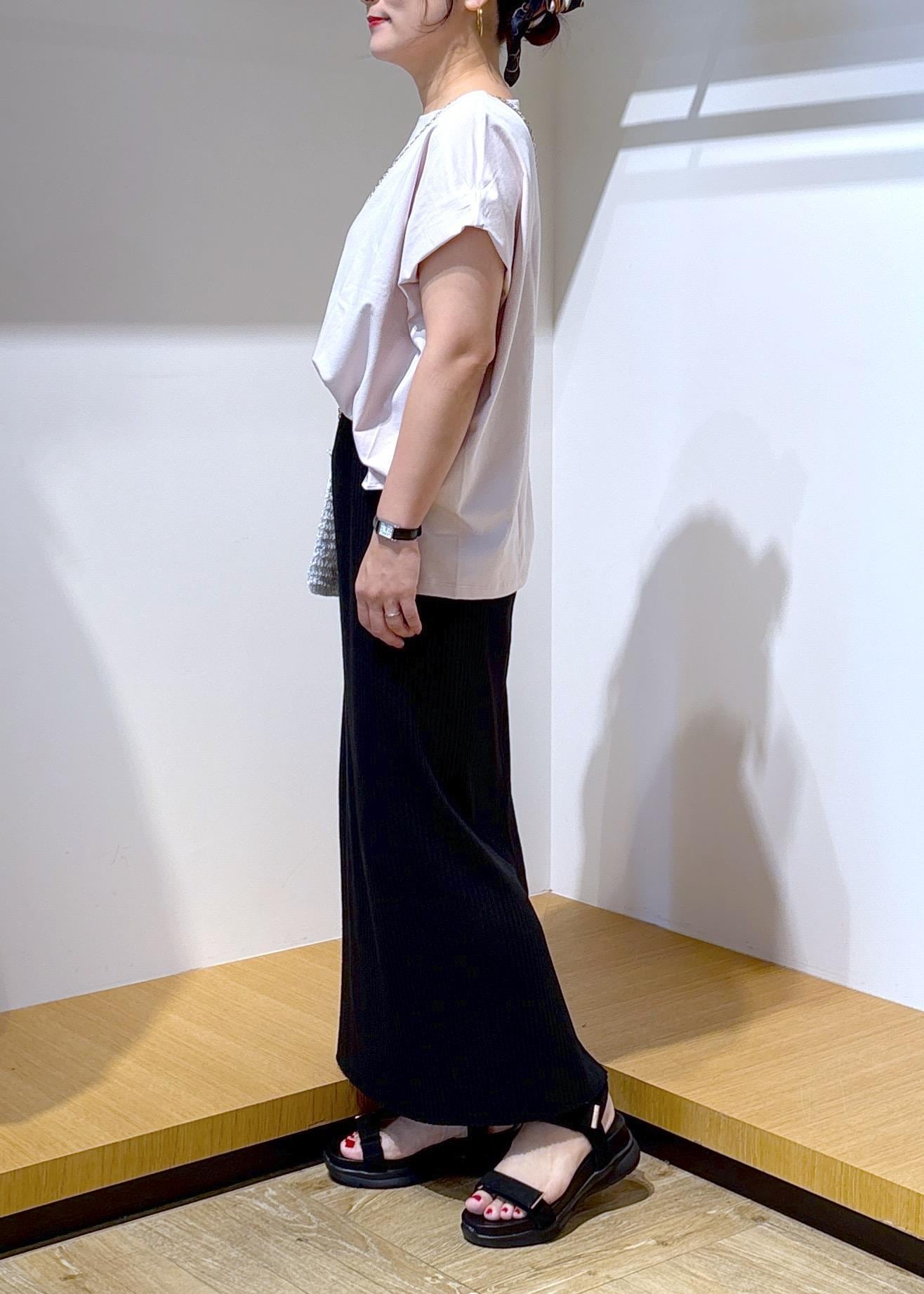 スリットを後ろで着用していますが、横にずらして履いていただくことも可能です!