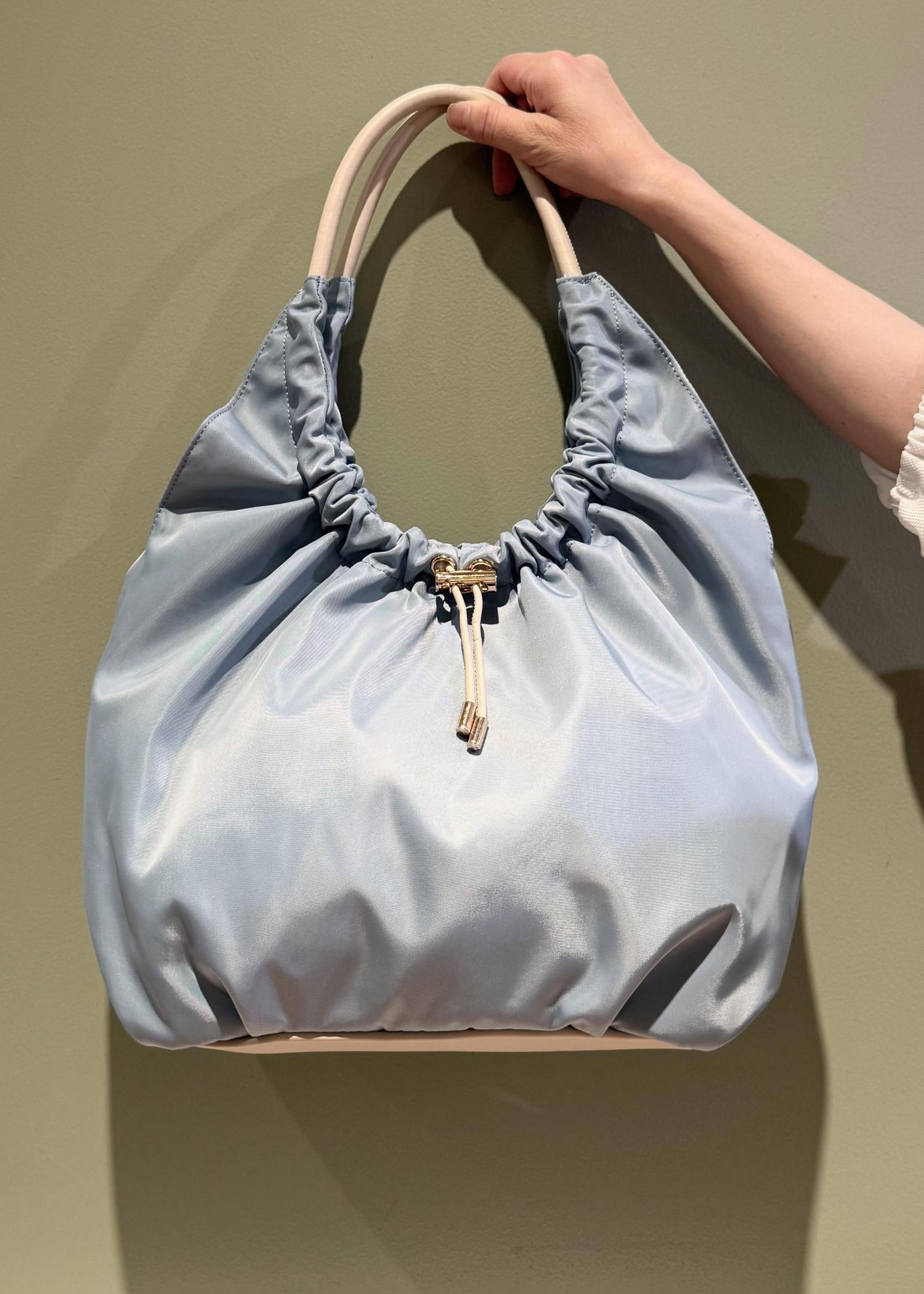 アウトレットROPÉ PICNIC PASSAGE【撥水加工】ドロストリングギャザートートバッグブルー / F¥3,995レビュー大きめサテン生地のトートバッグです。