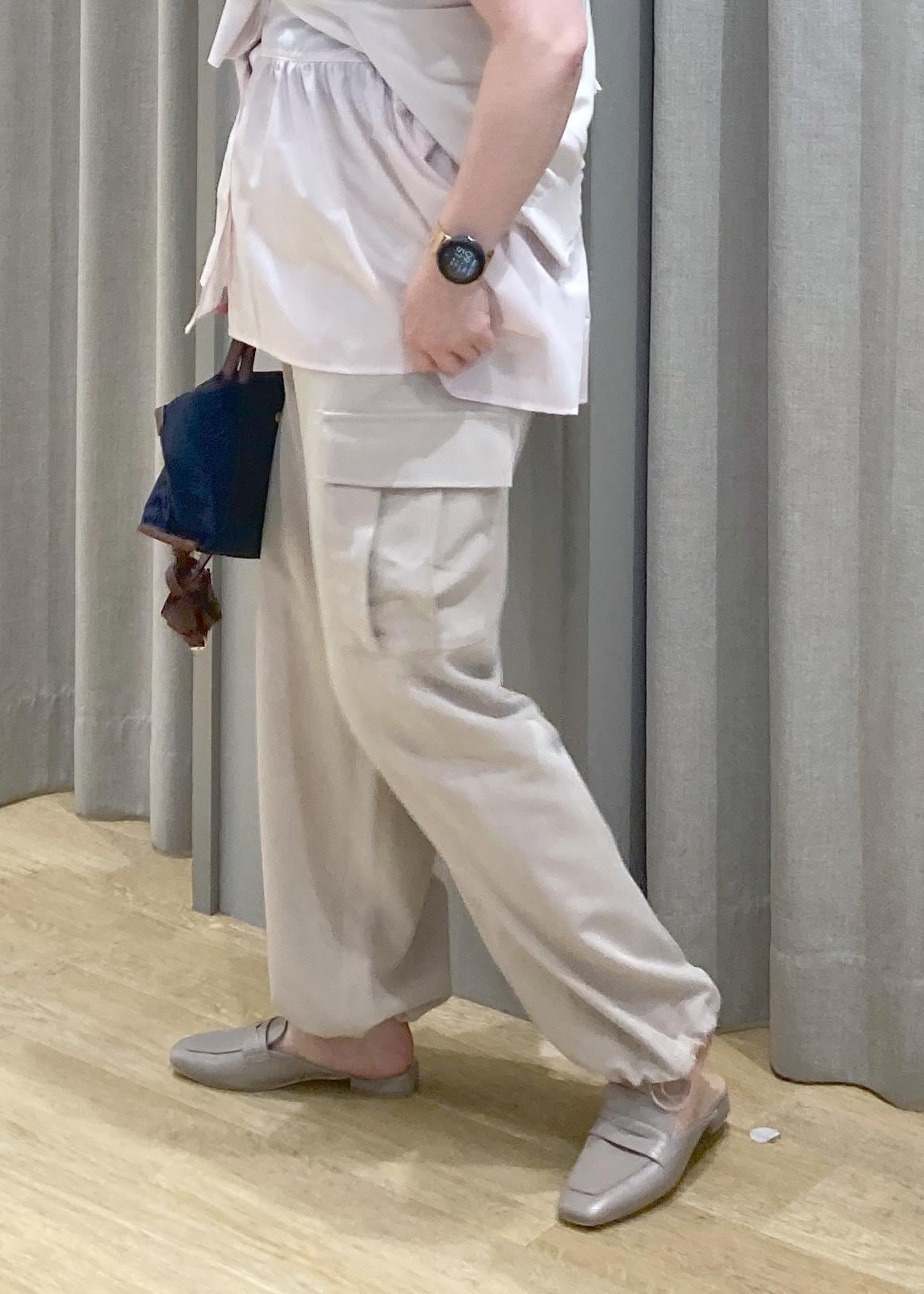 裾ドロストで、デザインを変えて着れるのでカーゴパンツとしても、ストレートにしてオフィスカジュアルとしても使えます。 -